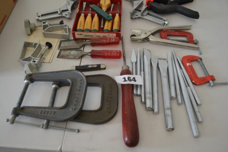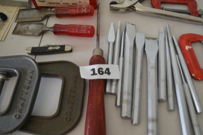 LOT 164. CHISEL SET, VINTAGE POCKET KNIFE, C CLAMPS AND EXACTO SET