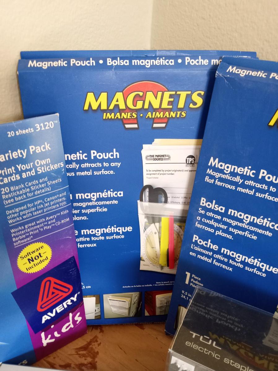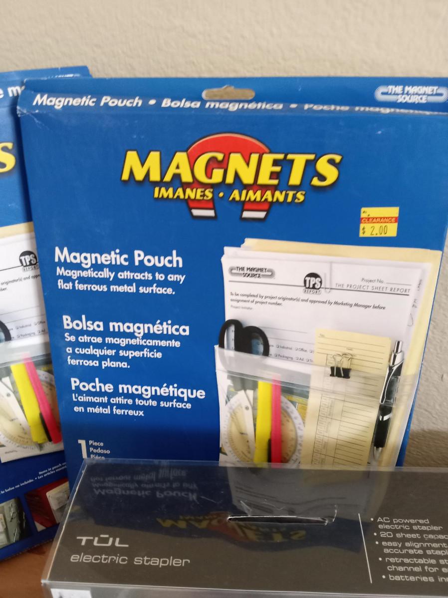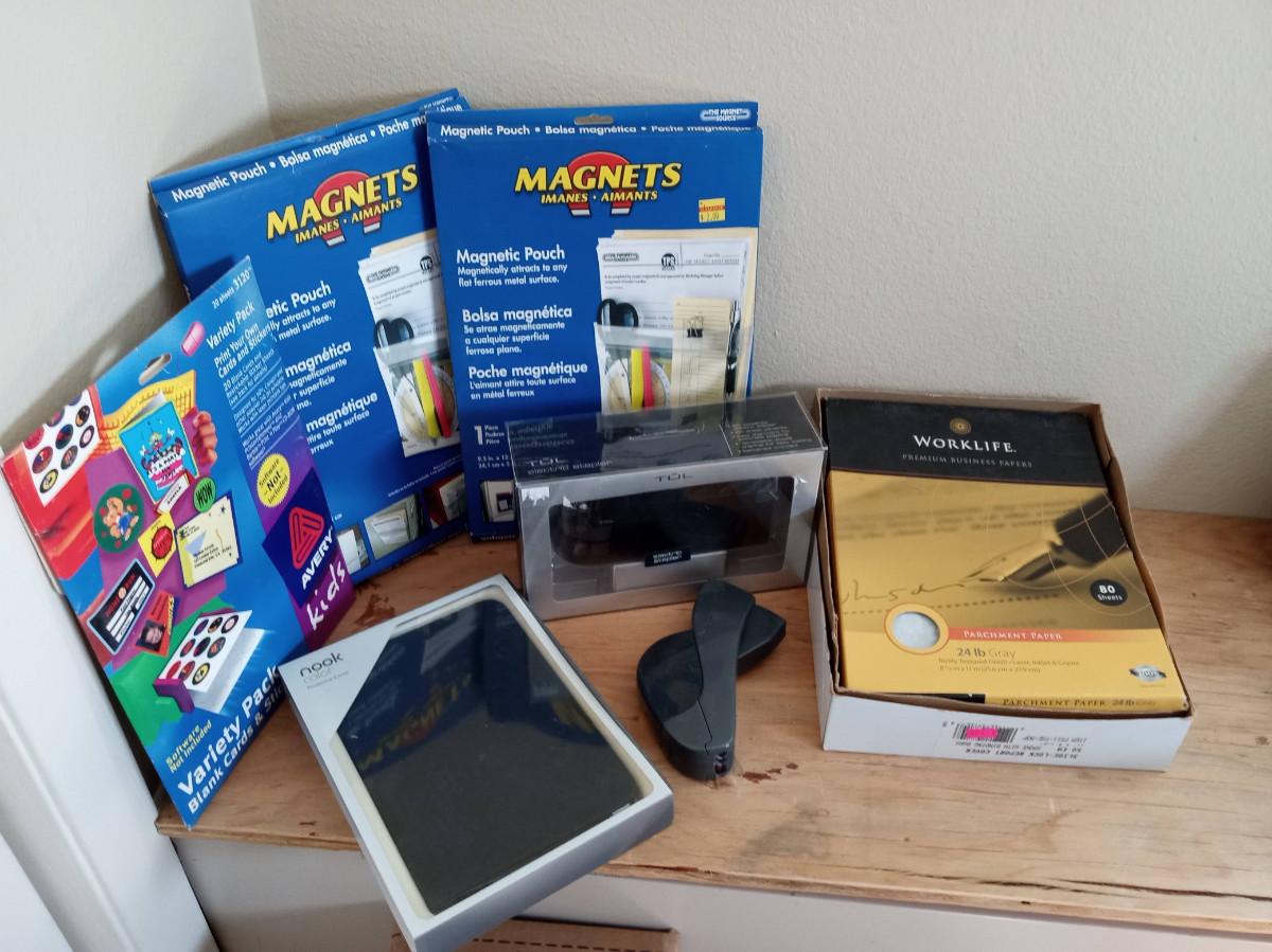 LOT 164 ELECTRIC STAPLER, MAGNETIC POUCHES, NOOK CASE AND MORE