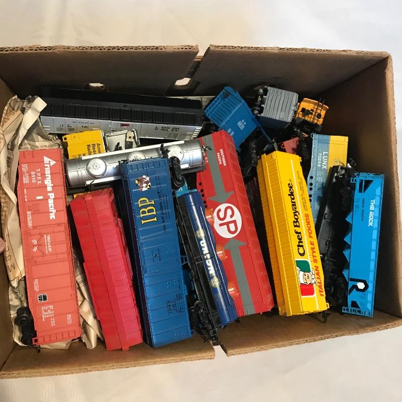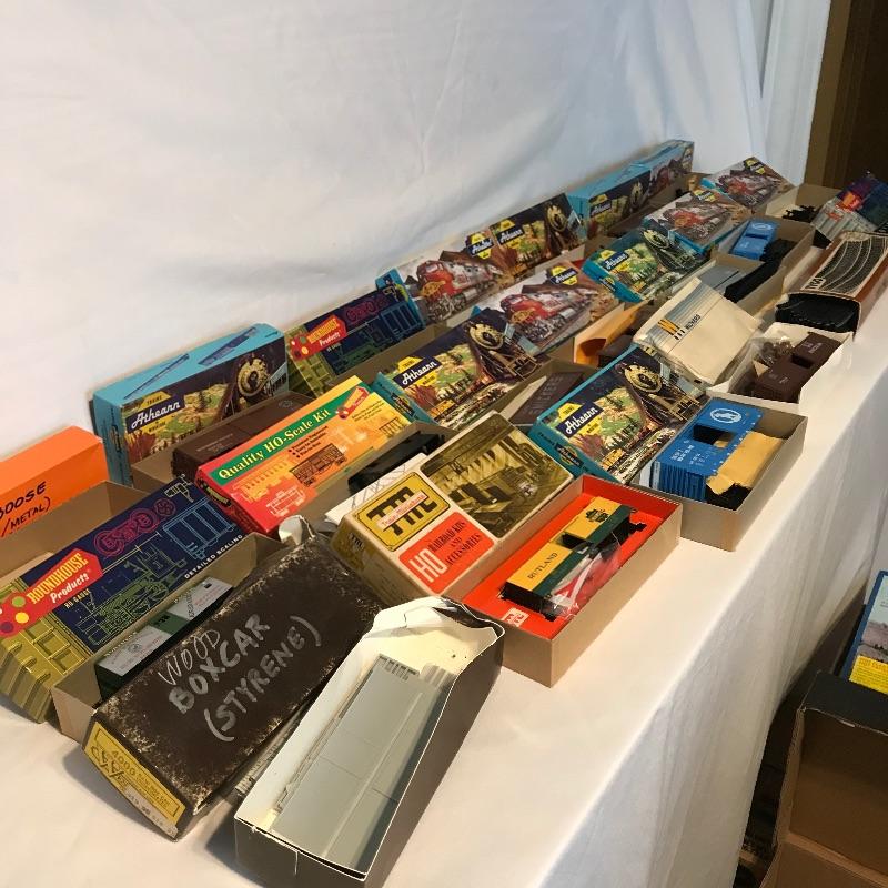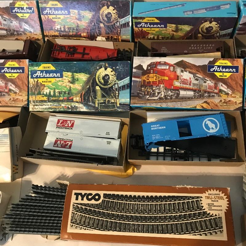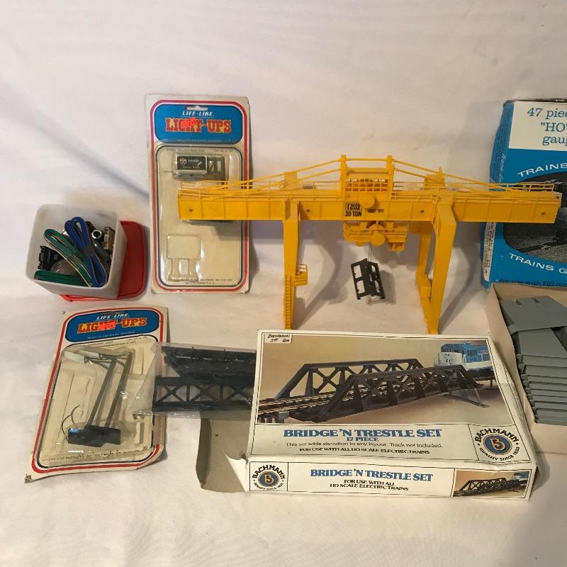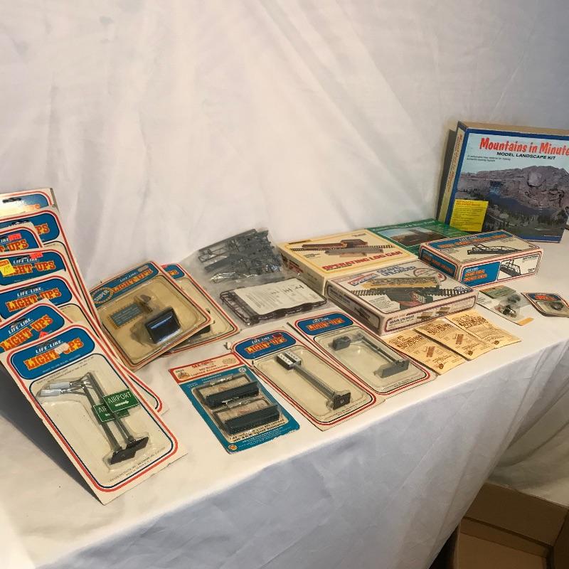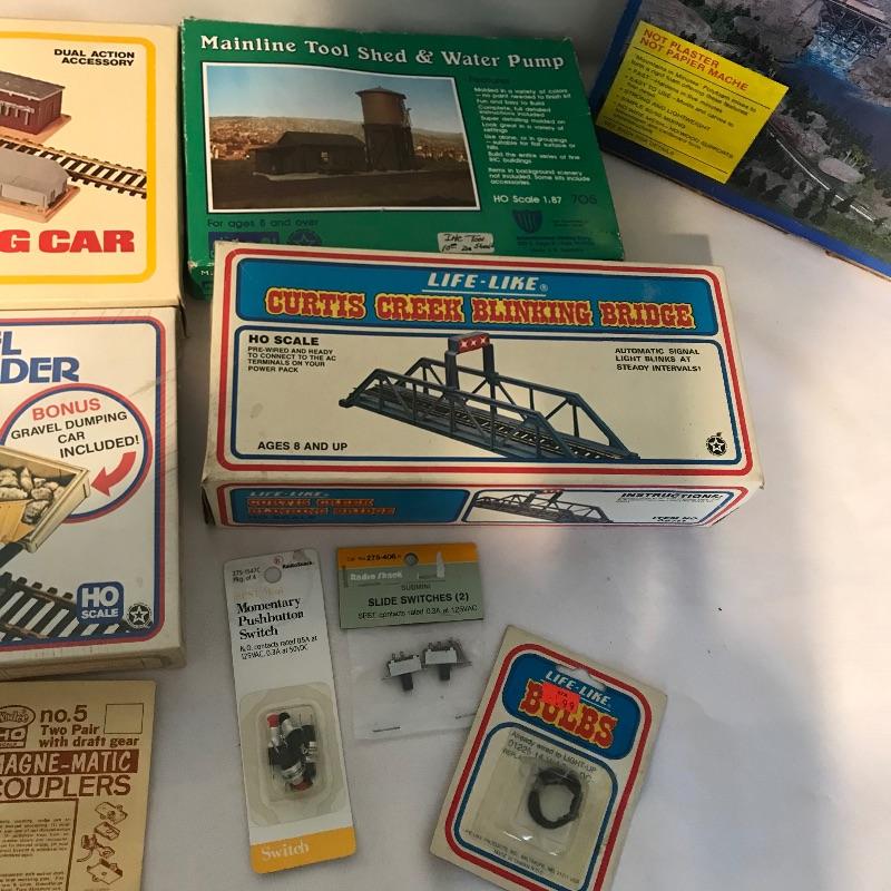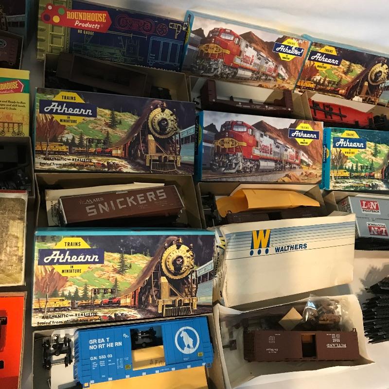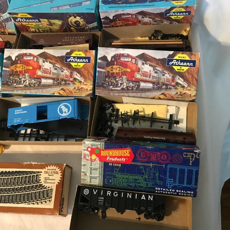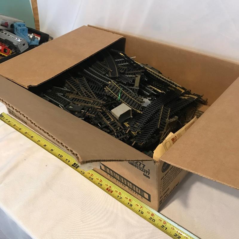 This is an amazing lot to begin your train career! It’s got it all! Over 130 HO trains, tons of track, buildings, a station measuring roughly 30” x 15”. Lots of items still in packing, some have been opened and inventory is unconfirmed. Eight cab controls with model numbers shown in images and tons of accessories and small parts to fix the broken pieces. Most of the 130+ trains rolled well, we did not test cab controls. Lot also features a lot of models to build yourself and keep you busy for a long time. This lot is roughly 11 boxes, keep space in your vehicle in mind when picking up. Lot features various brands including Tyco, Bachmann, Life Line, Cox and more. Some trains only have place of origin and no brand name is known. Local pick up only.