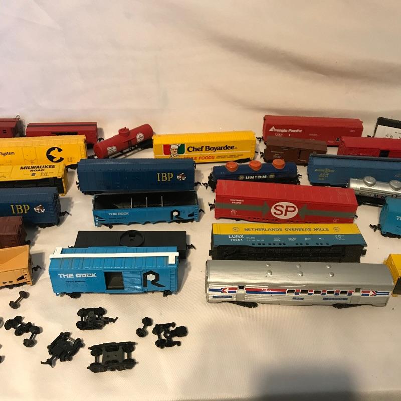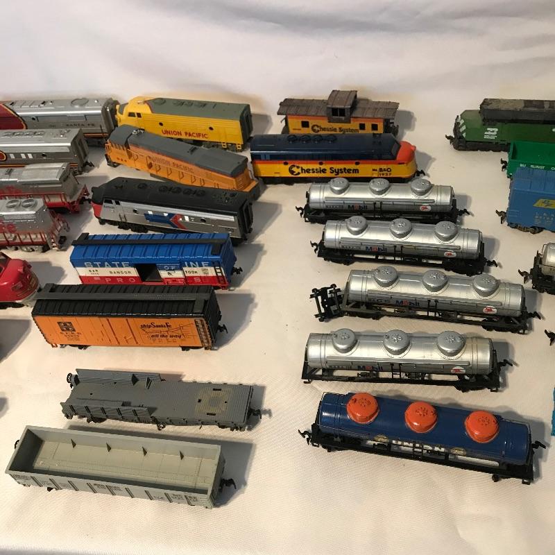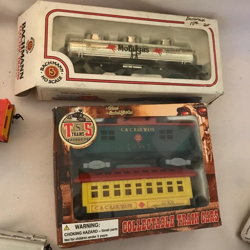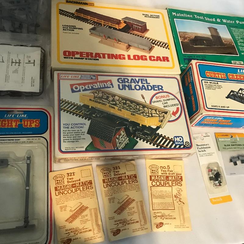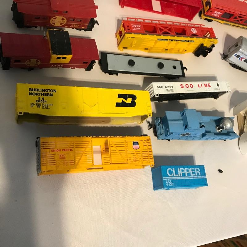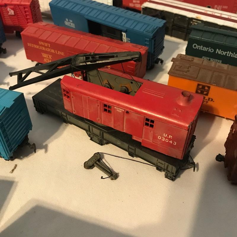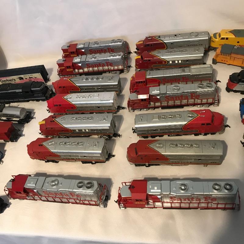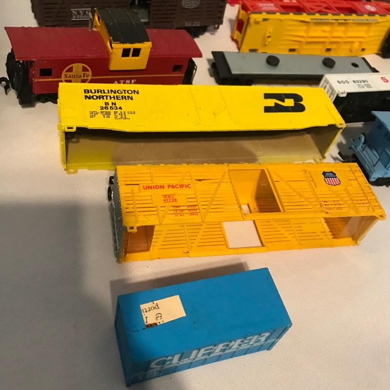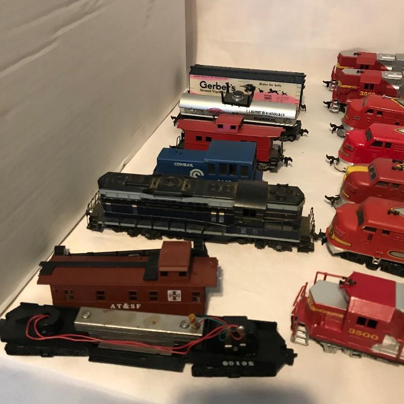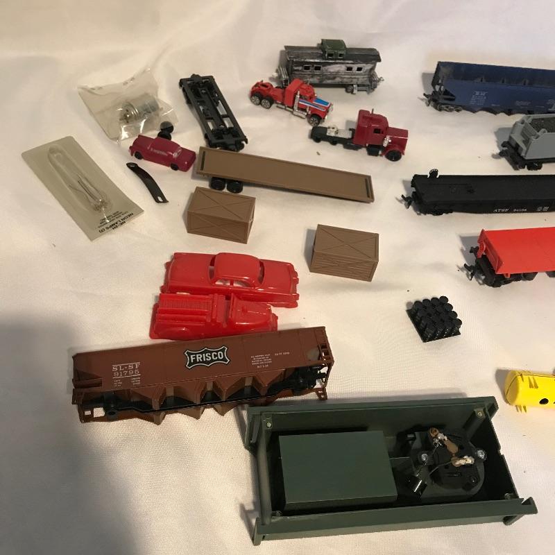 This is an amazing lot to begin your train career! It’s got it all! Over 130 HO trains, tons of track, buildings, a station measuring roughly 30” x 15”. Lots of items still in packing, some have been opened and inventory is unconfirmed. Eight cab controls with model numbers shown in images and tons of accessories and small parts to fix the broken pieces. Most of the 130+ trains rolled well, we did not test cab controls. Lot also features a lot of models to build yourself and keep you busy for a long time. This lot is roughly 11 boxes, keep space in your vehicle in mind when picking up. Lot features various brands including Tyco, Bachmann, Life Line, Cox and more. Some trains only have place of origin and no brand name is known. Local pick up only.