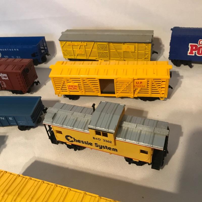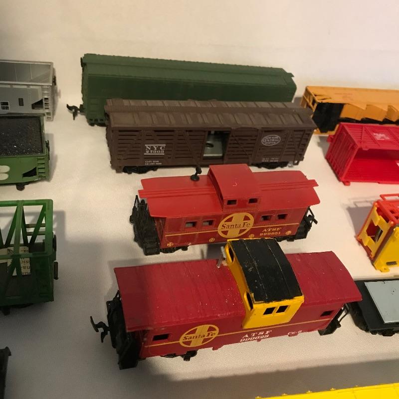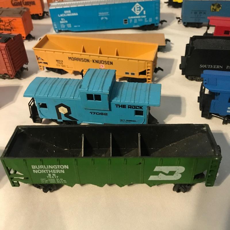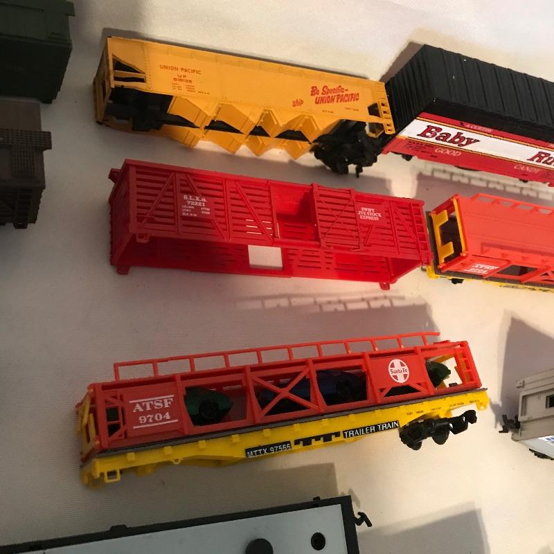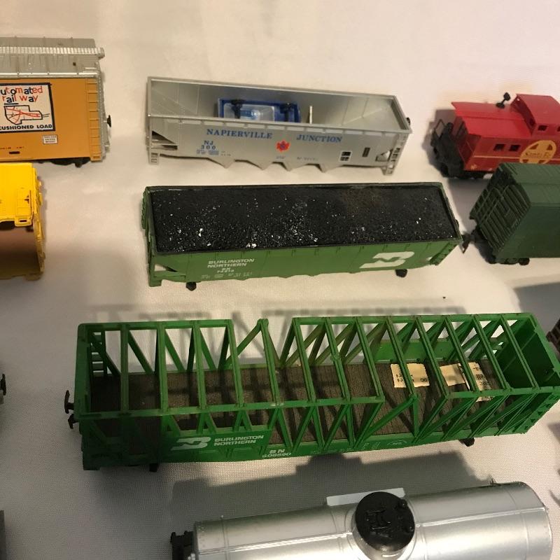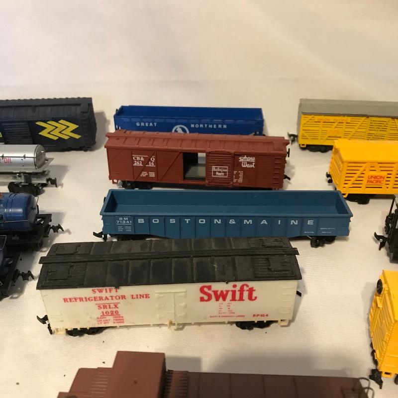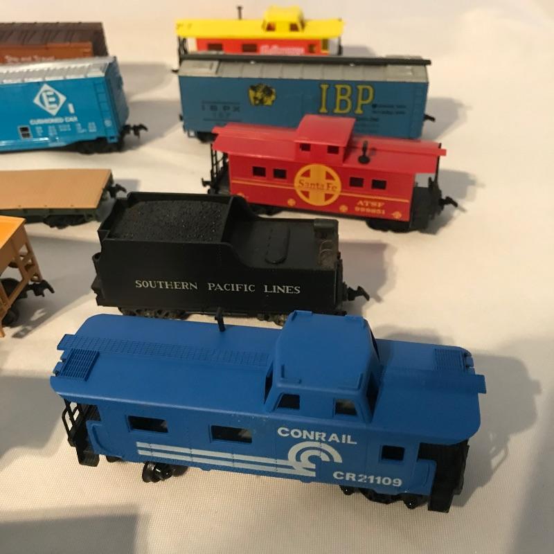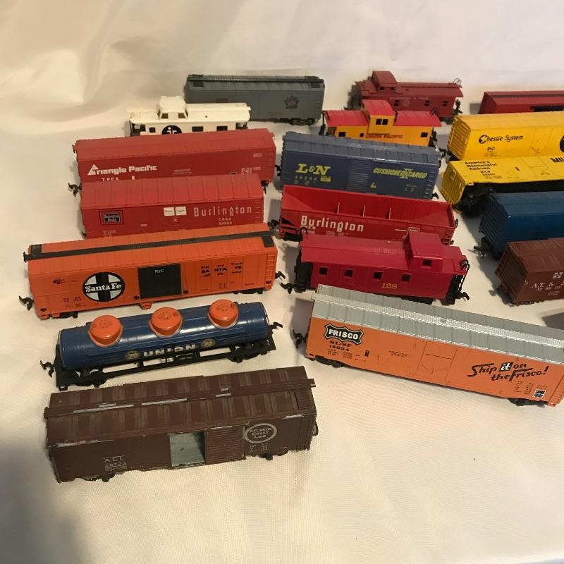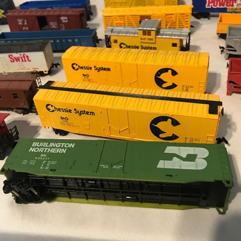 This is an amazing lot to begin your train career! It’s got it all! Over 130 HO trains, tons of track, buildings, a station measuring roughly 30” x 15”. Lots of items still in packing, some have been opened and inventory is unconfirmed. Eight cab controls with model numbers shown in images and tons of accessories and small parts to fix the broken pieces. Most of the 130+ trains rolled well, we did not test cab controls. Lot also features a lot of models to build yourself and keep you busy for a long time. This lot is roughly 11 boxes, keep space in your vehicle in mind when picking up. Lot features various brands including Tyco, Bachmann, Life Line, Cox and more. Some trains only have place of origin and no brand name is known. Local pick up only.
