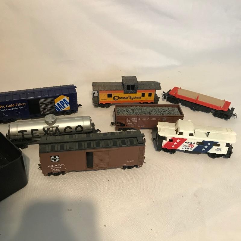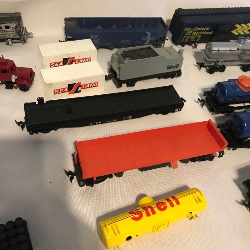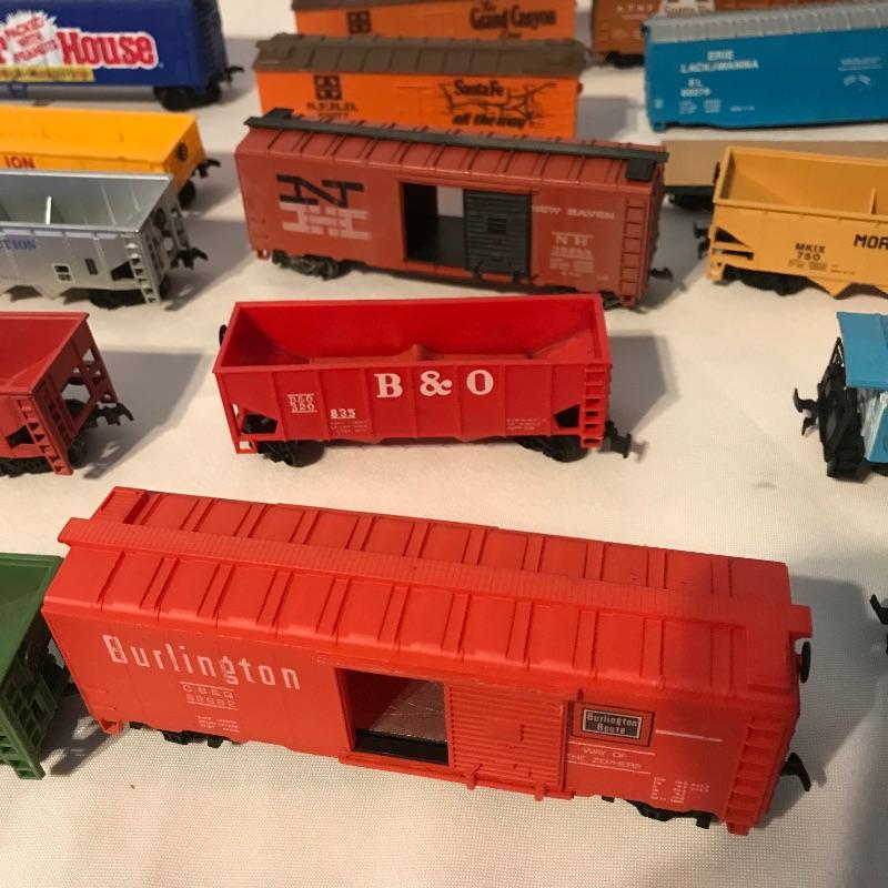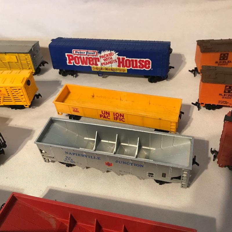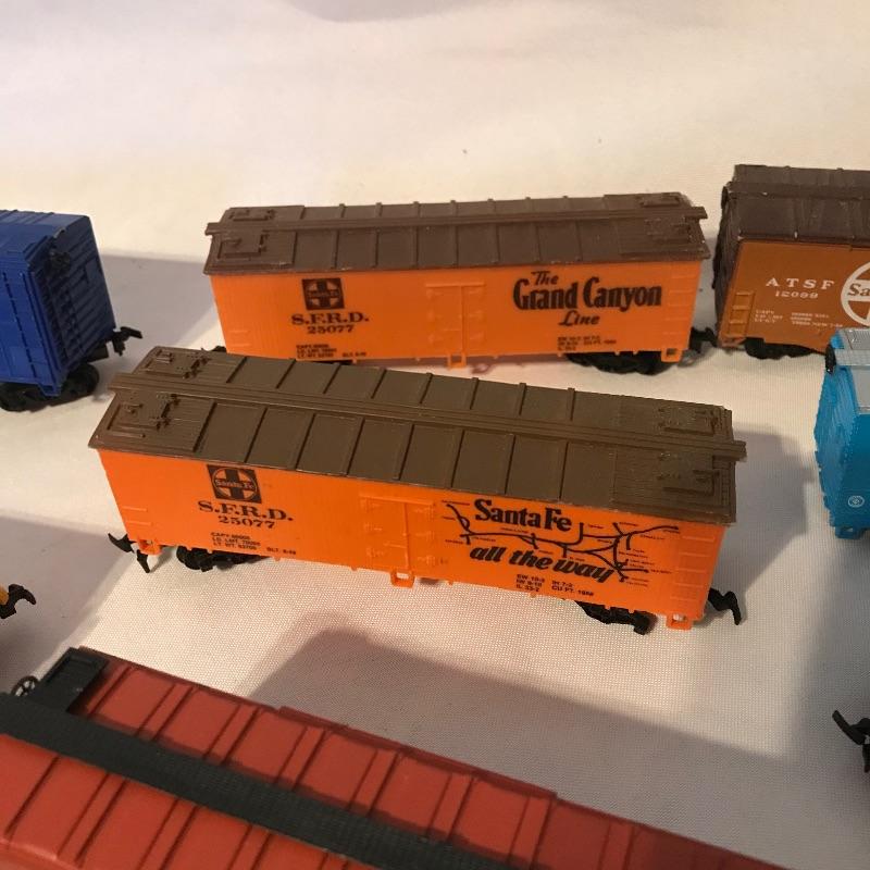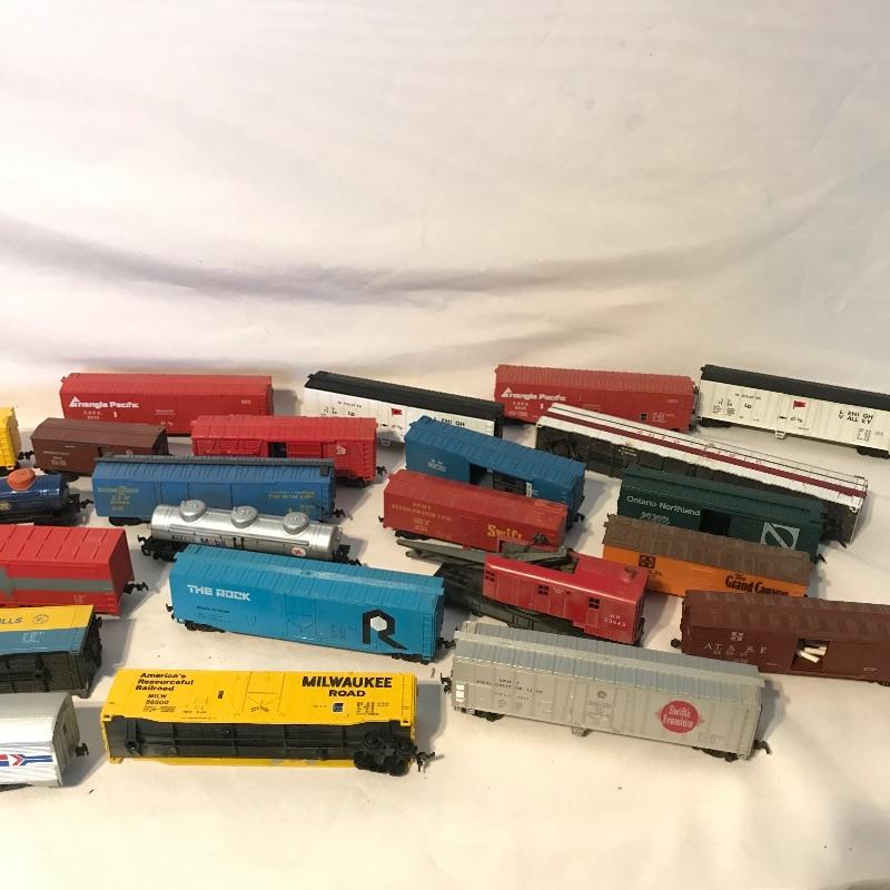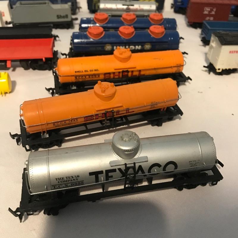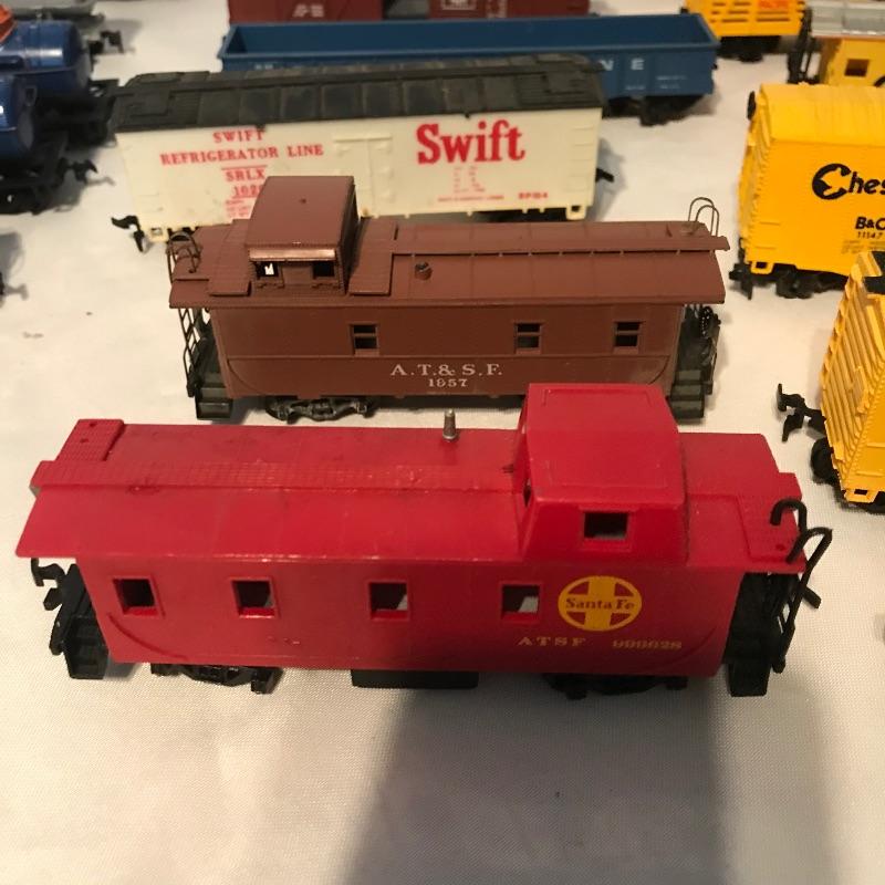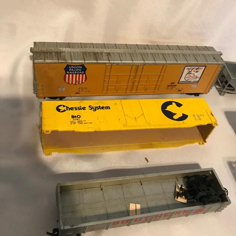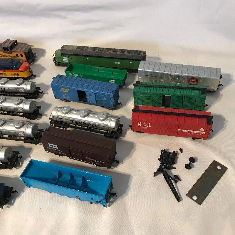 This is an amazing lot to begin your train career! It’s got it all! Over 130 HO trains, tons of track, buildings, a station measuring roughly 30” x 15”. Lots of items still in packing, some have been opened and inventory is unconfirmed. Eight cab controls with model numbers shown in images and tons of accessories and small parts to fix the broken pieces. Most of the 130+ trains rolled well, we did not test cab controls. Lot also features a lot of models to build yourself and keep you busy for a long time. This lot is roughly 11 boxes, keep space in your vehicle in mind when picking up. Lot features various brands including Tyco, Bachmann, Life Line, Cox and more. Some trains only have place of origin and no brand name is known. Local pick up only.