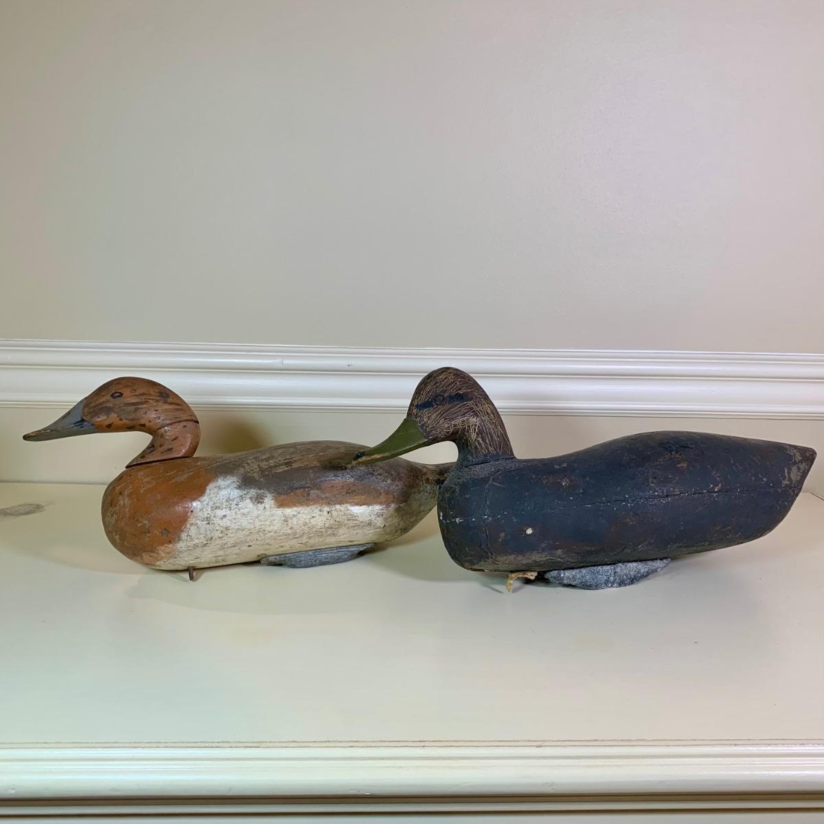LOT 164 L: Vintage Wooden Canvasback & Black Decoy Ducks
