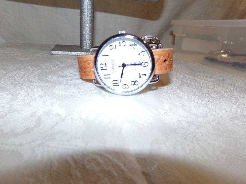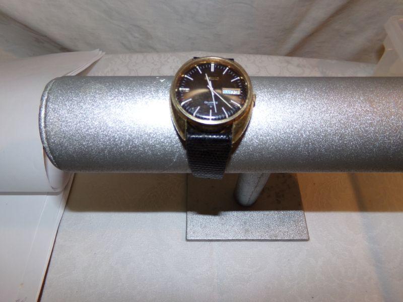 SEIKO W/CALENDAR AND EXPRESS W/TOOLED LEATHER BAND