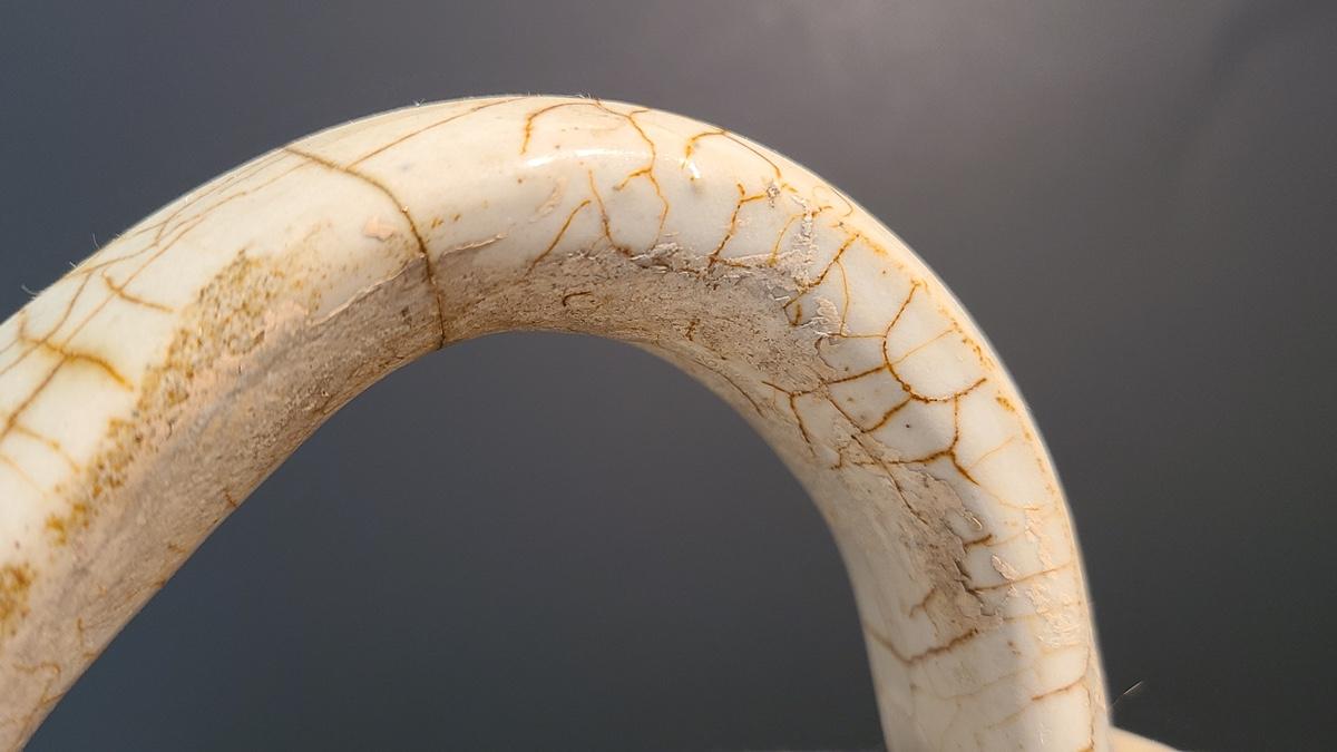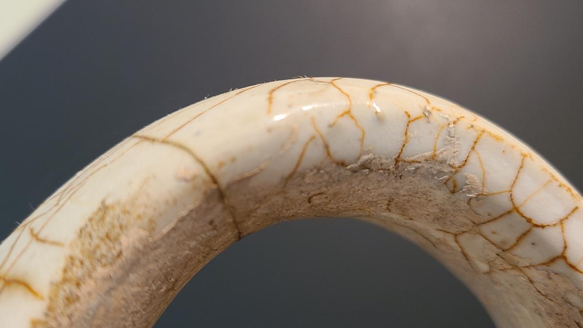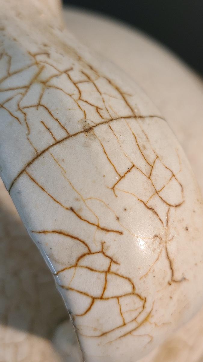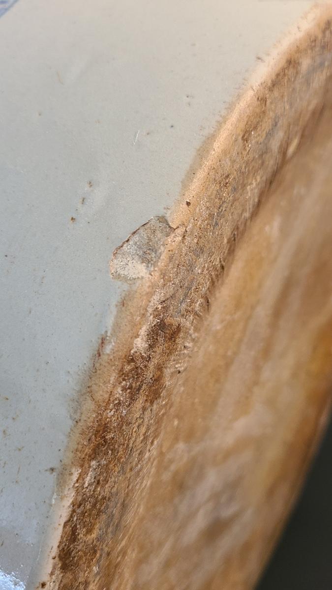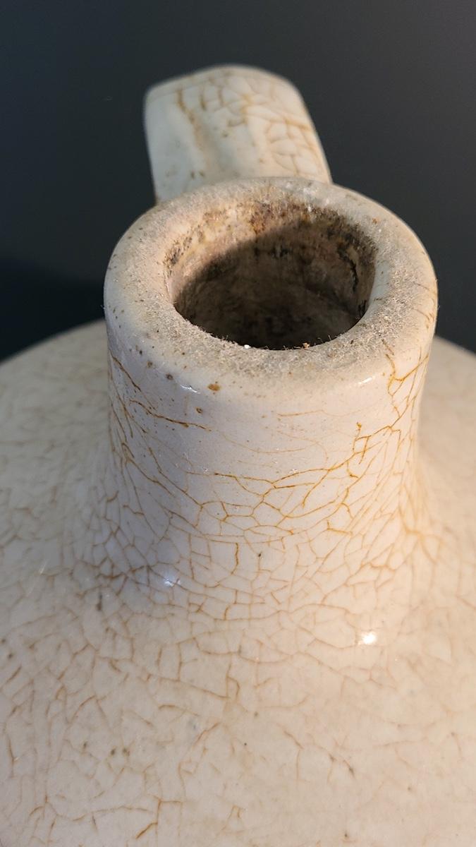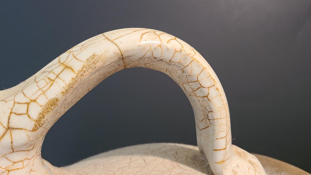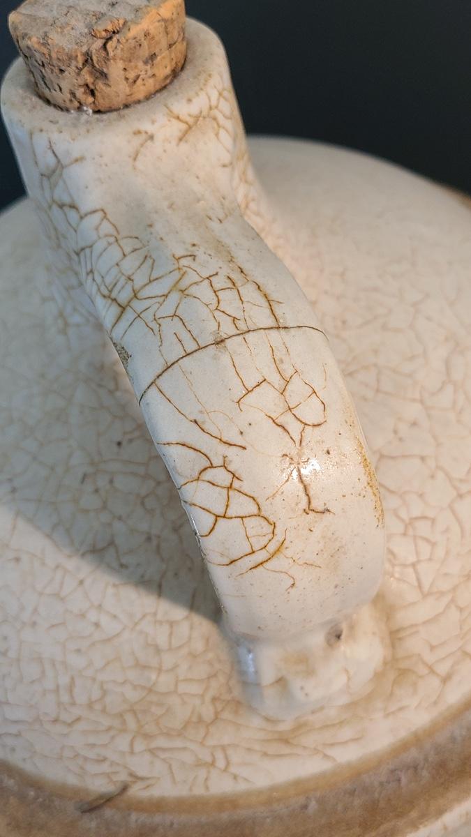This beauty is perfect to add to any collections. They make excellent decor! This piece is very large and has bright markings. It does show cracking at the handle and what looks like a crack, but not sure if it goes all the way through and was a repair. It is solid, and was able to lift by the handle. It looks to be completely intact. Please see pictures as they are the best representation of the item, the condition of the item, and the size of the item.