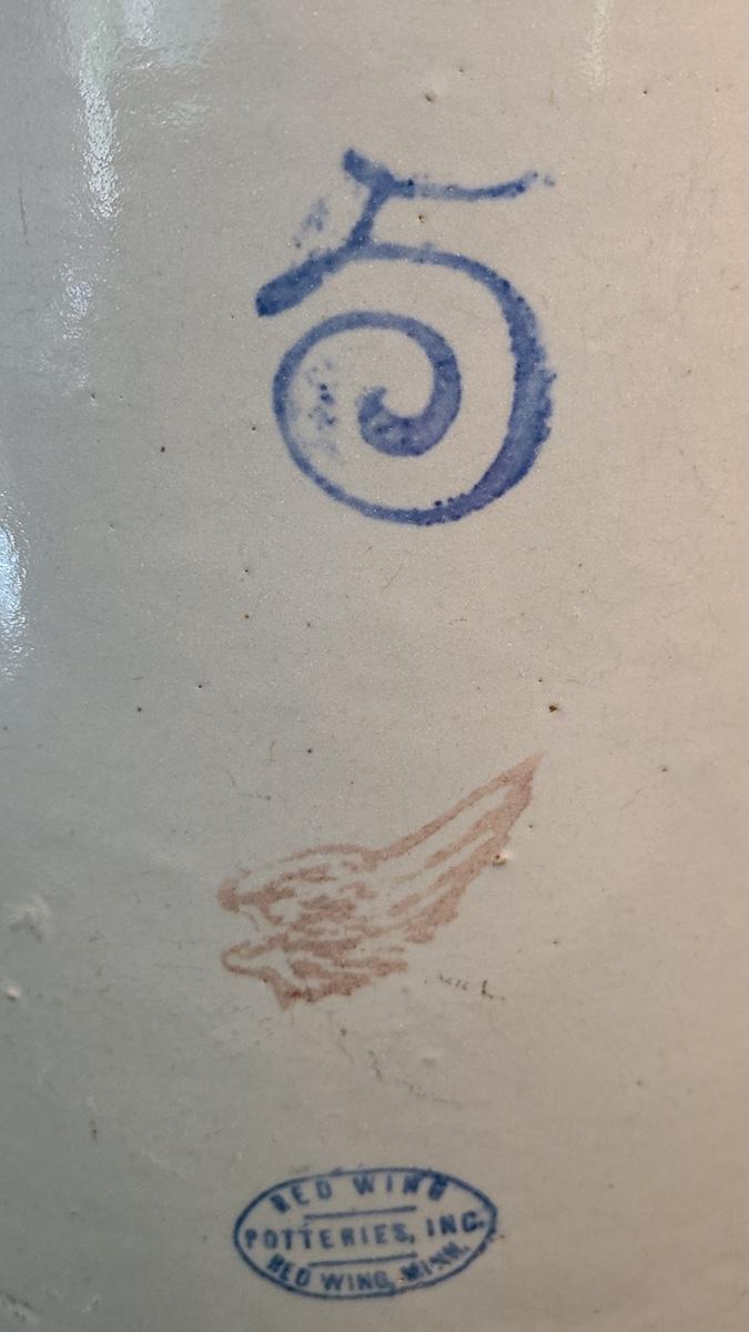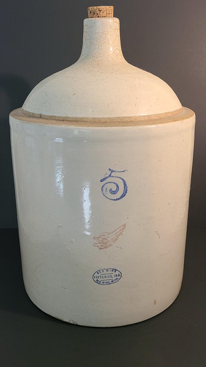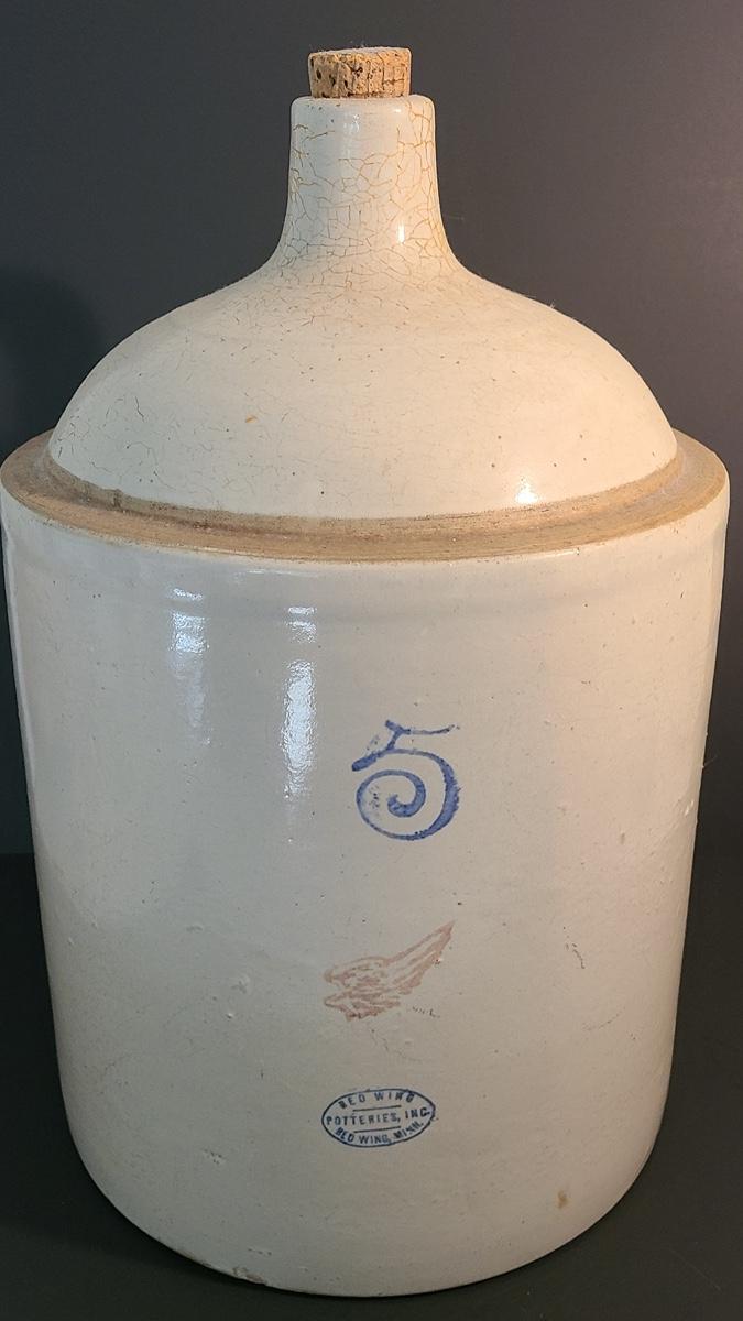 Lot 164: Vintage Stoneware Redwing Pottery #5 Gallon Jug