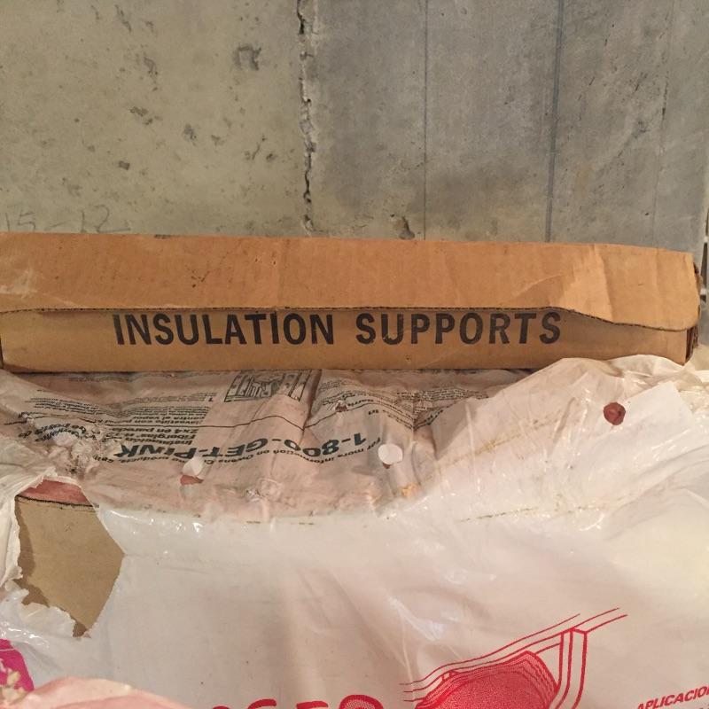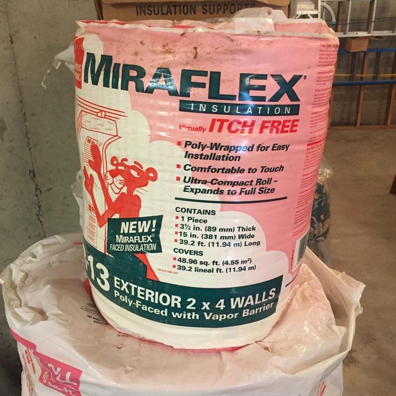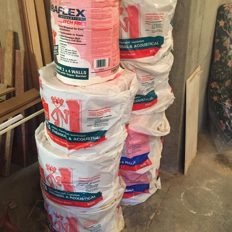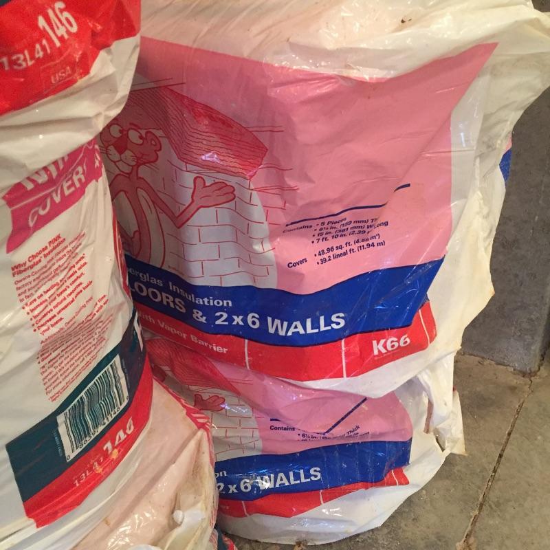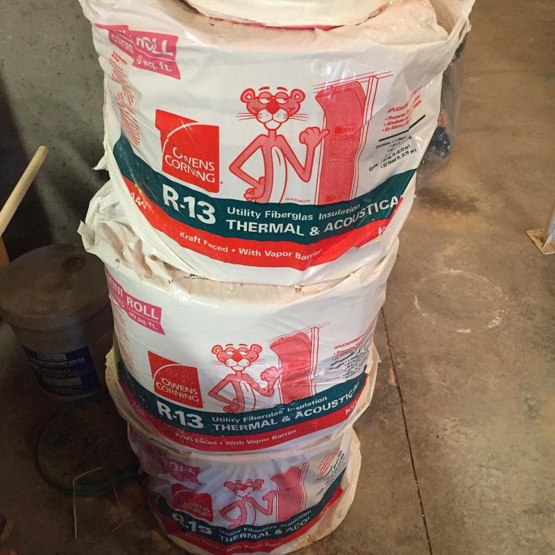 Six rolls of R-13 Owens Corning insulation and two rolls of R-19 insulation.