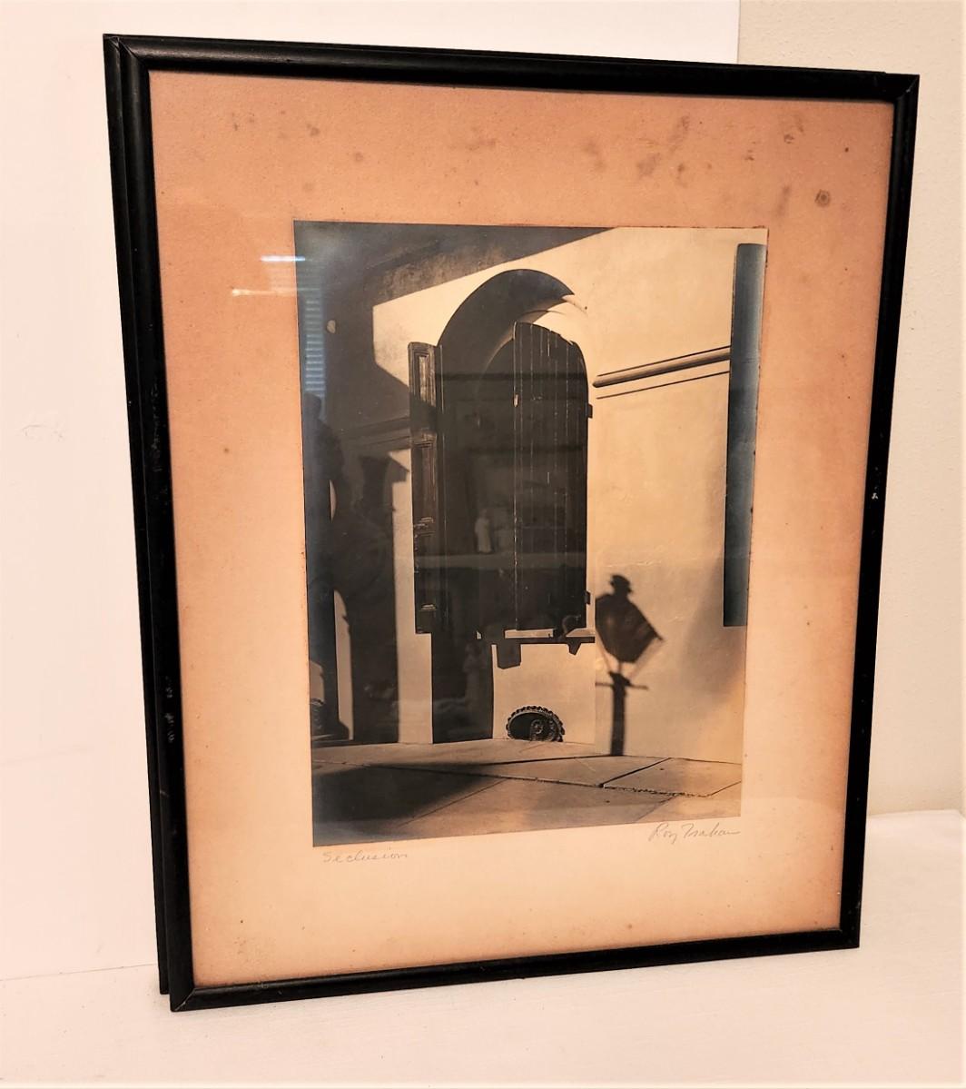 Highly collectible, as this well-known photographer gave his entire collection of negatives and photographic prints to the Historic New Orleans collection in 1990. You will now find very few on the open market. Both of these vintage silver albumen bw photographic prints are pencil signed Ray Trahan. Both have been in storage for a long time and should be rematted. They measure a generous 17" across and 21" tall. One entitled "Pirate's Alley" - the other "Seclusion."