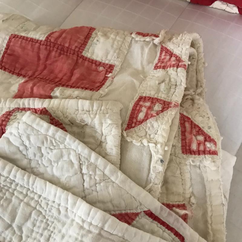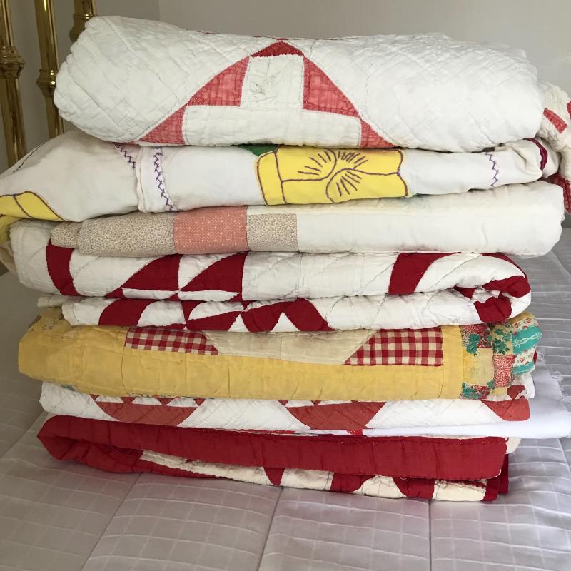 This lot contains eight hand made quilts in various sizes and conditions. All are well used. One topper that is not completed with batting. See pics for details. Shipping available or local pickup in Asheville, NC.