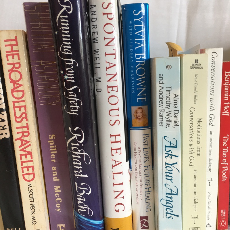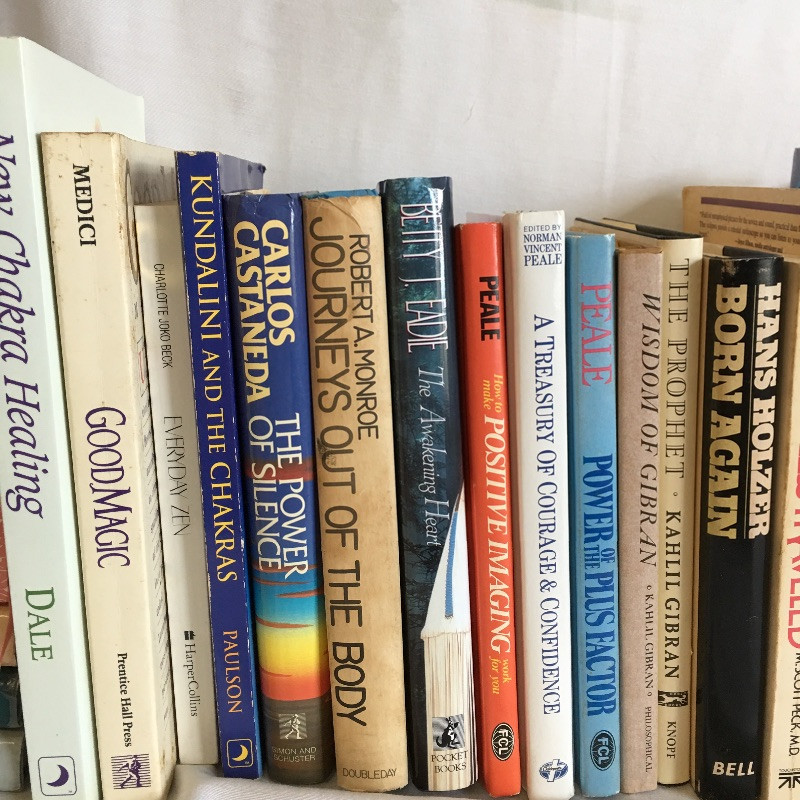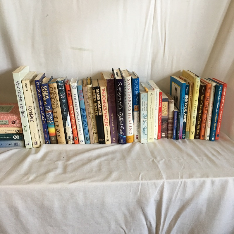 Array of spiritual books including The Prophet, Spontaneous Healing, New Chakra Healing, Good Magic and more, see images.