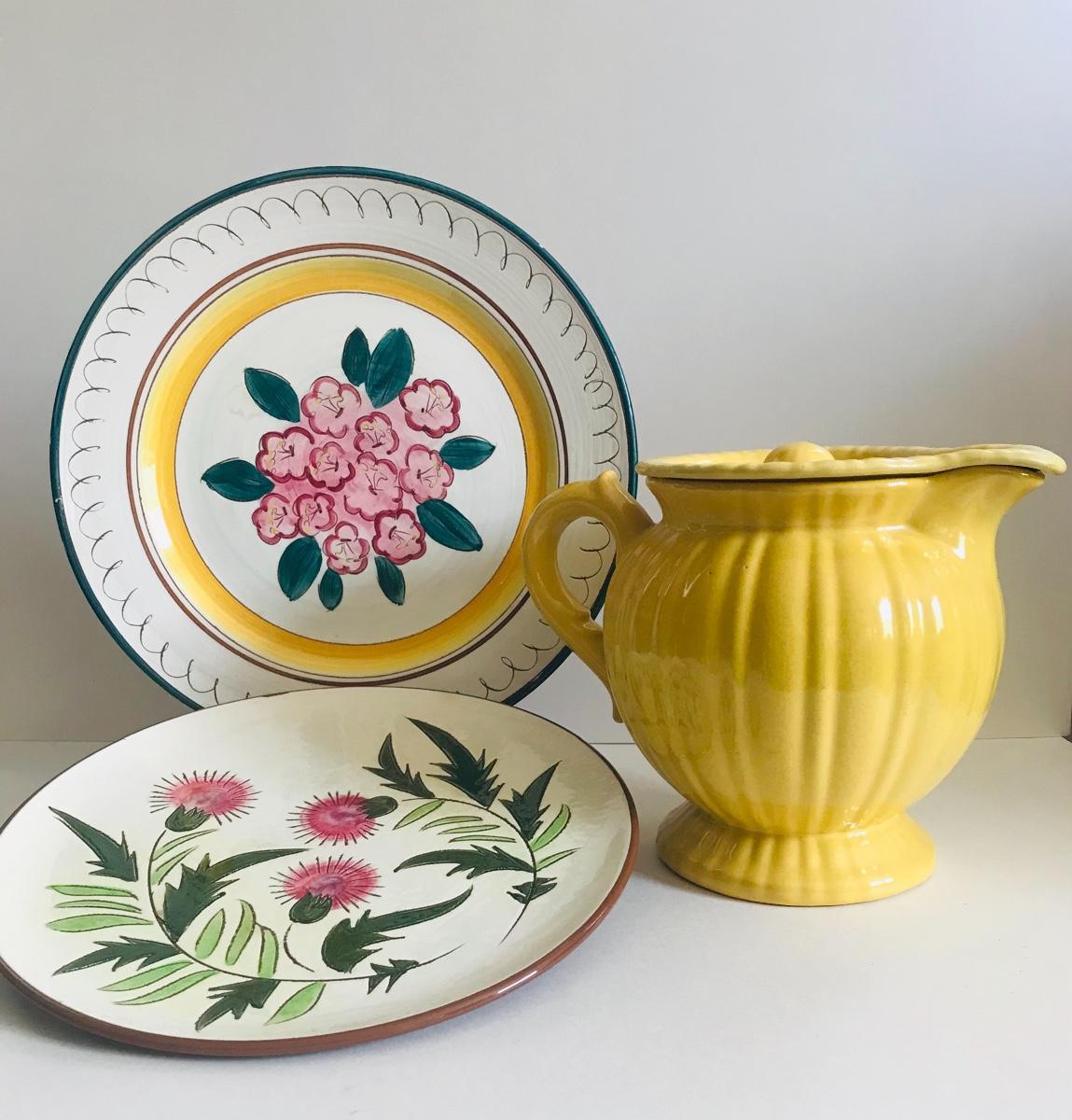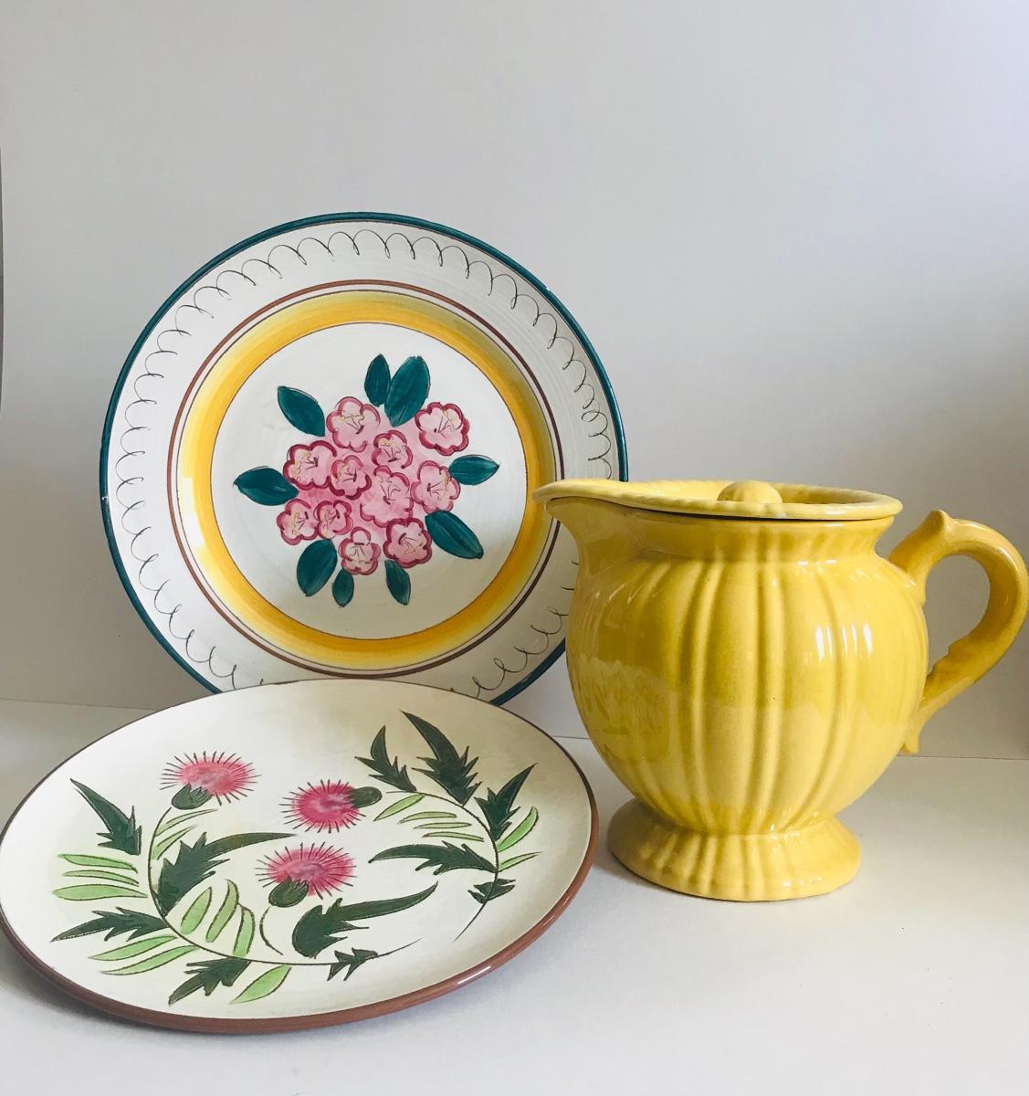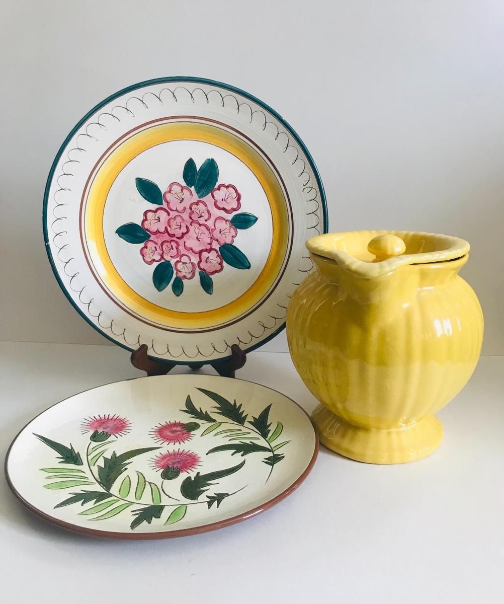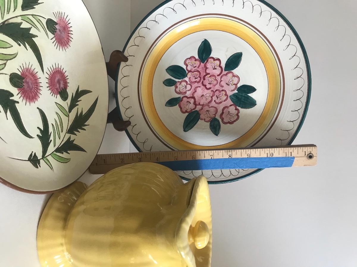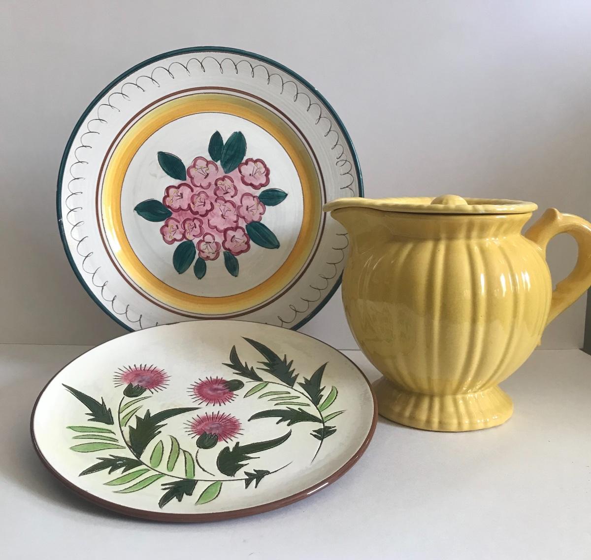 Two Stangl dinner plates and a sunny yellow pitcher with lid. Flea bite chips on one plate. Please see all pictures as they are the best representation of the items. The pictures show condition, measurements if taken, and what is included in the lot. Due to the large amount that we photograph and the time frame, we are not always able to take measurements. All items unless noted, are pre-owned and have been used. If you purchased furniture, you must bring help. We do not allow one person to carry large furniture out on their own. Bring help, tools and a truck for the safety of our client’s homes, and your personal safety. Company policy. Thank you.