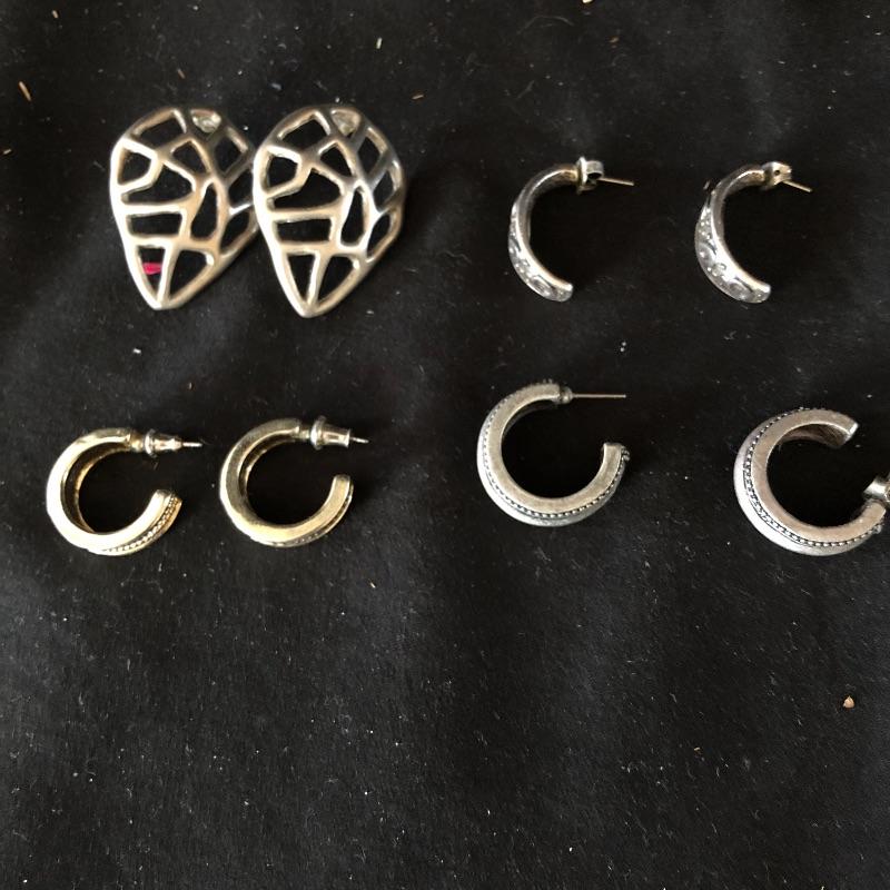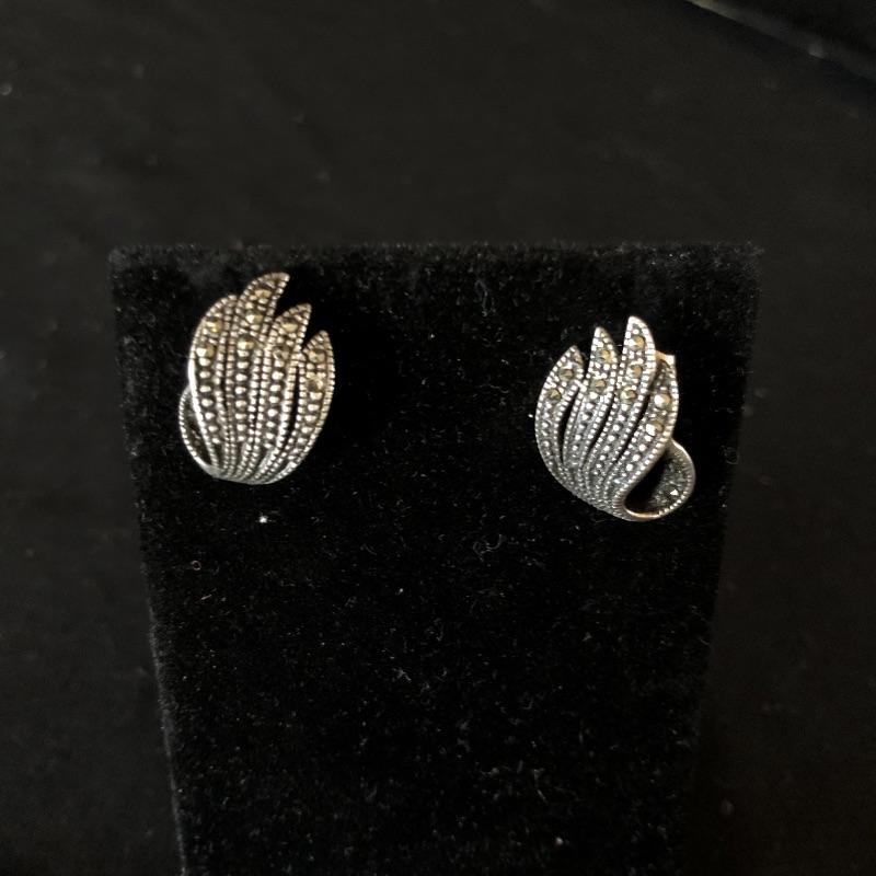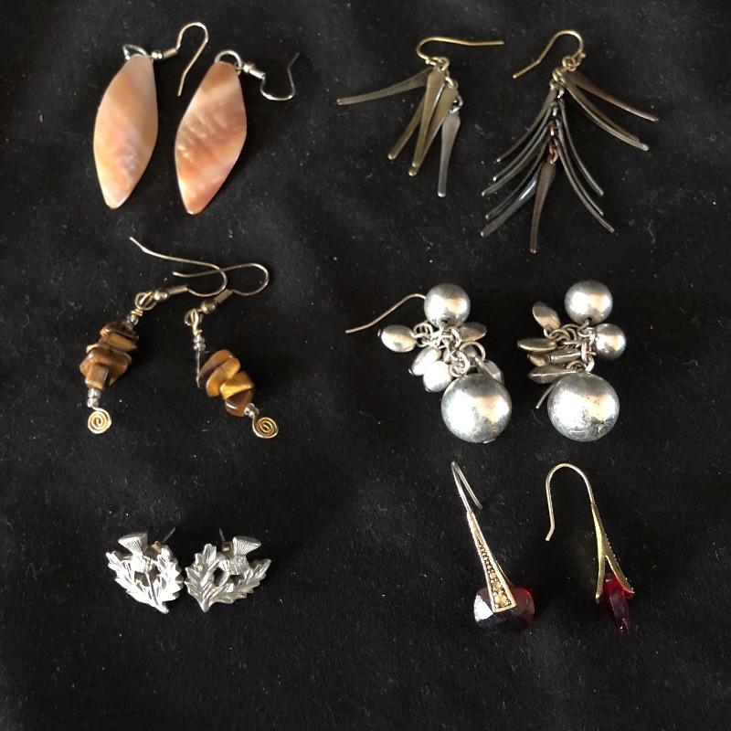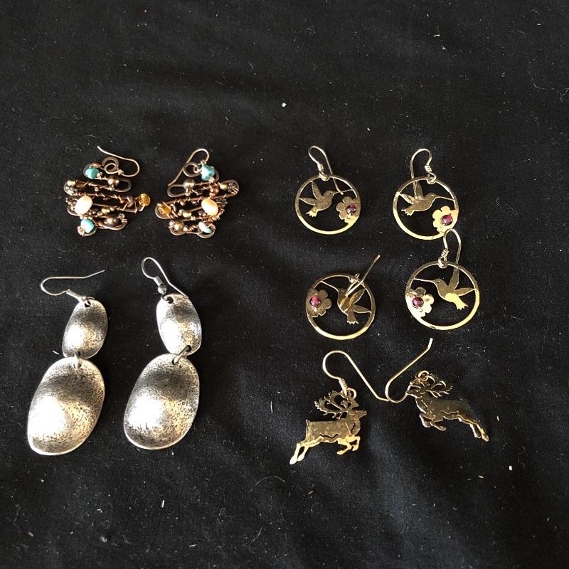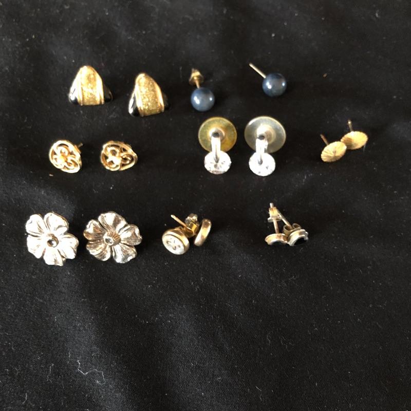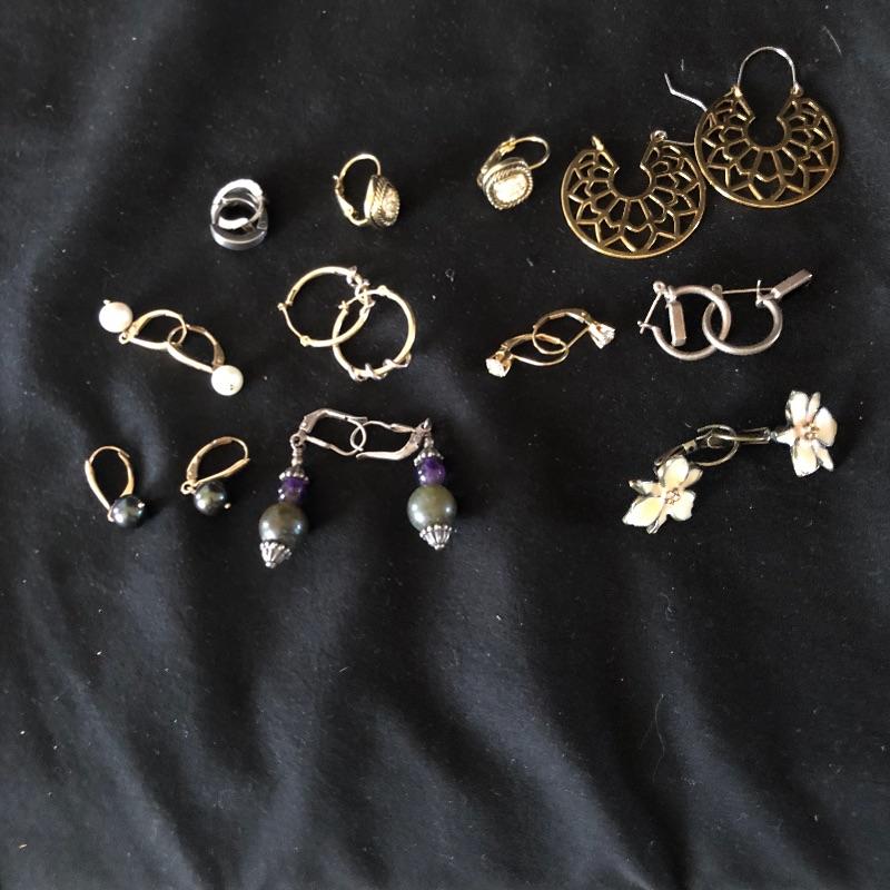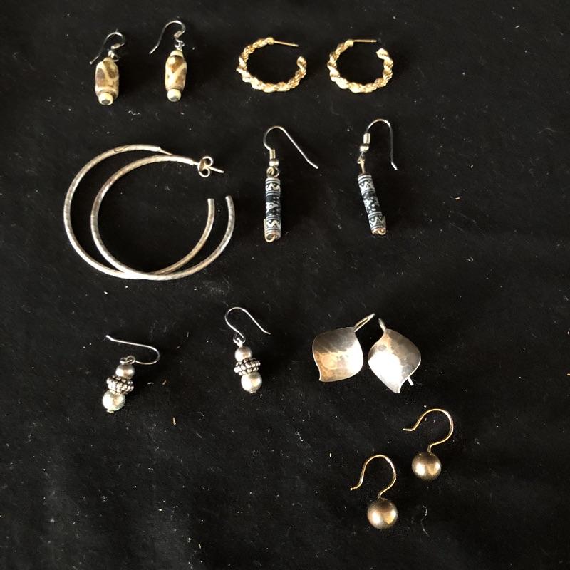 A large collection of earrings in a variety of styles and materials. Lot includes two pair of earrings marked sterling, four pairs of earrings marked 925, six pair of clip on earrings and a great selection of over forty more pairs of earrings.