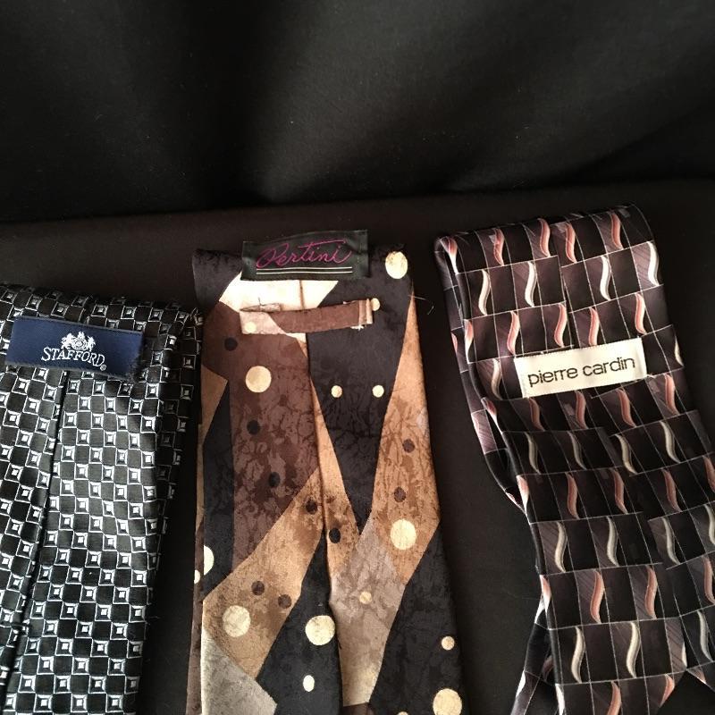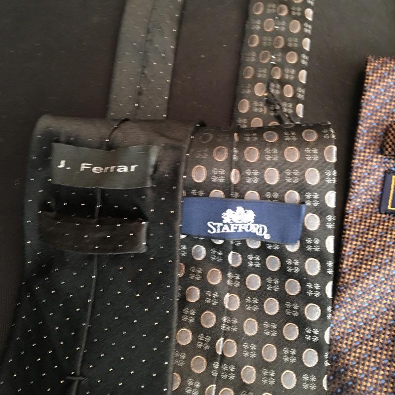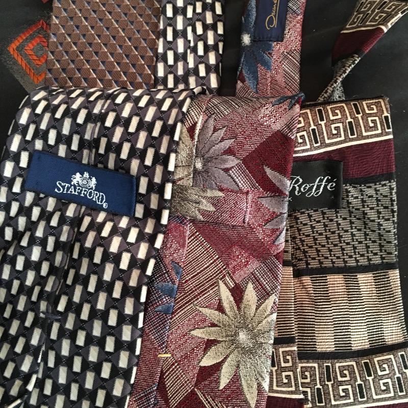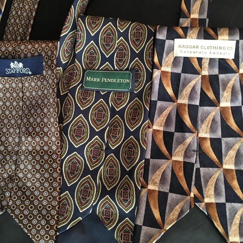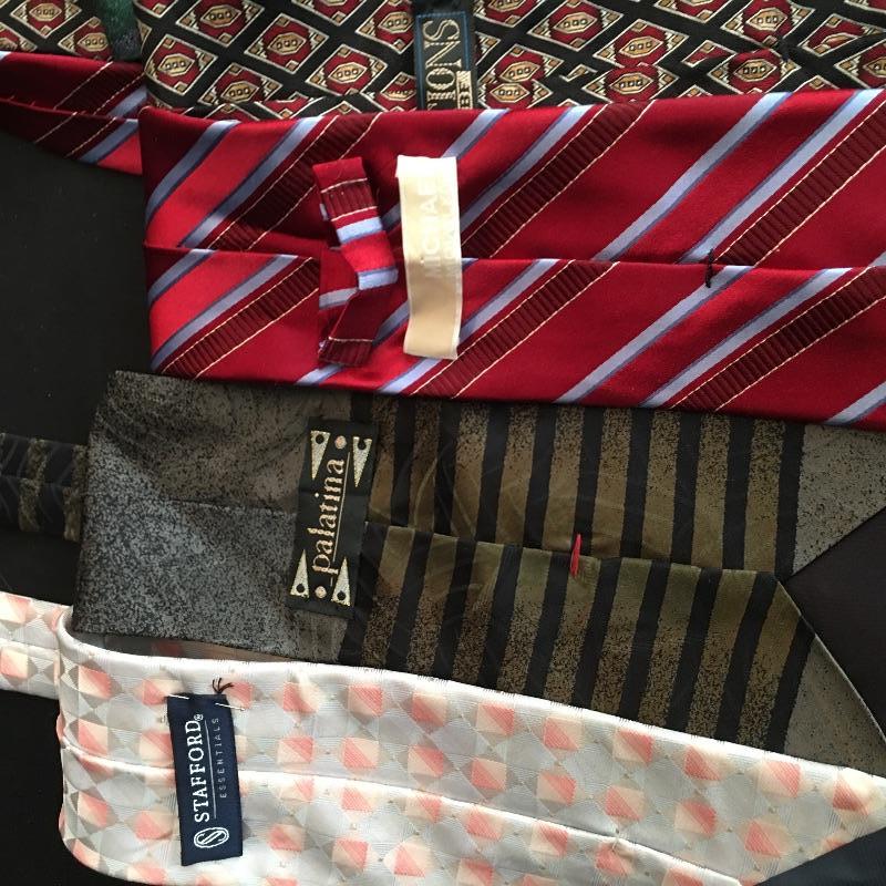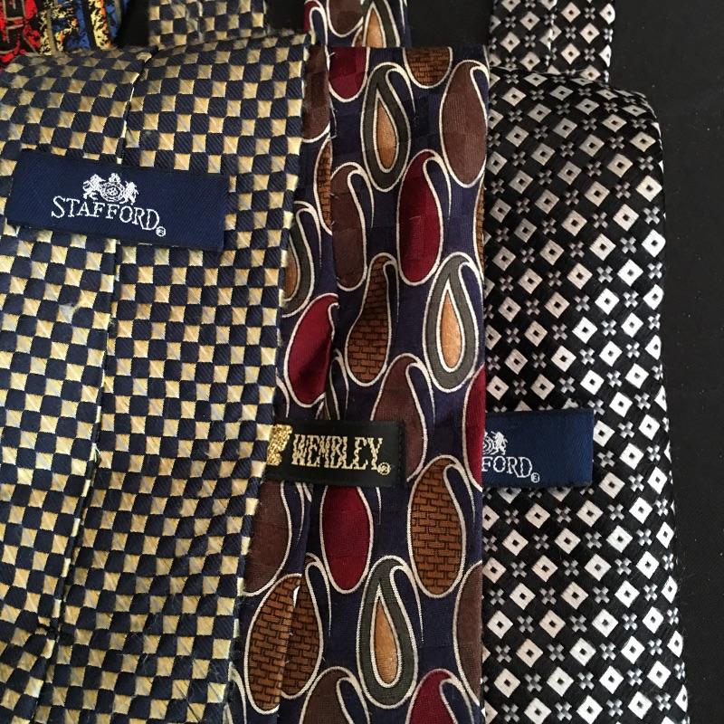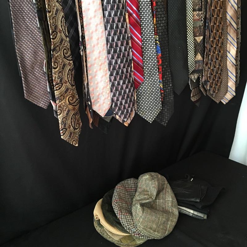 This lot includes five great tweed golf style newsboy caps from Ireland and one made by Stetson. There are also scarves, leather gloves and a plethora of ties including brands such as Stafford, Haggar, Pierre Cardin, Richel, Wembley and more. Shipping available
