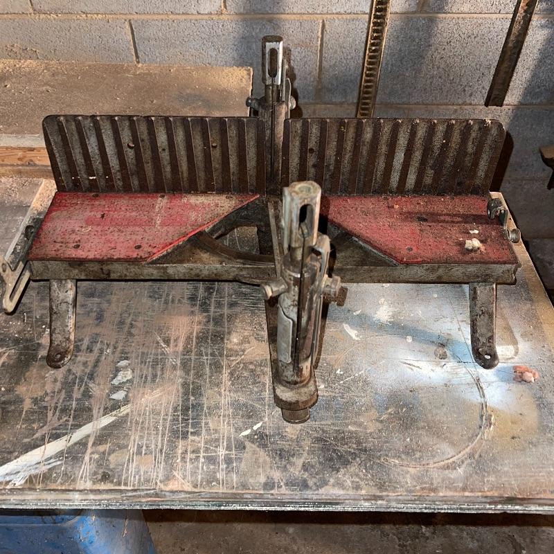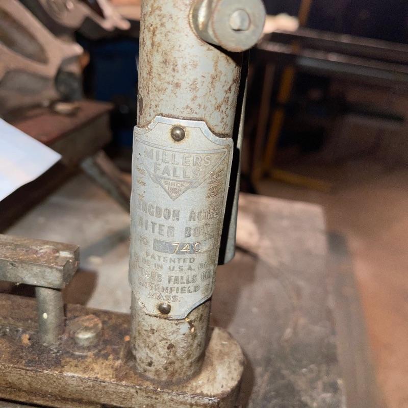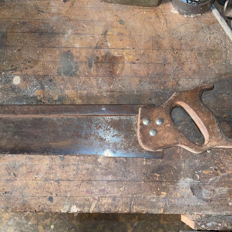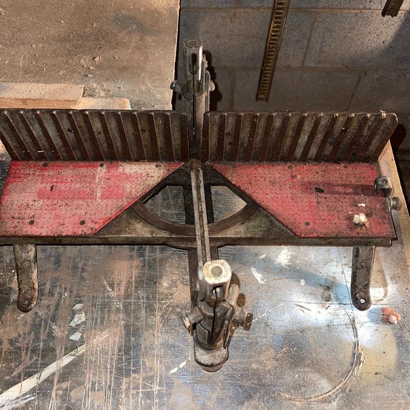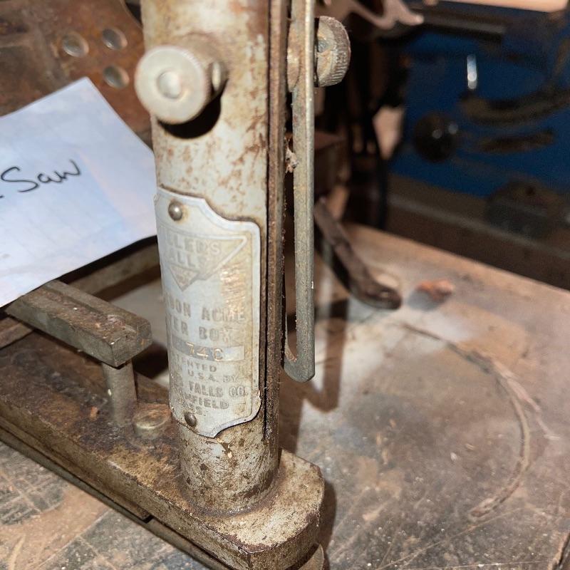 Vintage miter saws and box. Miller Falls, Langdon Acme brand. A bit rusty from age, both saws and box. Saws have wooden handles.