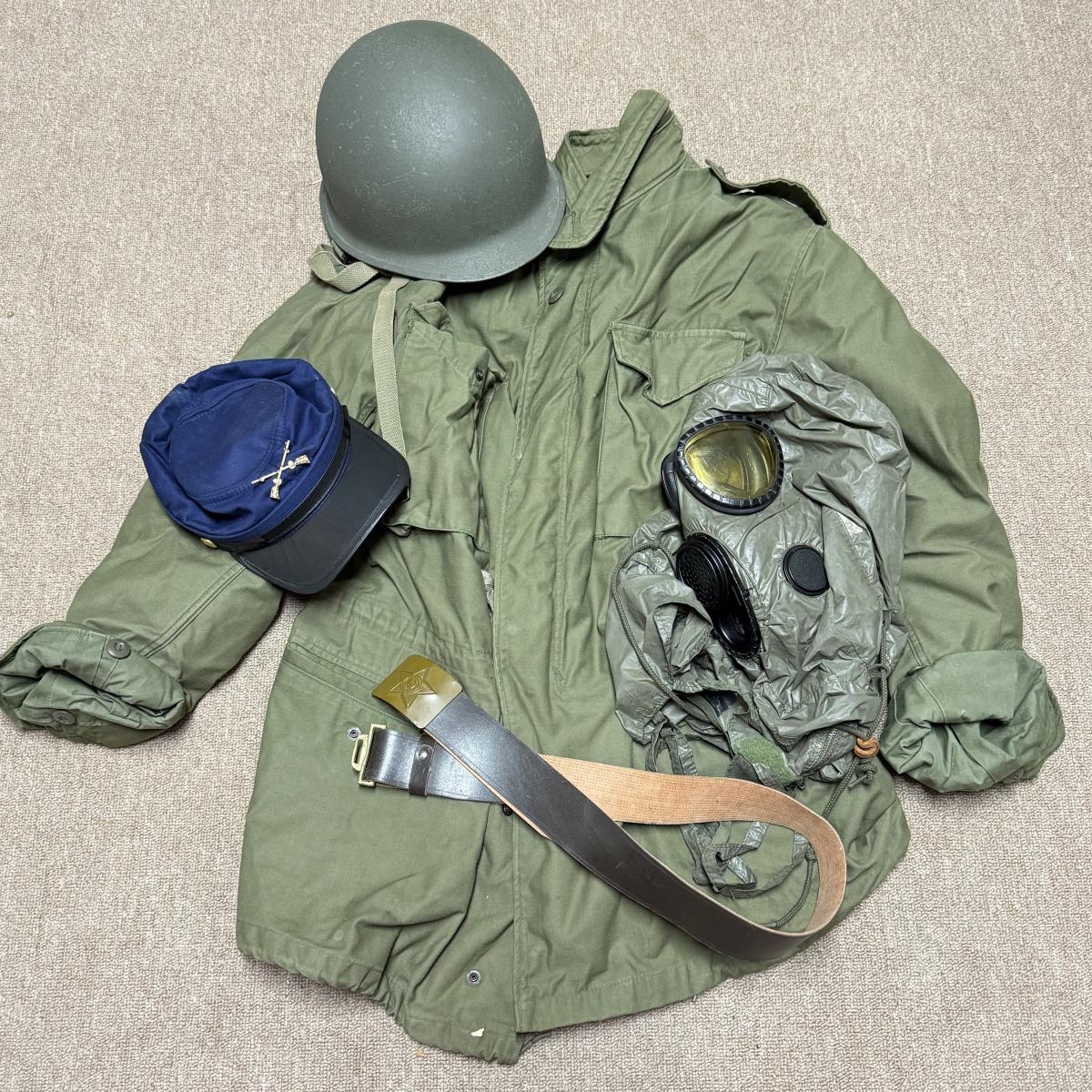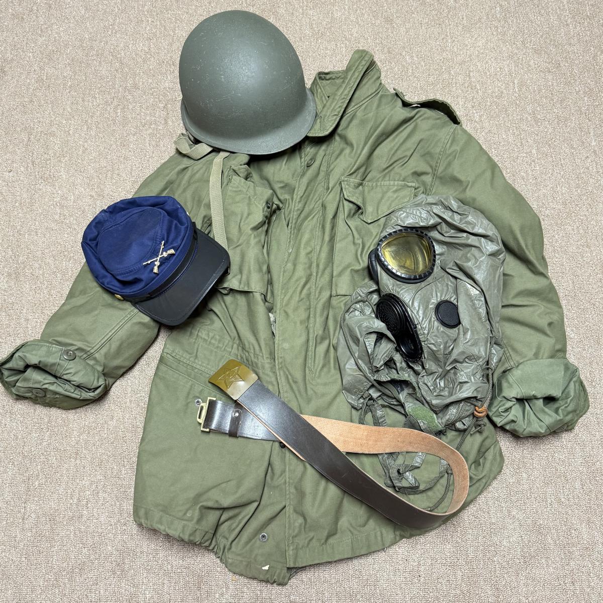 LOT 164B: Military Jacket, WWII Helmet & Gas Mask
