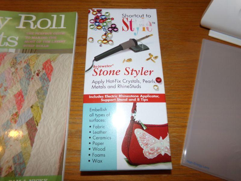 VERILUX HAPPYLIGHT, STONE STYLER, DESK CHAIR, QUILT PATTERN BOOKS, YARD STICKS, PORTABLE SEWING KIT