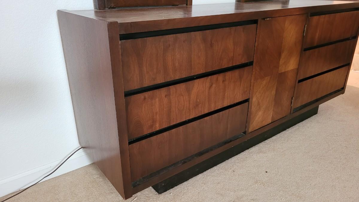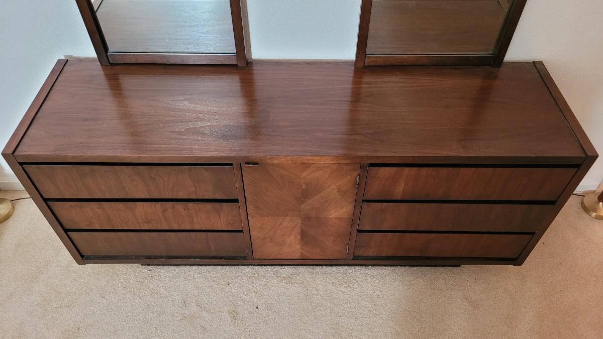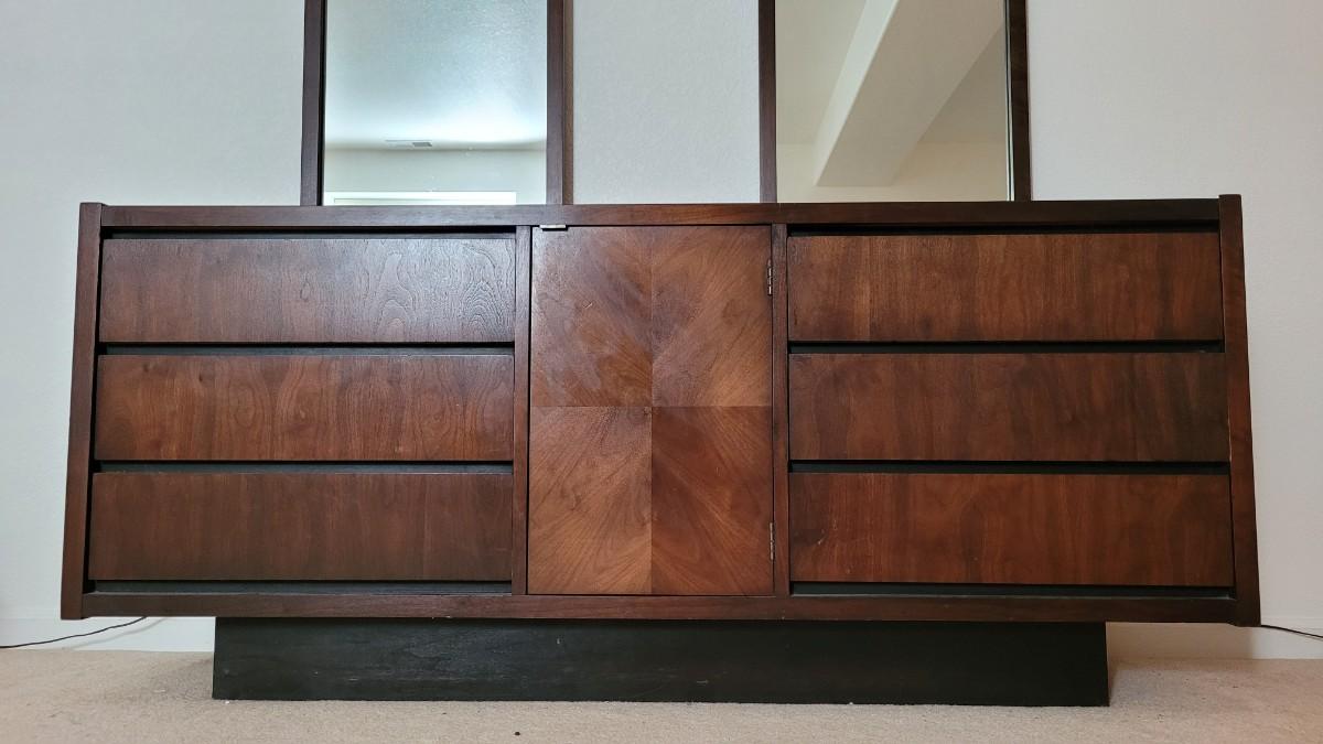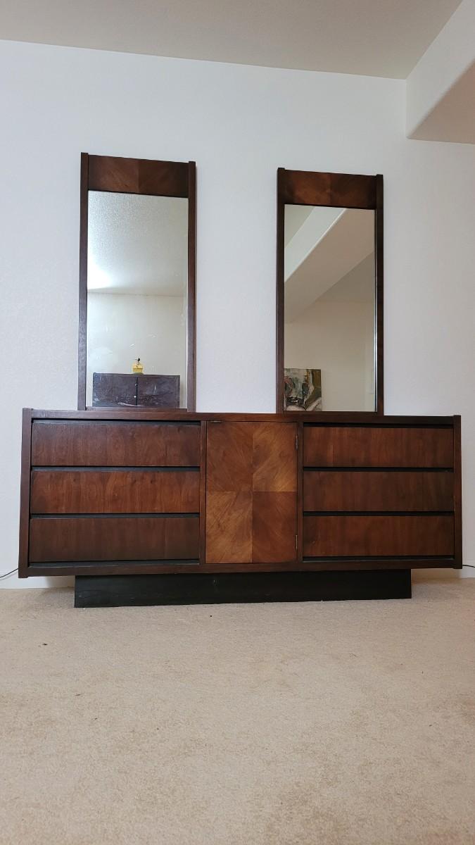 Lot 165: Vintage Mid Century Modern LANE Dresser with Mirrors