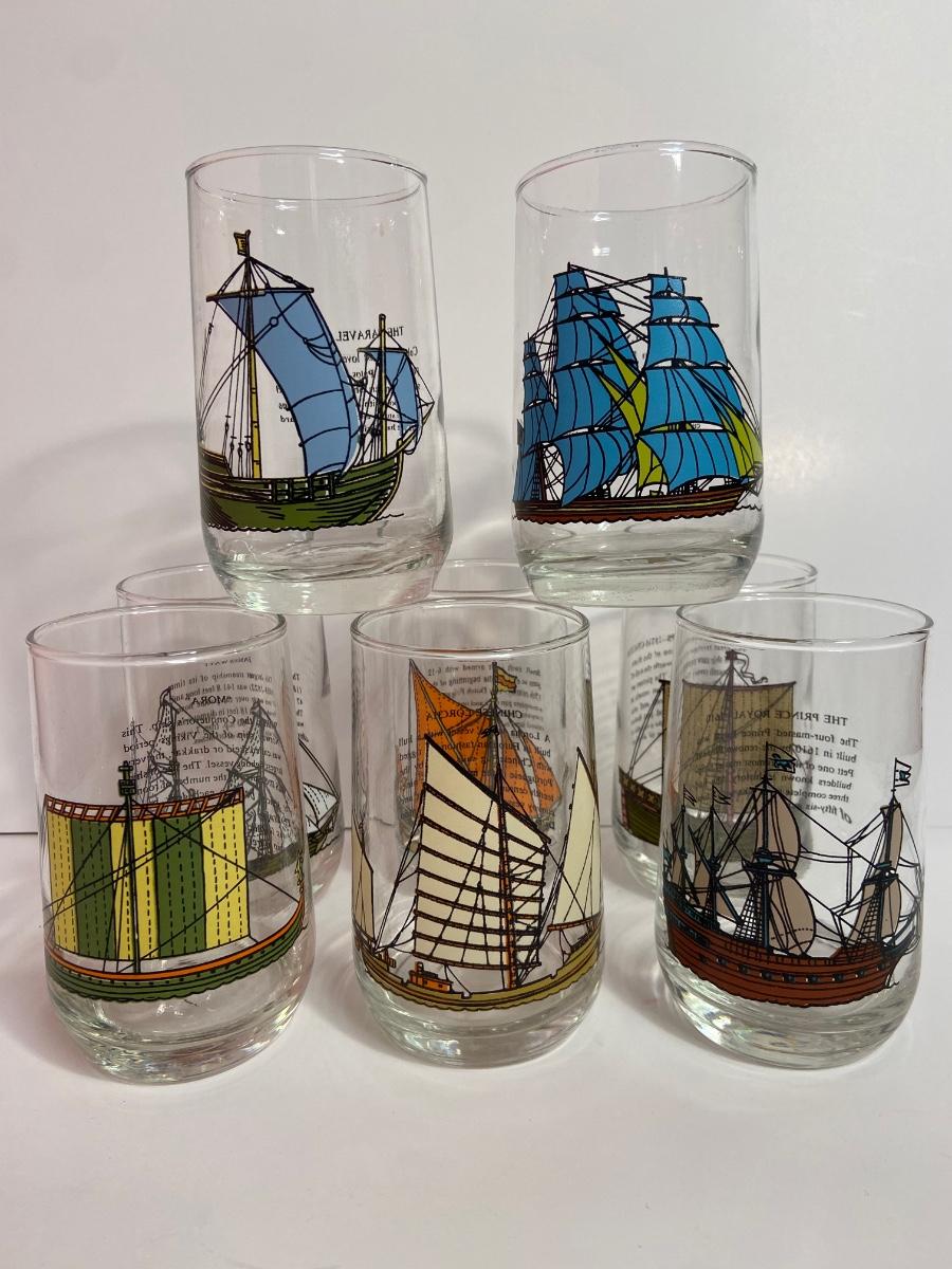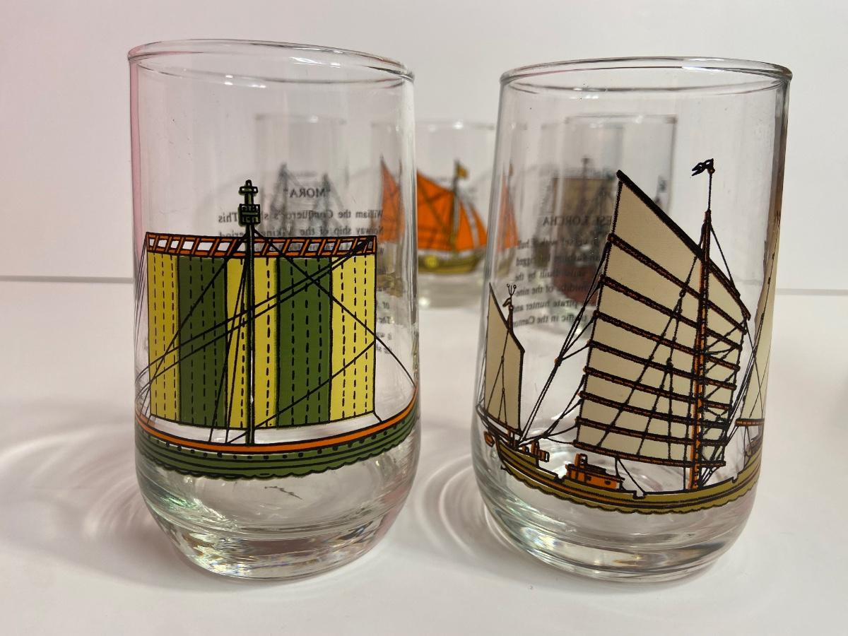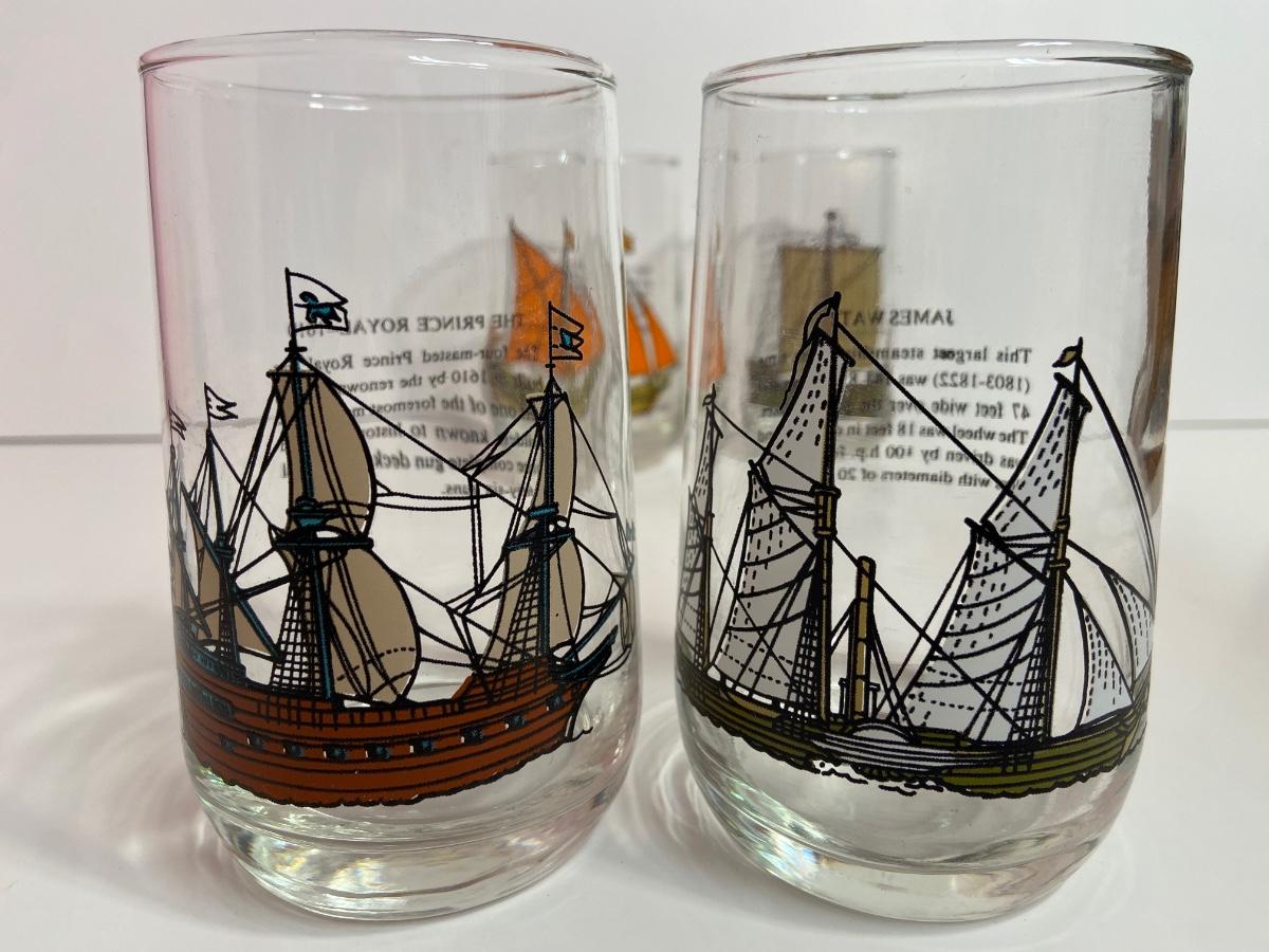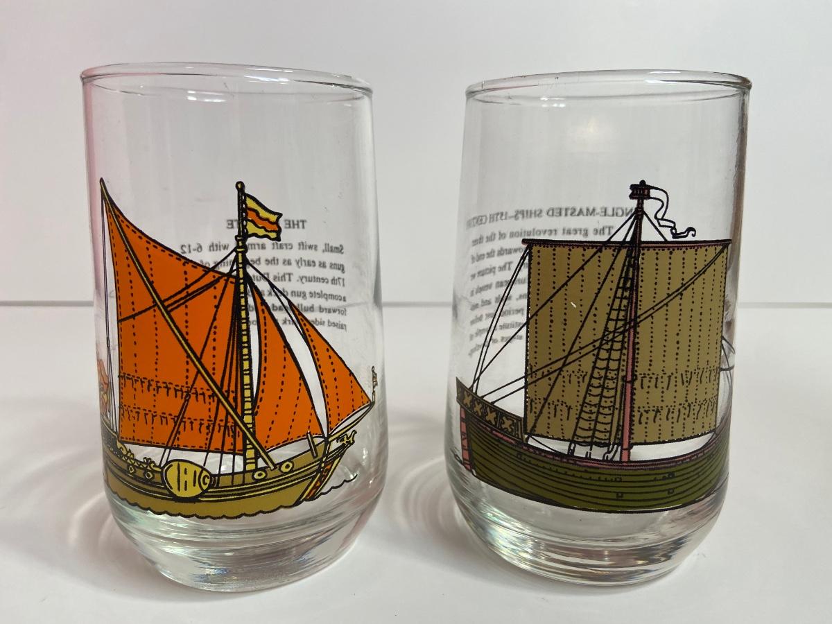 Lot 165; Vintage Nautical/ Tall Ships Beverage Glasses