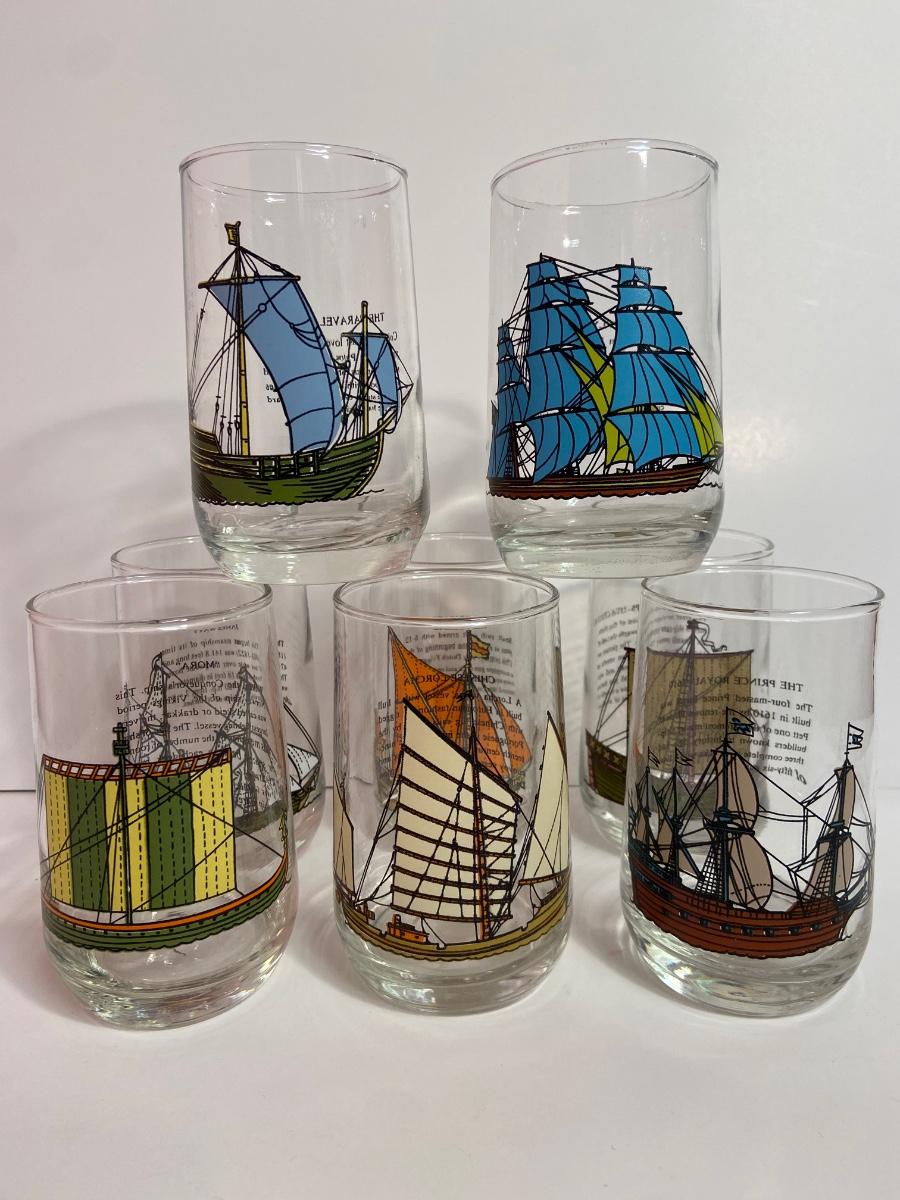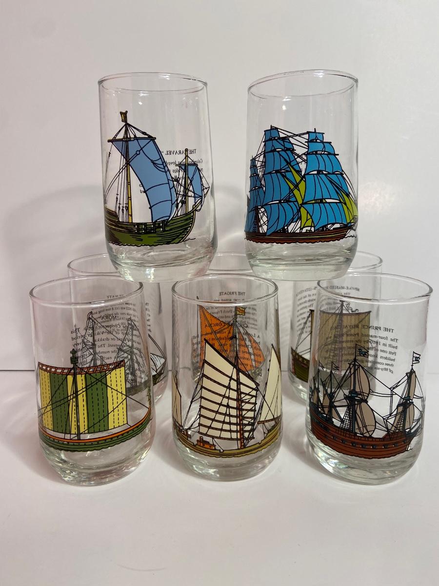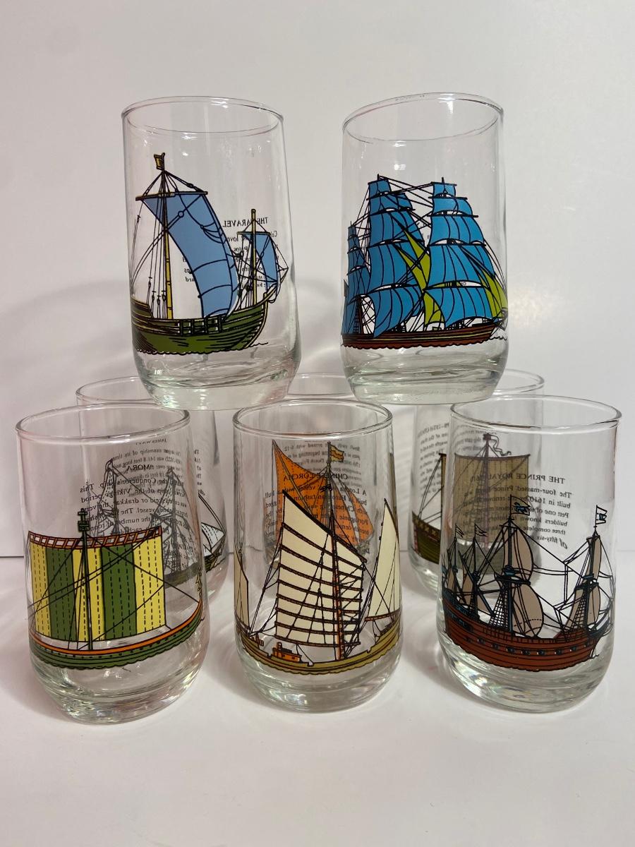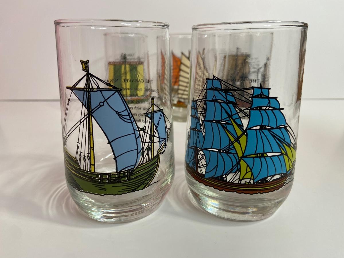 Lot 165; Vintage Nautical/ Tall Ships Beverage Glasses