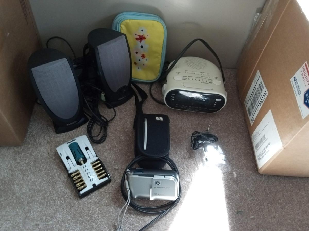 LOT 165 HP DIGITAL CAMERA, COMPUTER SPEAKERS, SONY RADIO ALARM CLOCK AND MORE