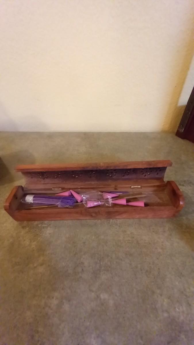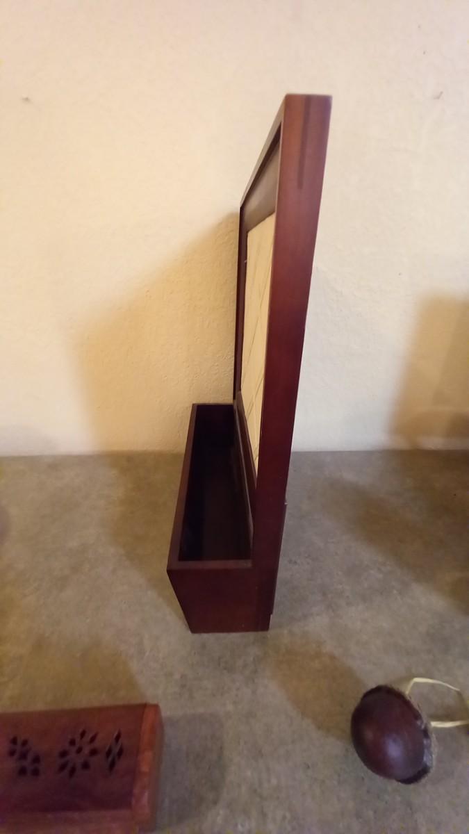 LOT 165 WOODEN INCENSE BOX, SQUARE BOX AND A WALL HUNG ORGANIZER (HD)
