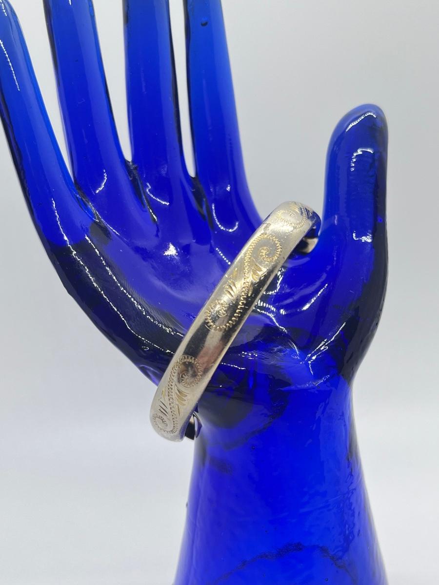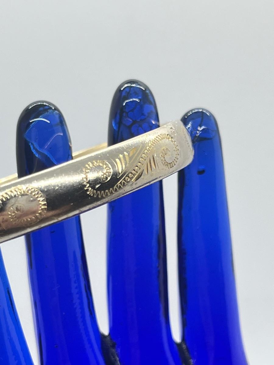 LOT 165: Vintage 1/20th 12K Gold Filled Hinged Etched Bracelet with Safety Chain