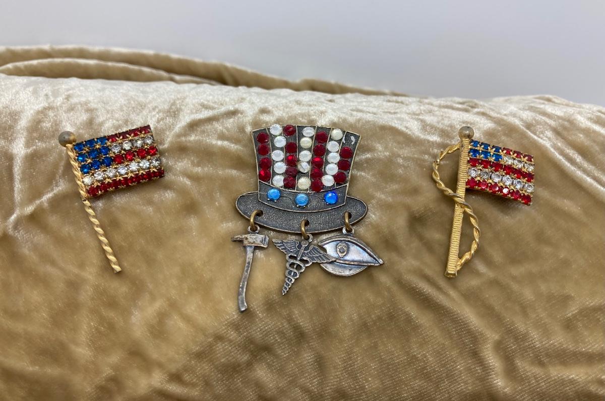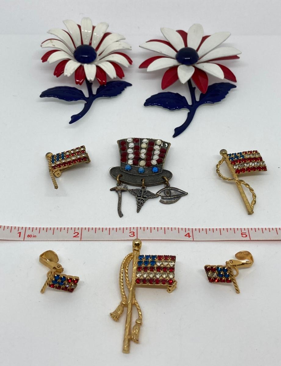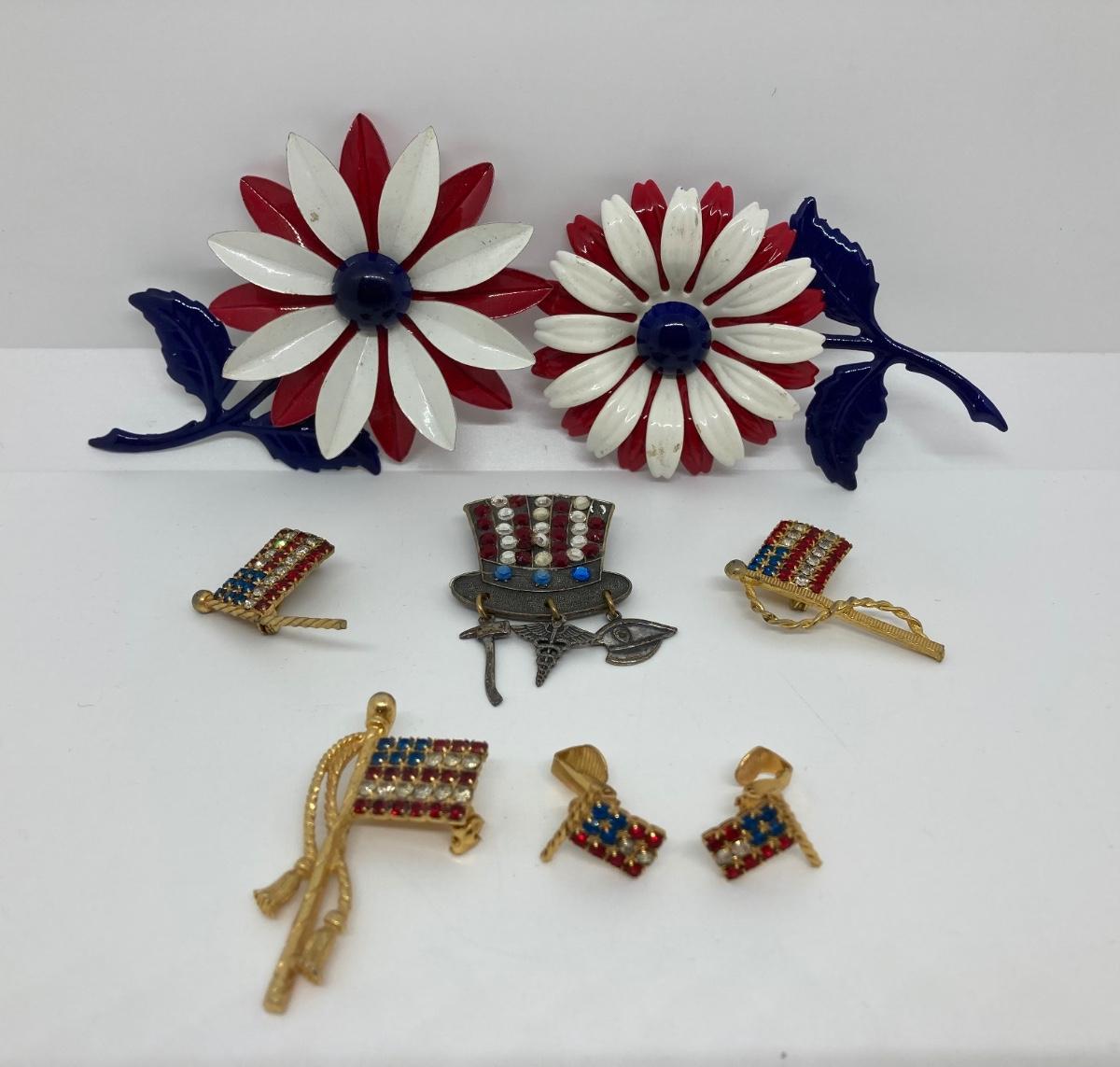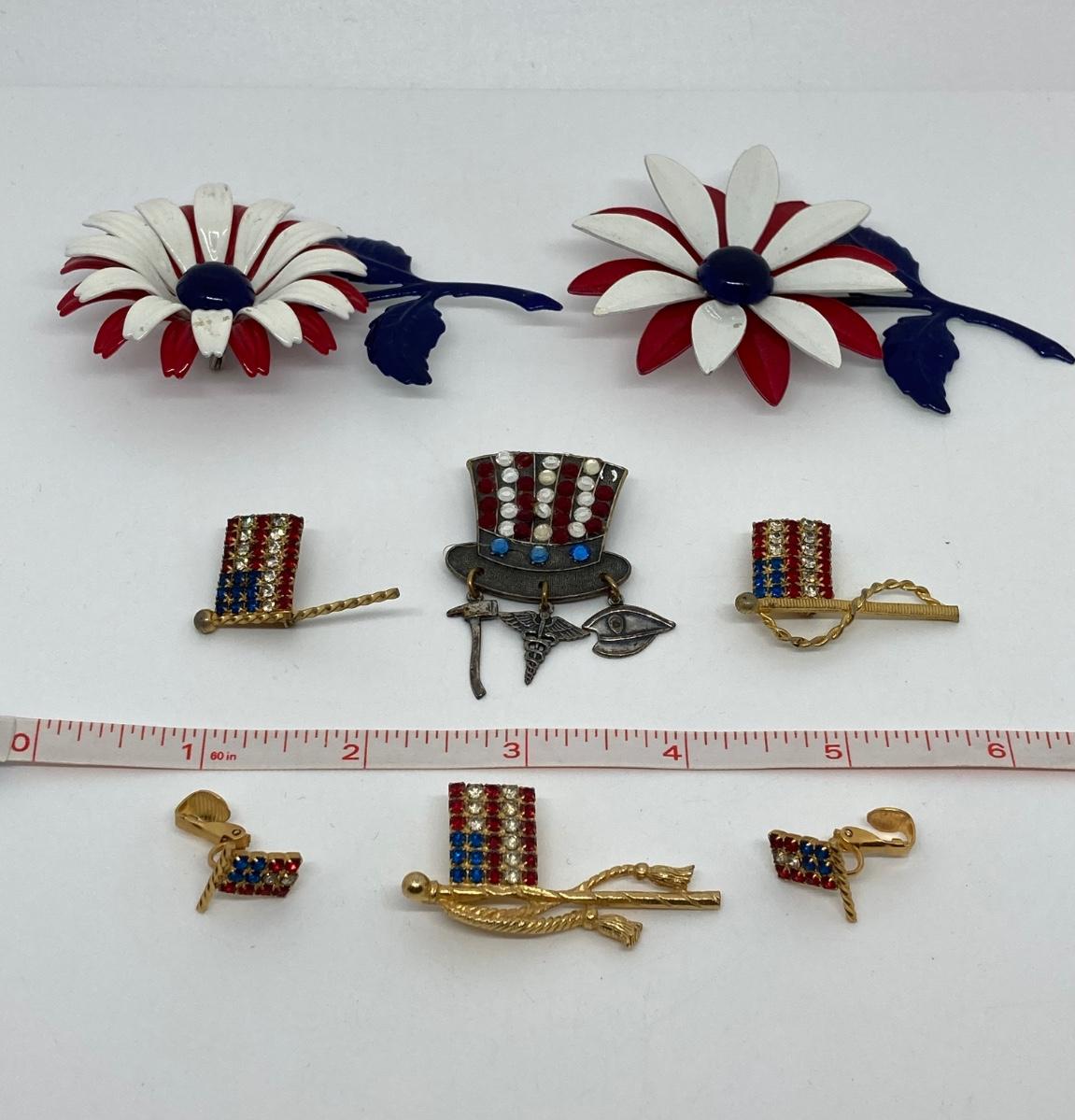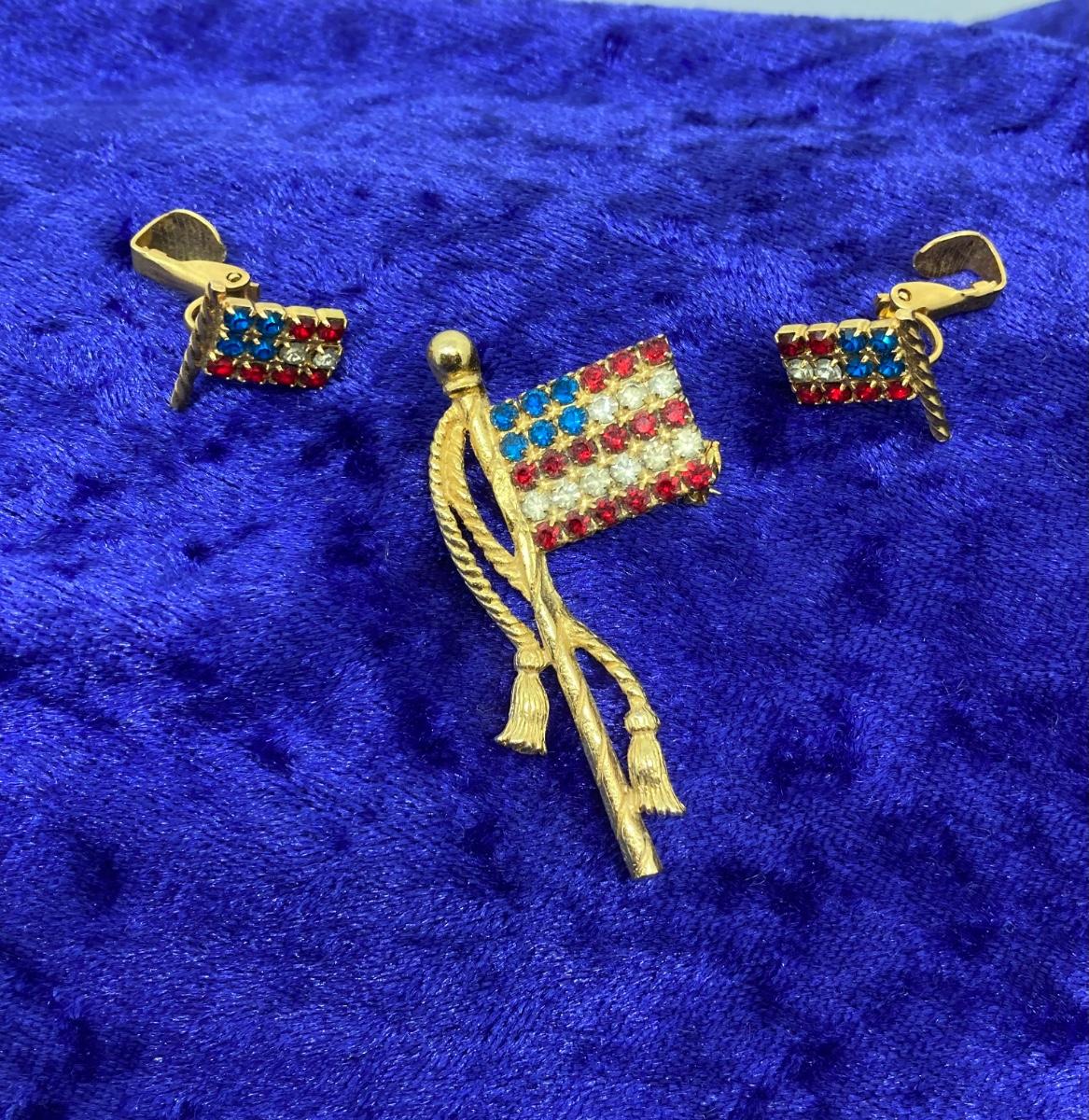 Lot 165: Gold Tone American Flag Pins and Earrings Set