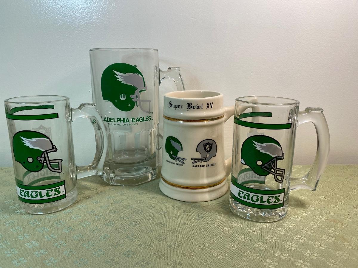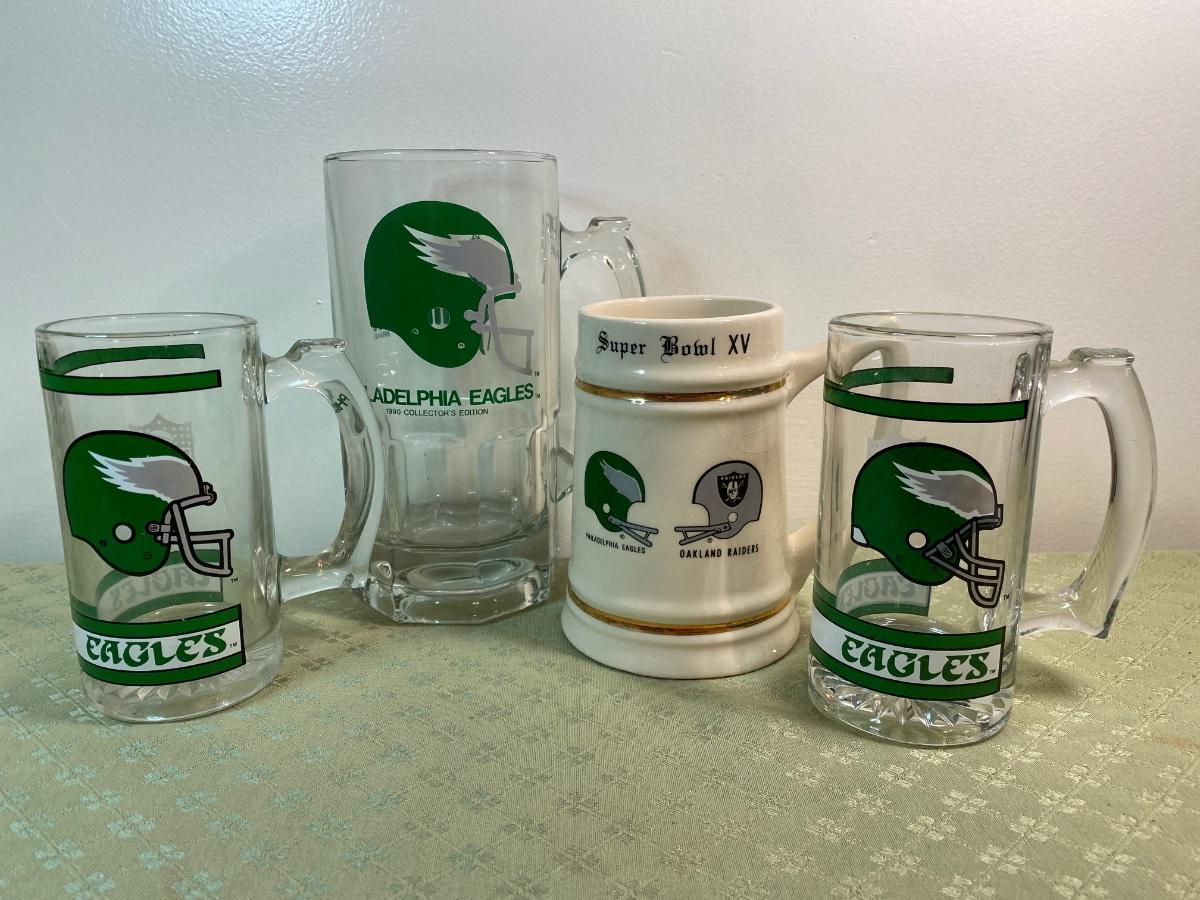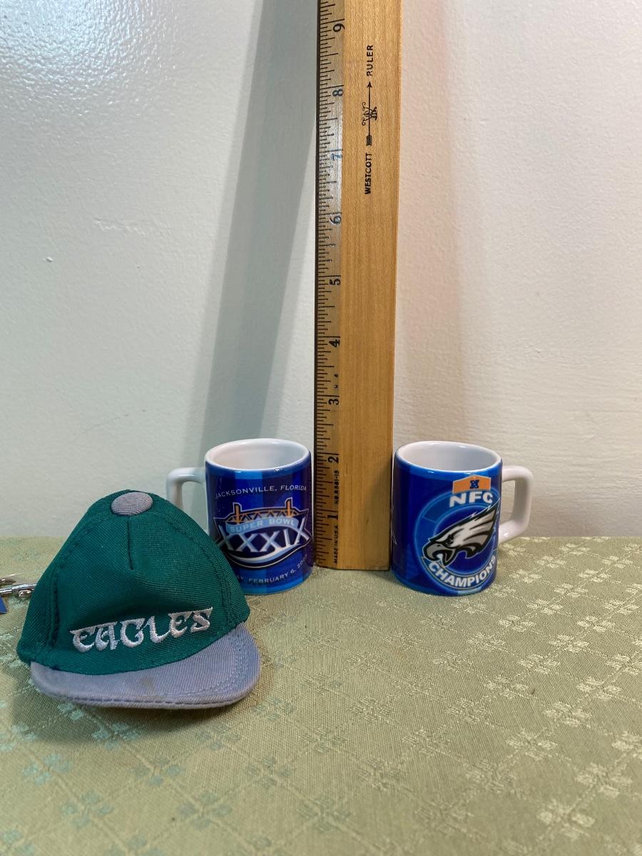 Lot 165: Phildelphia Eagles Collection Including Fleece Pullover, a NFl Players Jersey, a Starter T-Shirt, Cap, Plush Glasses and Mugs