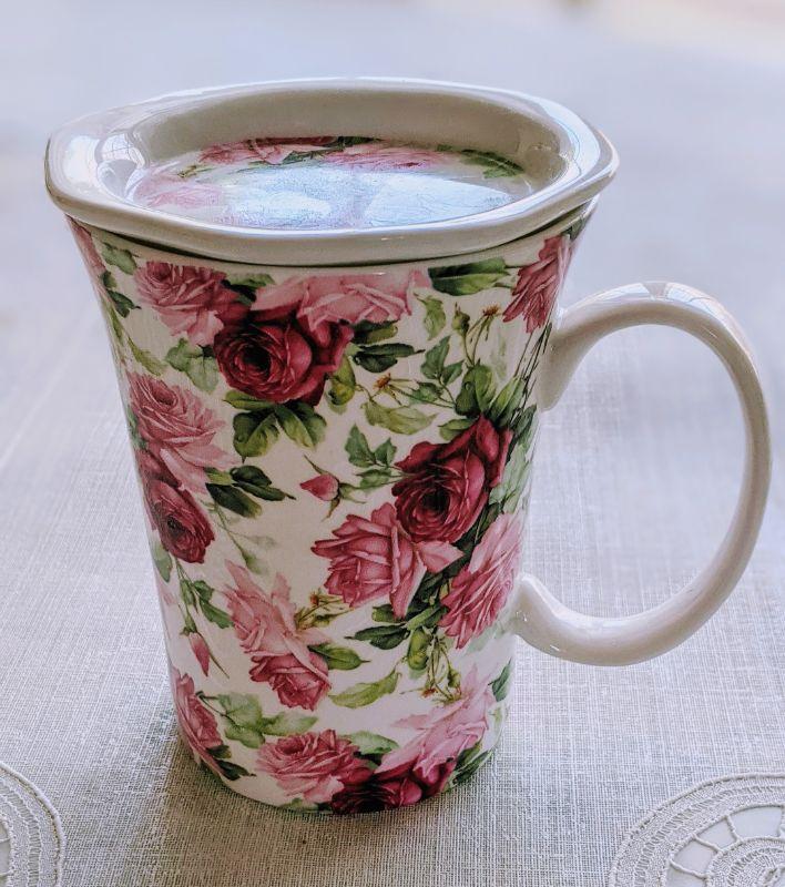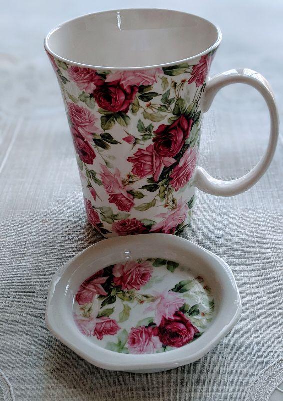 Lot 165 Gracie Bone china mug and coaster/lid Rose Chintz