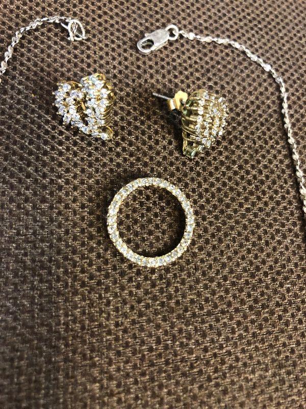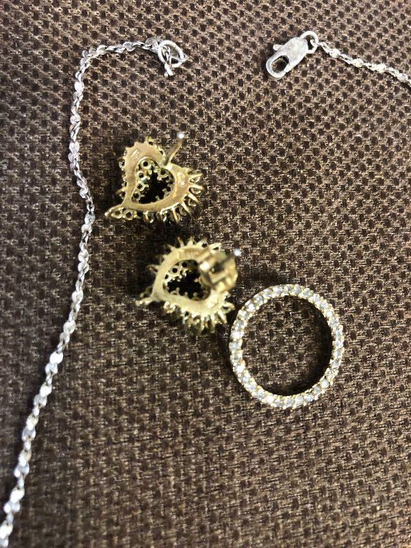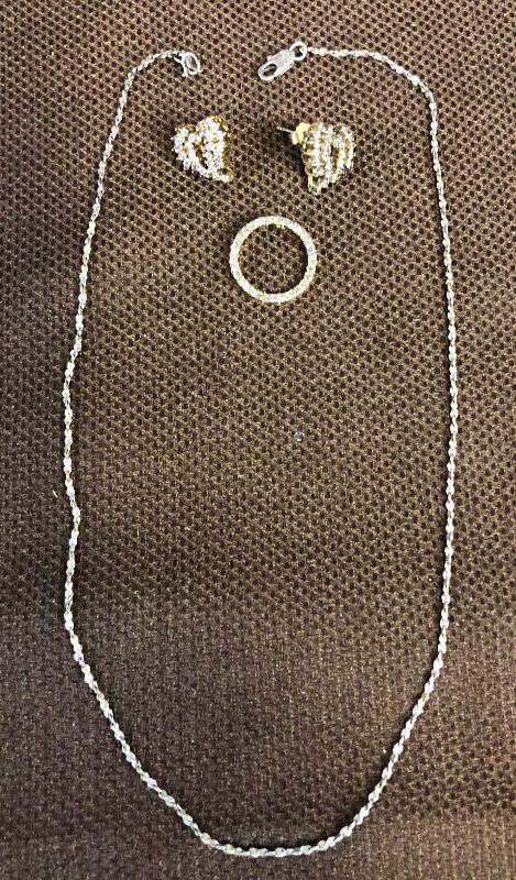 Lot # 165 Chain and Heart Shaped Earrings and round pendant