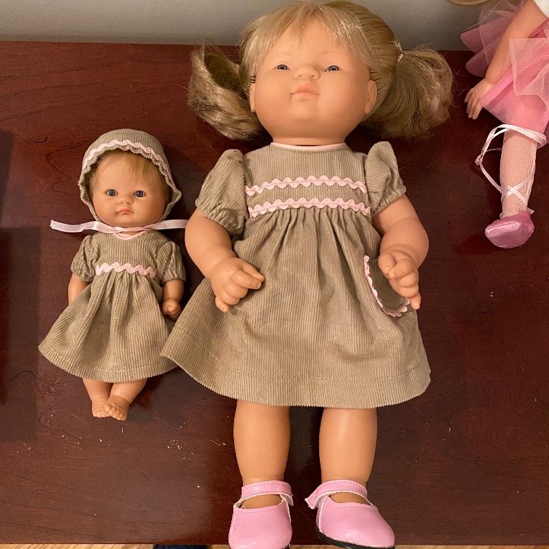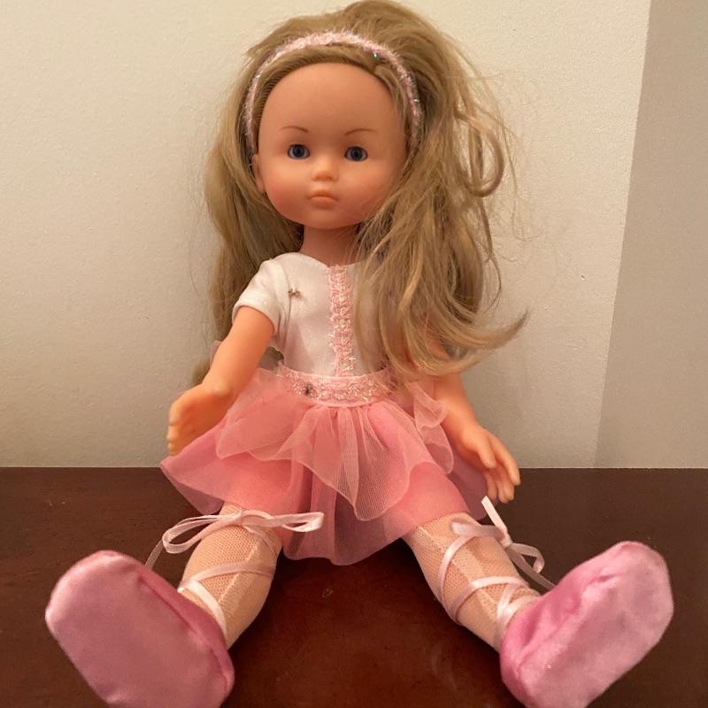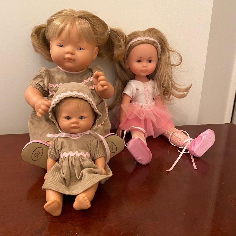 Three adorable dolls. One doll pair is Made by D'Azucar-Asi (Made in Spain) and includes 14” girl with 7.5” baby doll. This cute pair have matching outfits and a sweet face. Lot also includes a Corelle doll(13”) in a ballet outfit. Who doesn’t love ballet at this age!? See photos for markings. Shipping available.