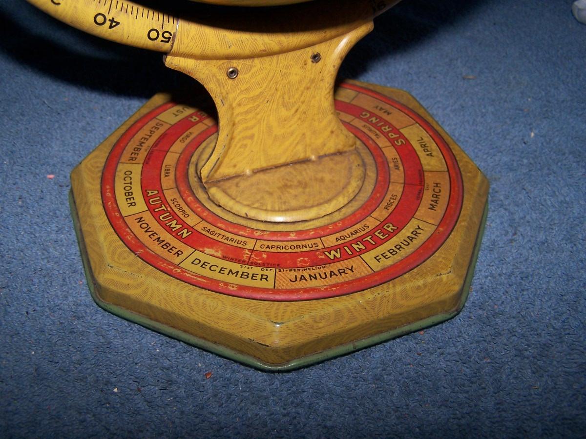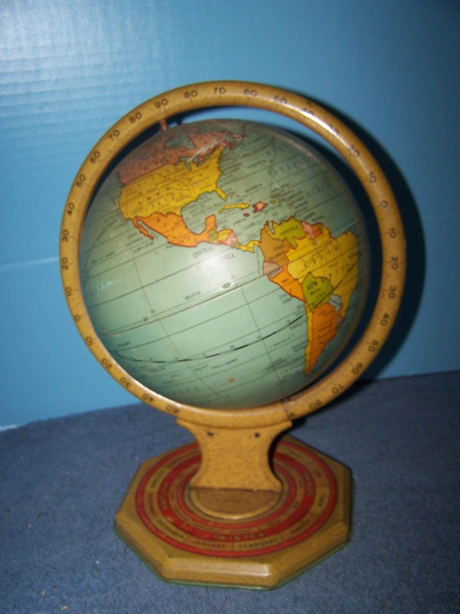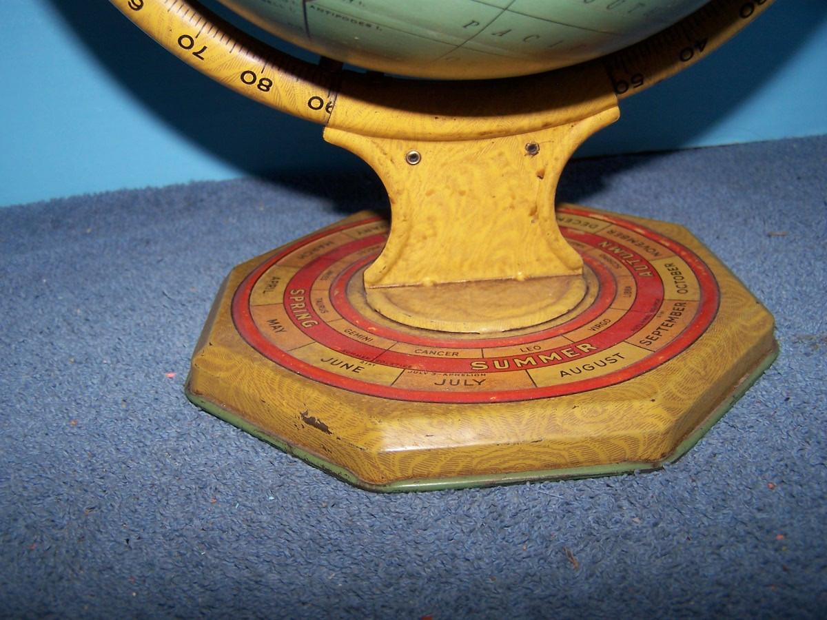 THIS IS A SPECIAL VINTAGE TIN LITHO SCHOLASTIC SCHOOL GLOBE 1930/31!!! VERY DETAILED! 12'' TALL. SEVERAL SMALL DENTS/RUBS, LIGHT WEAR..