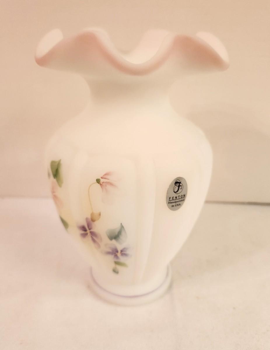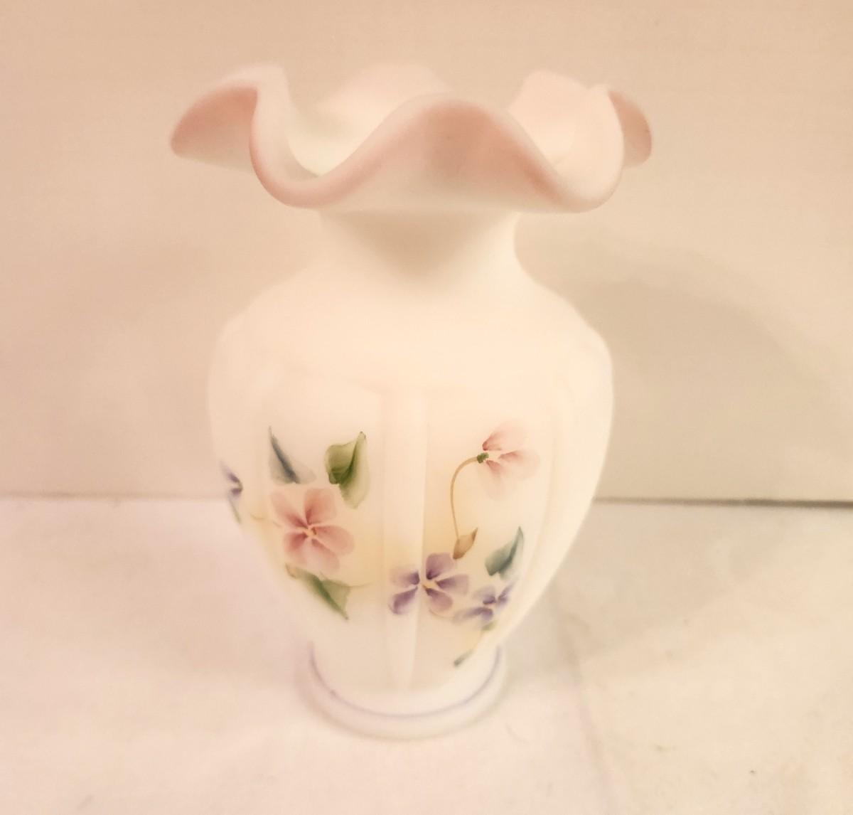 Nice Fenton Art Glass Vase - 8" tall - signed, has label. Good condition.