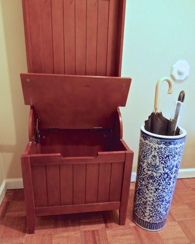 Lot 165: Hall Tree Bench and Ceramic Umbrella Stand