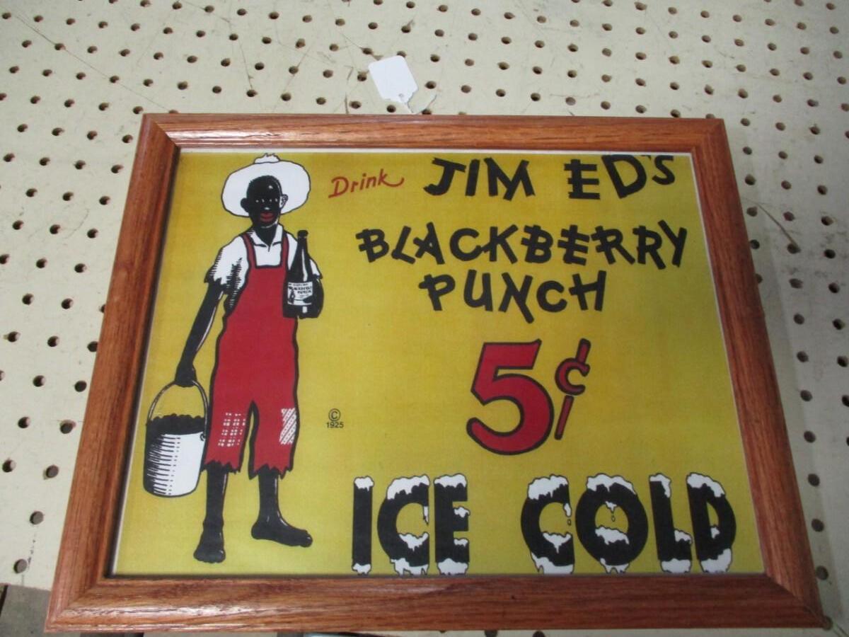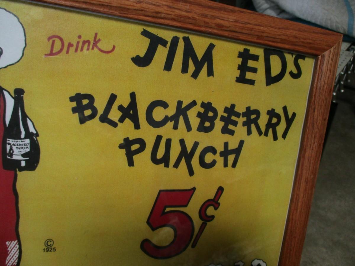 Lot 165 - Jim Ed's Blackberry Punch Metal Black Americana Framed Advertising Sign Copyright 1925