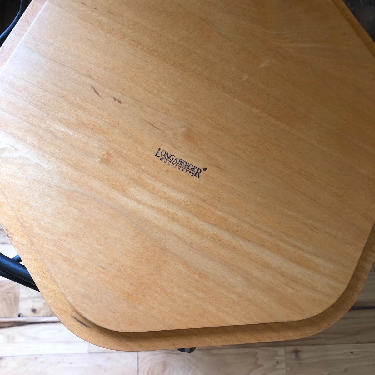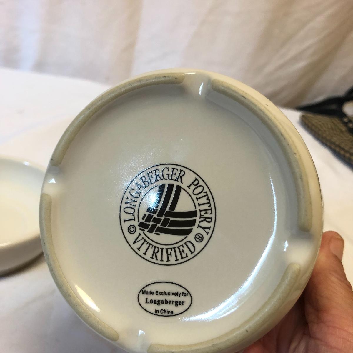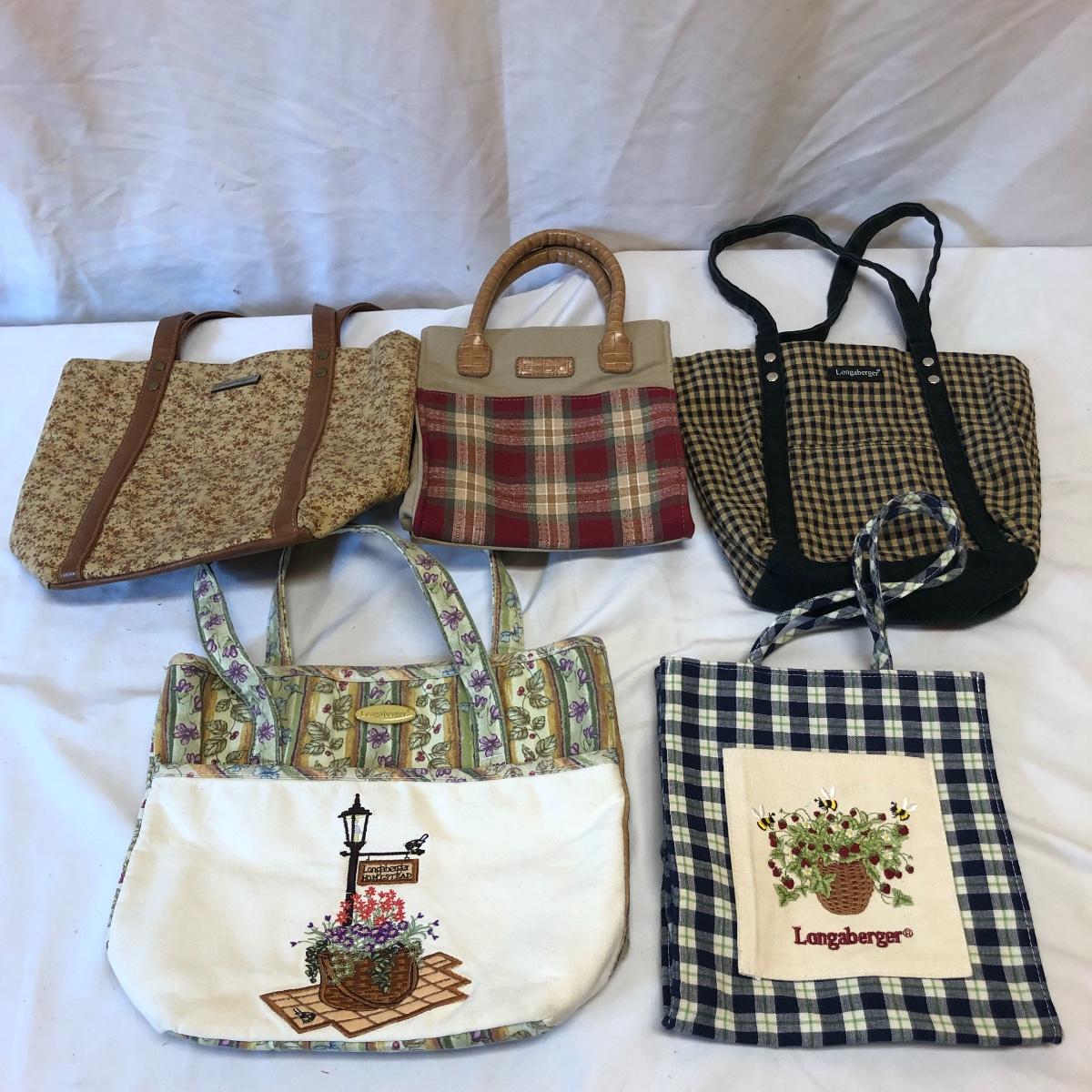 This lot is another Longaberger collection for you, yet this time it is all about accessories. (The other lots are baskets and are in lots 159, 169 & 189). Each of our four lots are different and this lot contains purses, a desktop organizer, ceramic plant pot, playing cards, wallet two small decor pieces and a tall slim metal/wood table (this was added later to the lot). Table measures 16” x 24.5”. They are all of course Longaberger with each purse having a badge and all other pieces showing the legendary name!