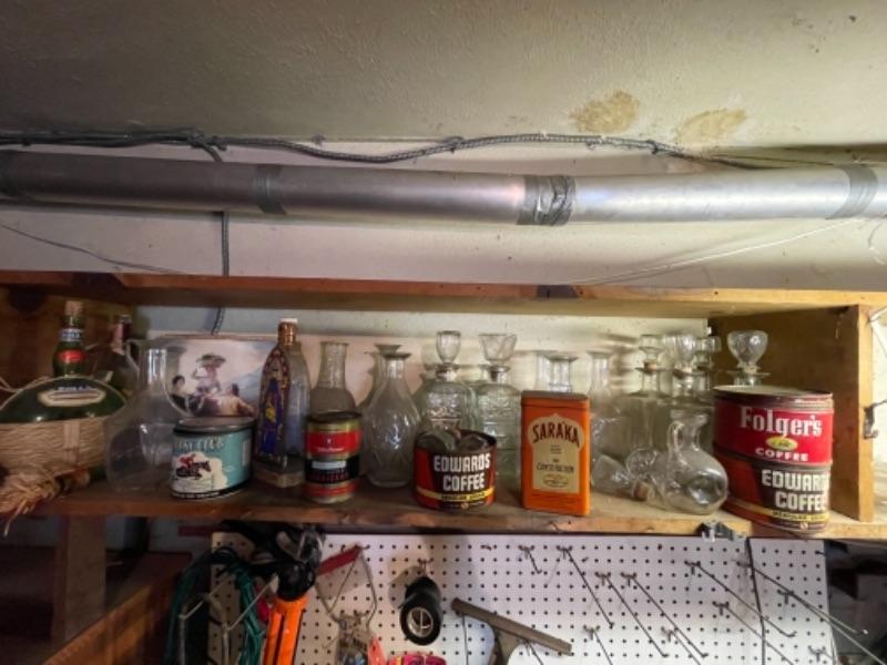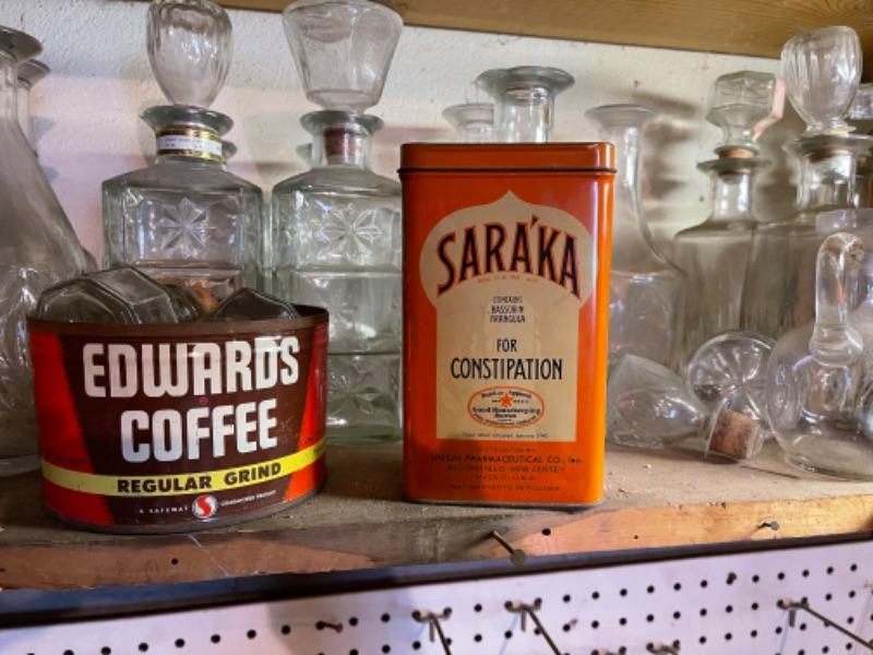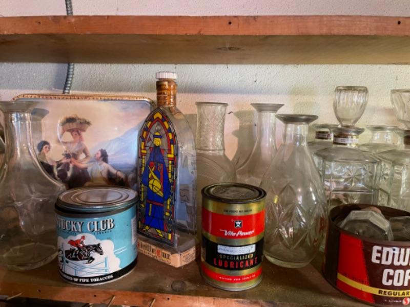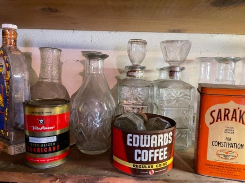 Lot 165. Lot of vintage tins and decorative bottles--Was $75 - - Now $35