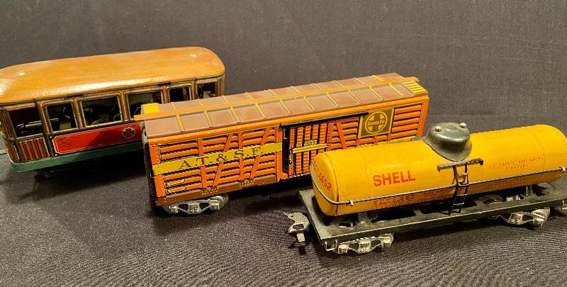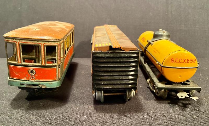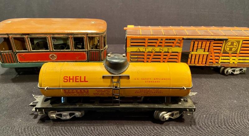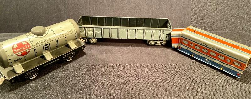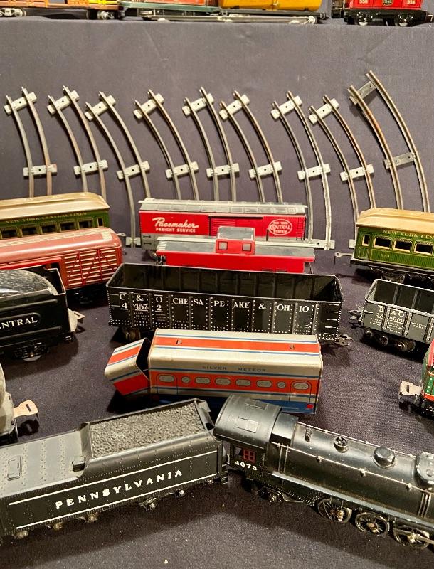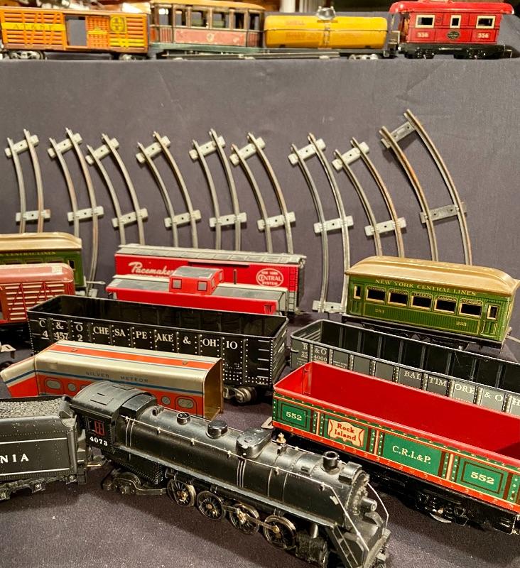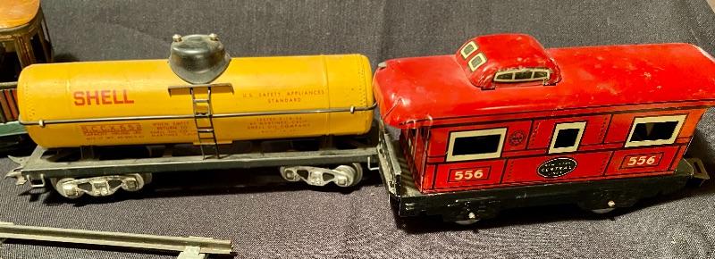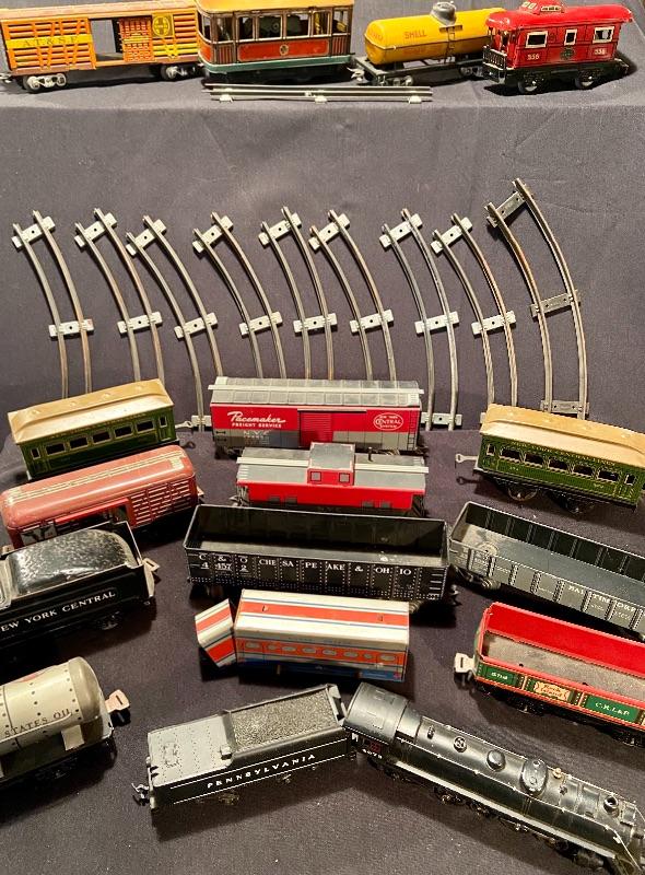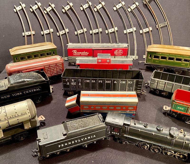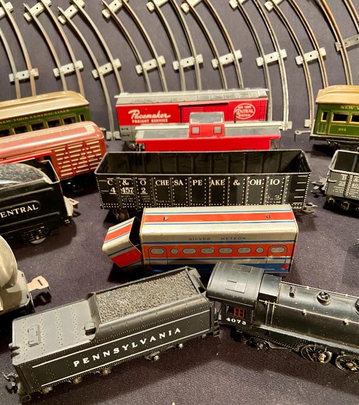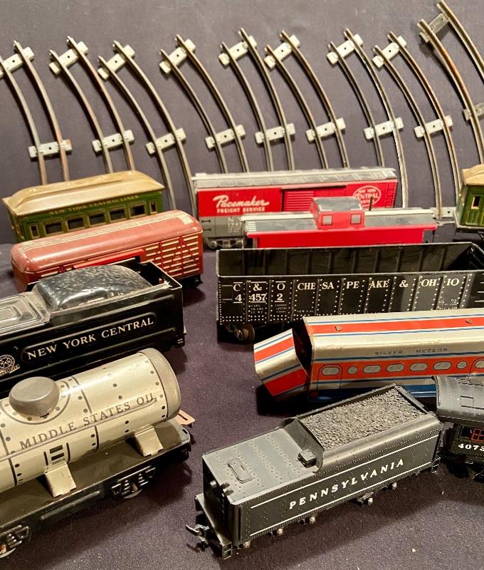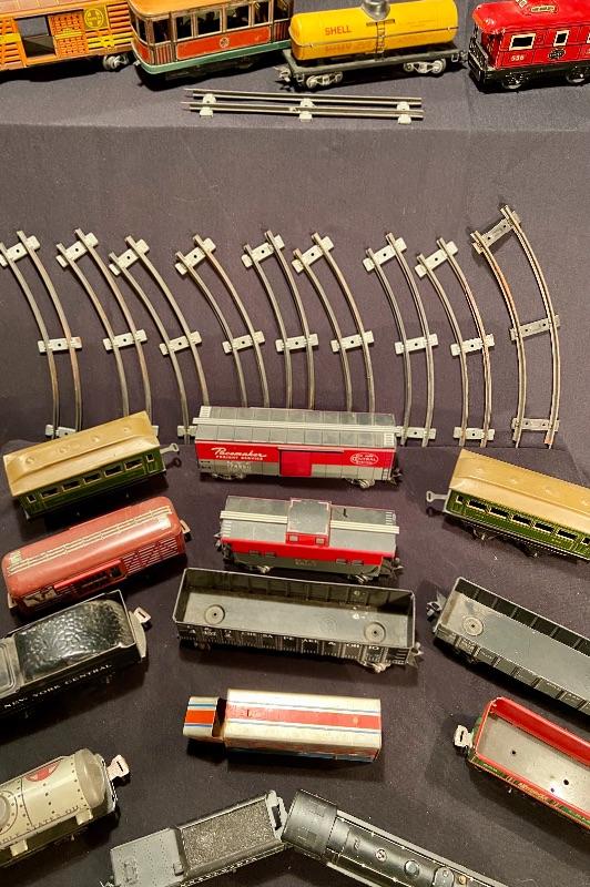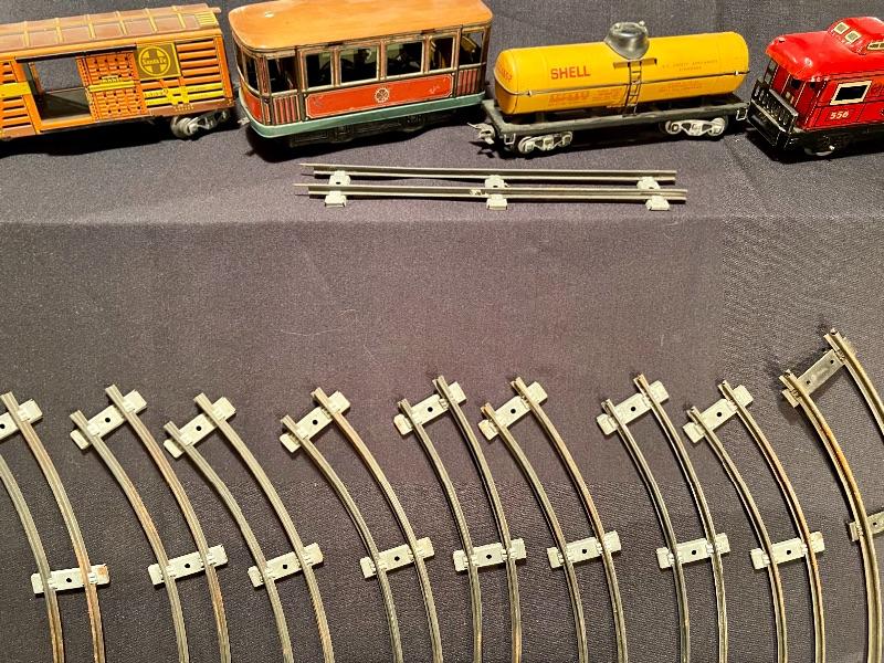 Vintage metal Mar-lines, Marx trains, and more in different colors and plastic Virginia Mitchell tracks. MHW Please see all pictures for content of the lot, condition of the lot, and measurements if taken. Pictures are the best representation of the items listed and items are untested unless indicated in description. Thank you for looking and have fun bidding!