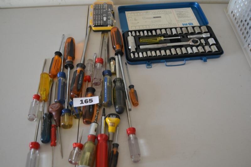 LOT 165. MISC SCREWDRIVERS, SOCKET SET