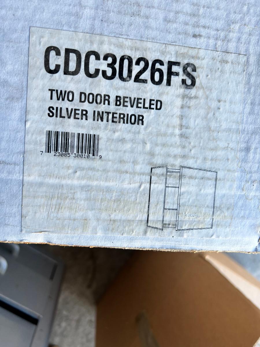 Lot 165 Two Flat Beveled Mirrored Doors. 30"W x 26"H x 3-7/8"D CDC3026FS. Lights Sold Separately. Rough-in size: 29-1/4"W x 25-1/4"H; Recess or surface mount ...