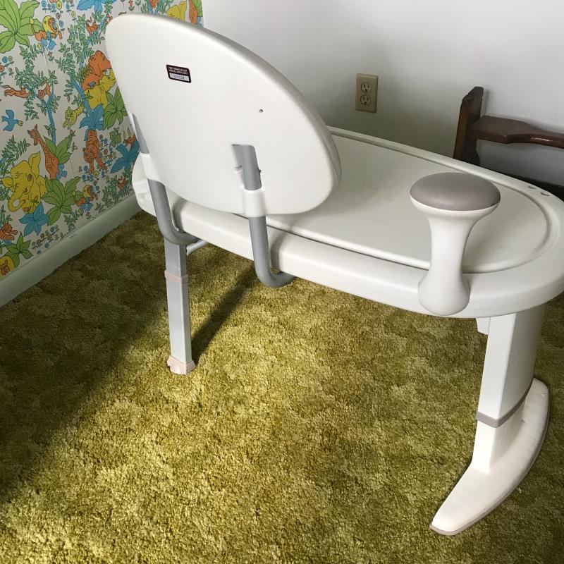 Plastic adjustable chair by Moen measures 33” x22”. Lot is available for local pick up in Asheville, NC only