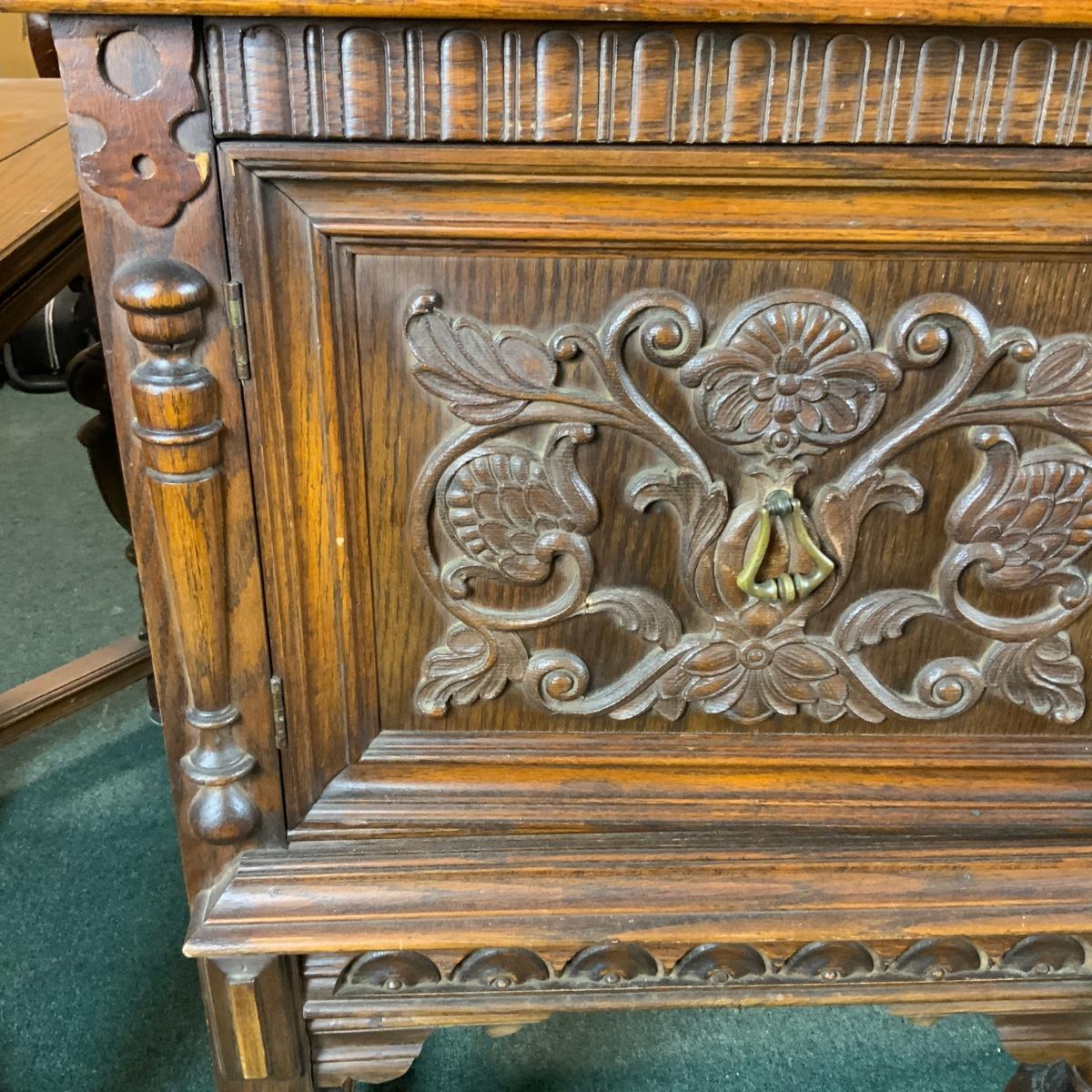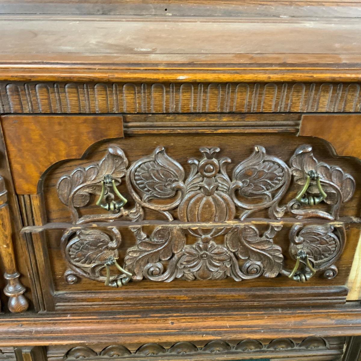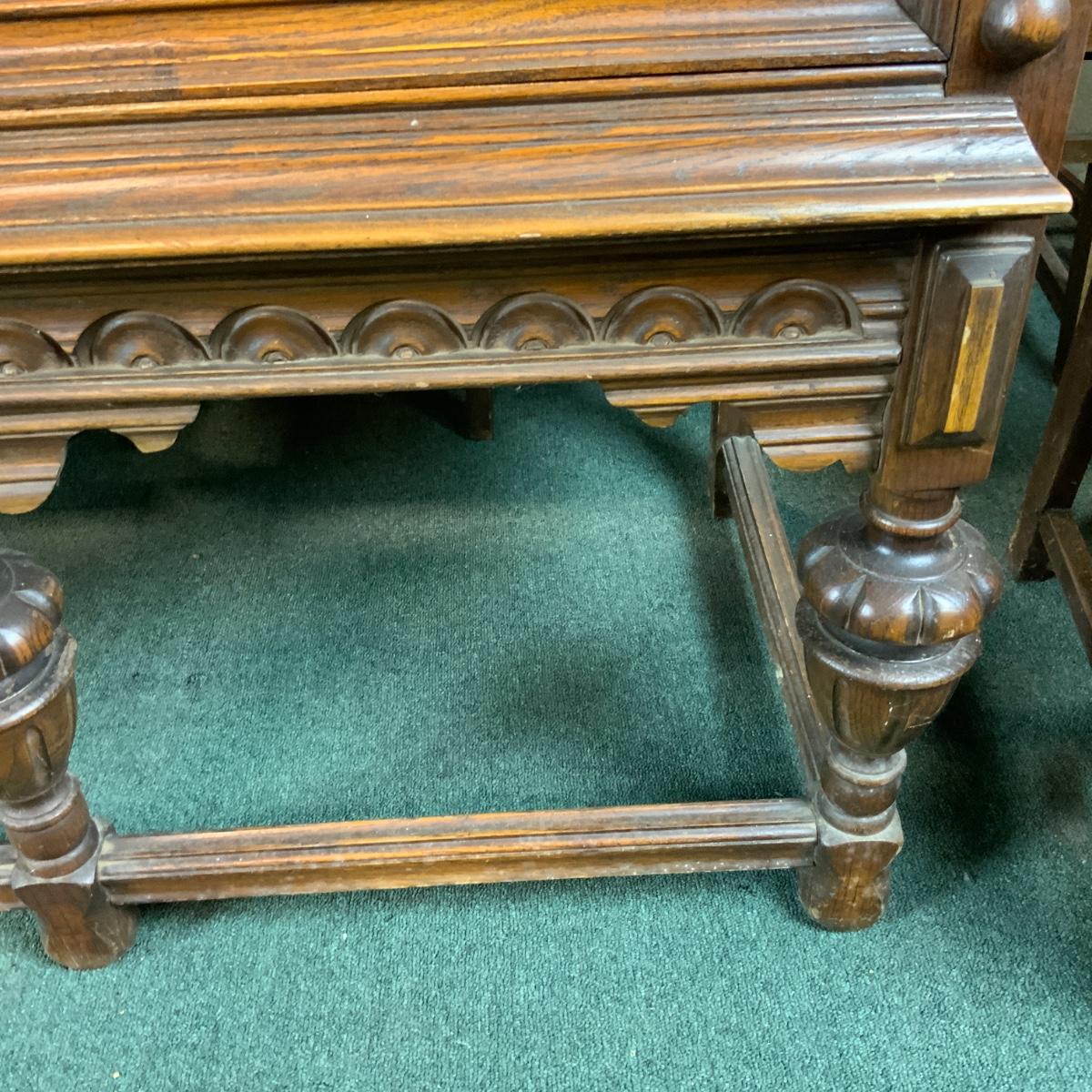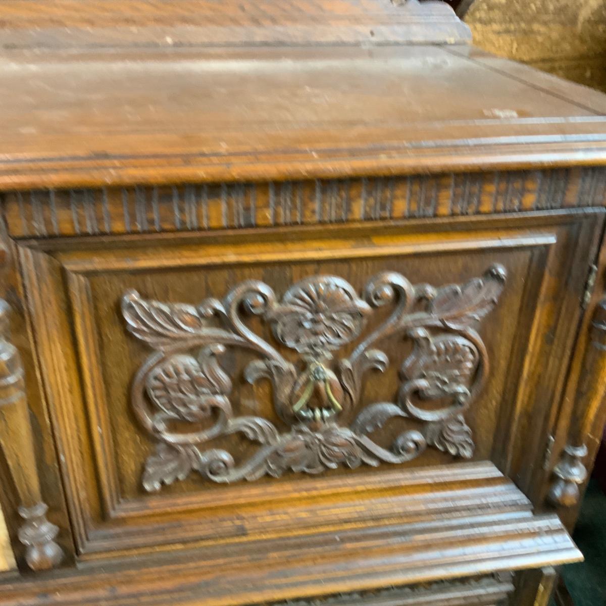 Magnificent Tudor Buffet or Sideboard. Needs some cosmetic work done. //::\\ Please see photos for details and condition. No attempt has been made to hide any imperfections. All items listed in this auction are warehouse items, and need to be cleaned. A majority of the items need restoration as well. All items are sold AS IS and WITHOUT GUARANTEE. If you are uncertain about an item, DO NOT BID. Due to the nature of this online auction in-person inspection is HIGHLY recommended. All Sales are FINAL. Pick Up Times are FIRM. Please confirm with your own schedule that you can pick up in the scheduled times listed in the Terms and Conditions. Any questions please message the auctioneer. DO NOT Contact The Harp Gallery.