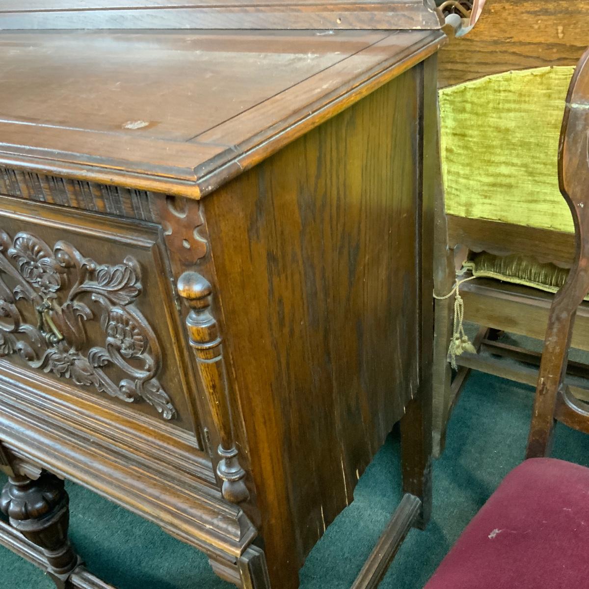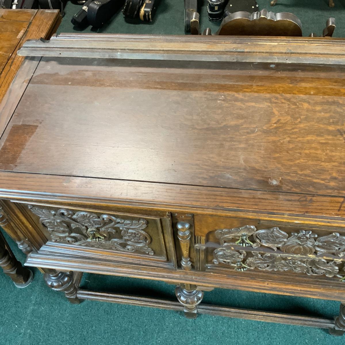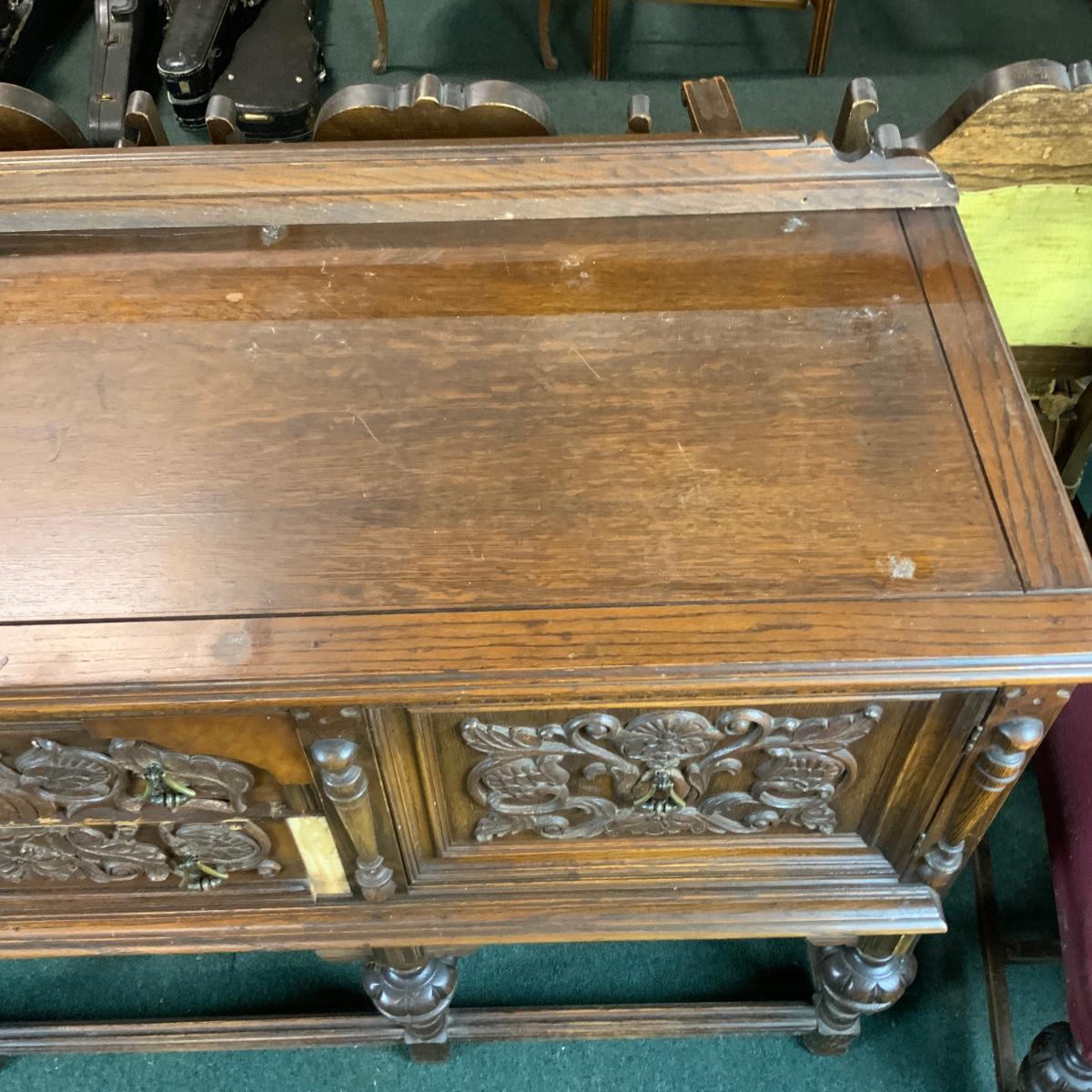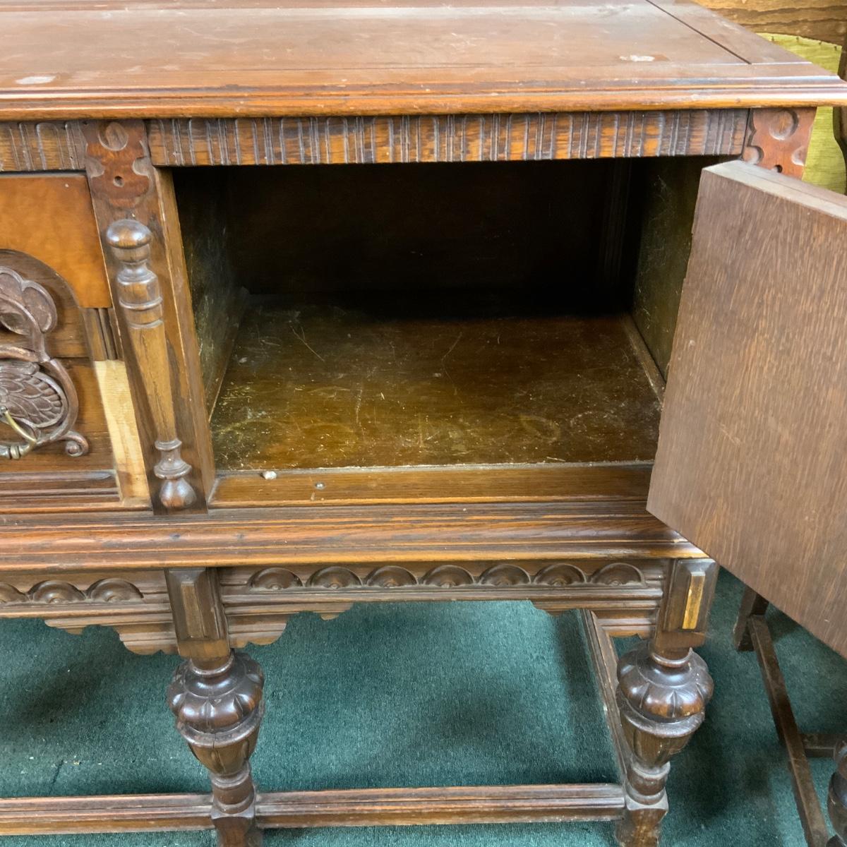 Magnificent Tudor Buffet or Sideboard. Needs some cosmetic work done. //::\\ Please see photos for details and condition. No attempt has been made to hide any imperfections. All items listed in this auction are warehouse items, and need to be cleaned. A majority of the items need restoration as well. All items are sold AS IS and WITHOUT GUARANTEE. If you are uncertain about an item, DO NOT BID. Due to the nature of this online auction in-person inspection is HIGHLY recommended. All Sales are FINAL. Pick Up Times are FIRM. Please confirm with your own schedule that you can pick up in the scheduled times listed in the Terms and Conditions. Any questions please message the auctioneer. DO NOT Contact The Harp Gallery.