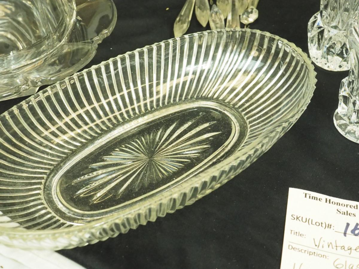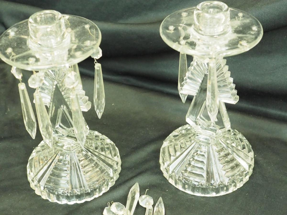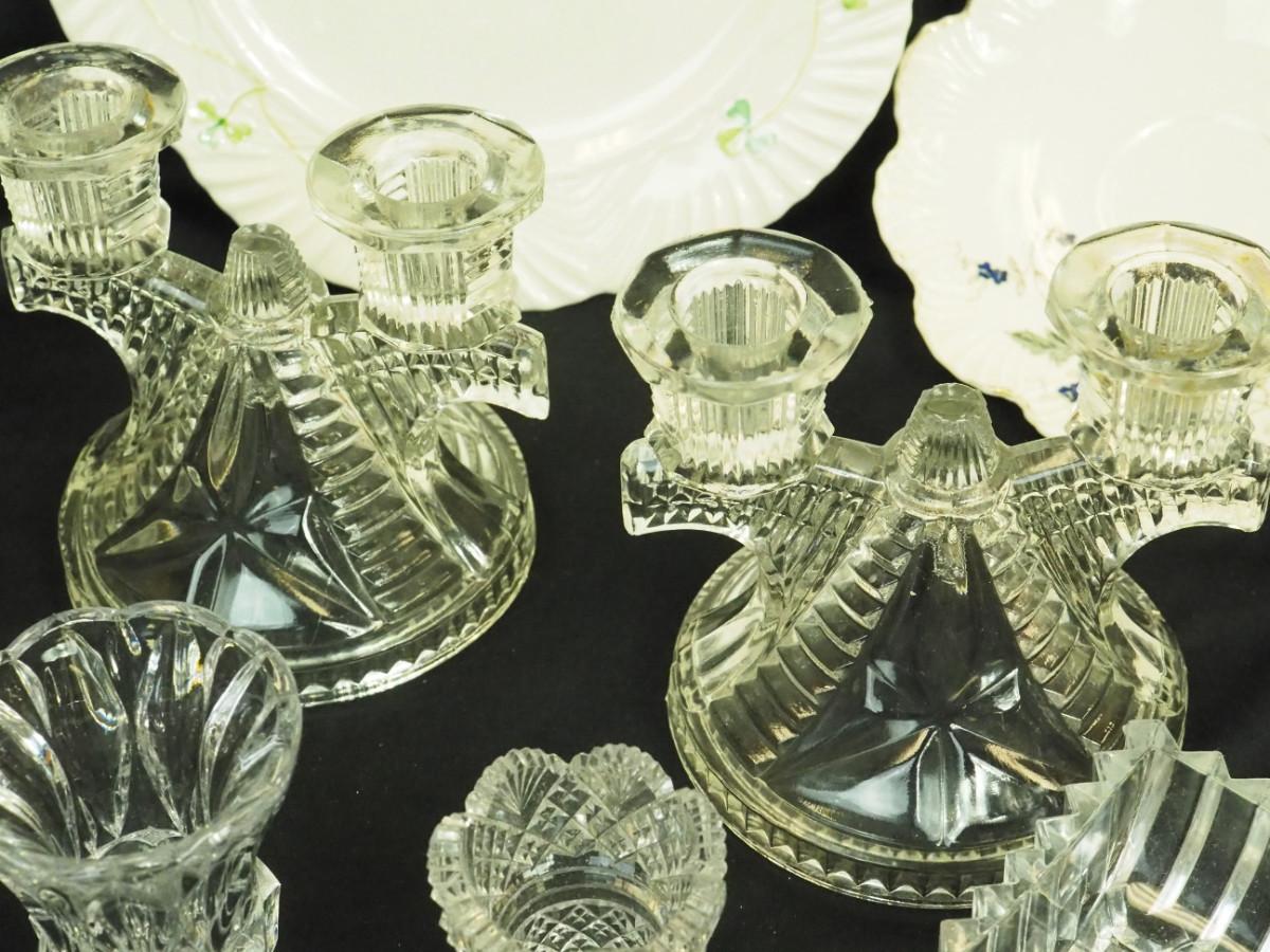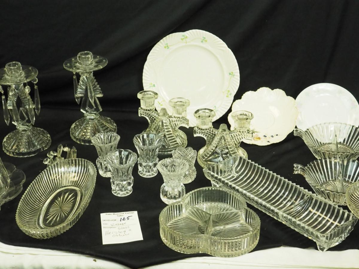 Lot 165- Vintage and Antique glassware. Crystal candle holders, Heisey glass set , Crystal toothpick holders,