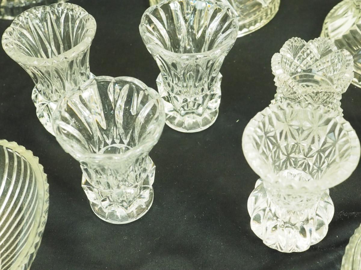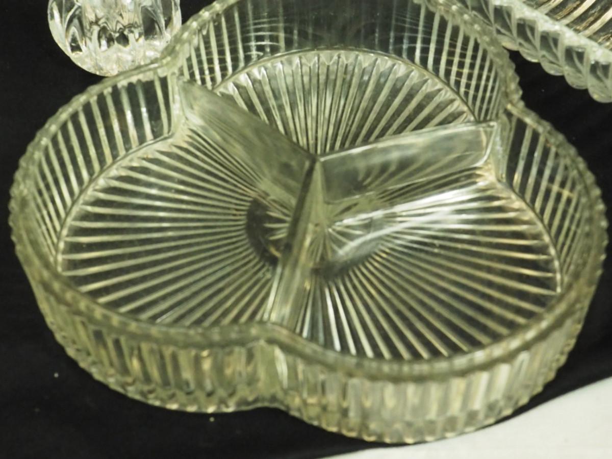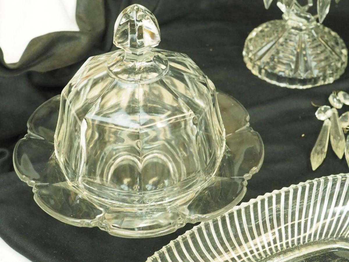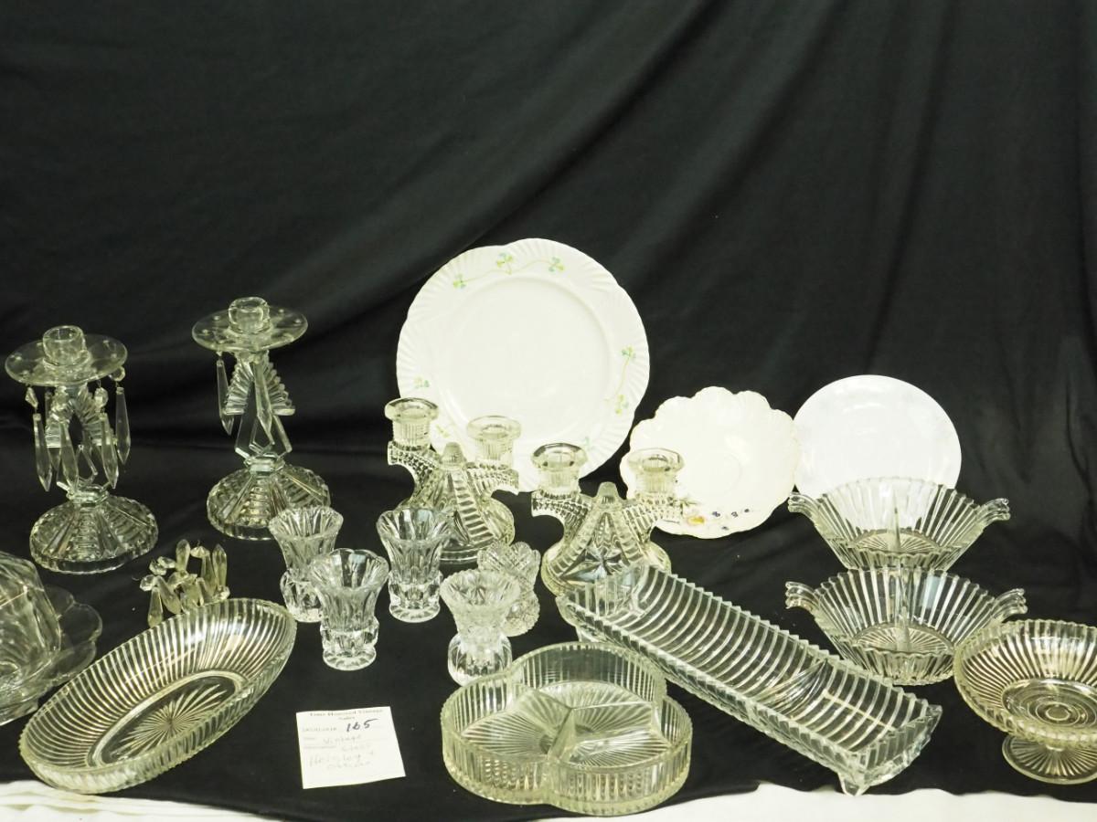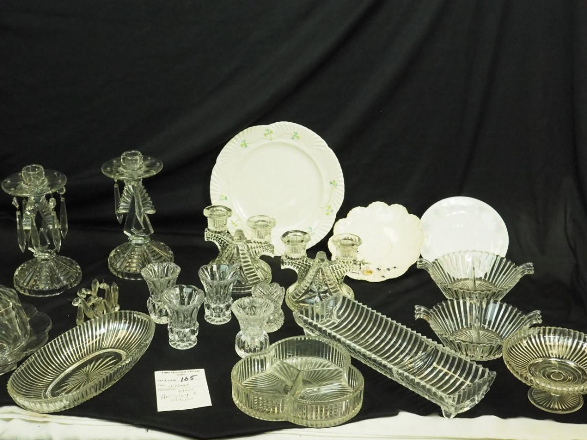 Lot 165- Vintage and Antique glassware. Crystal candle holders, Heisey glass set , Crystal toothpick holders,