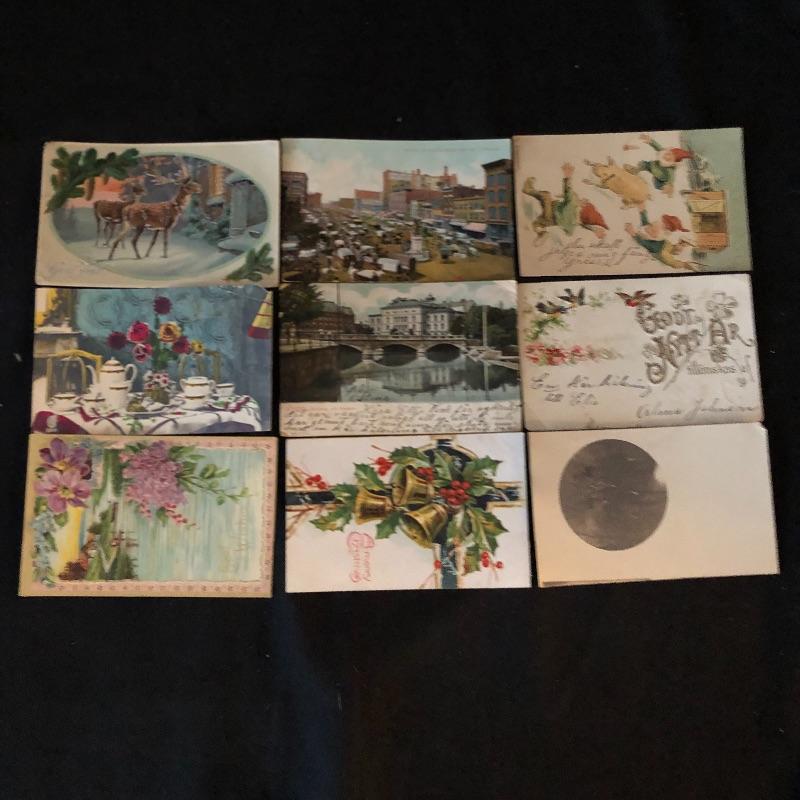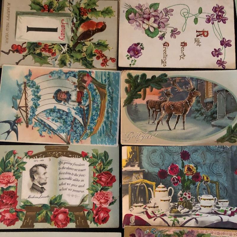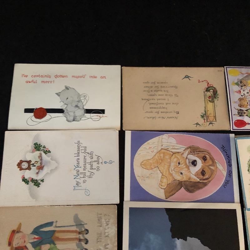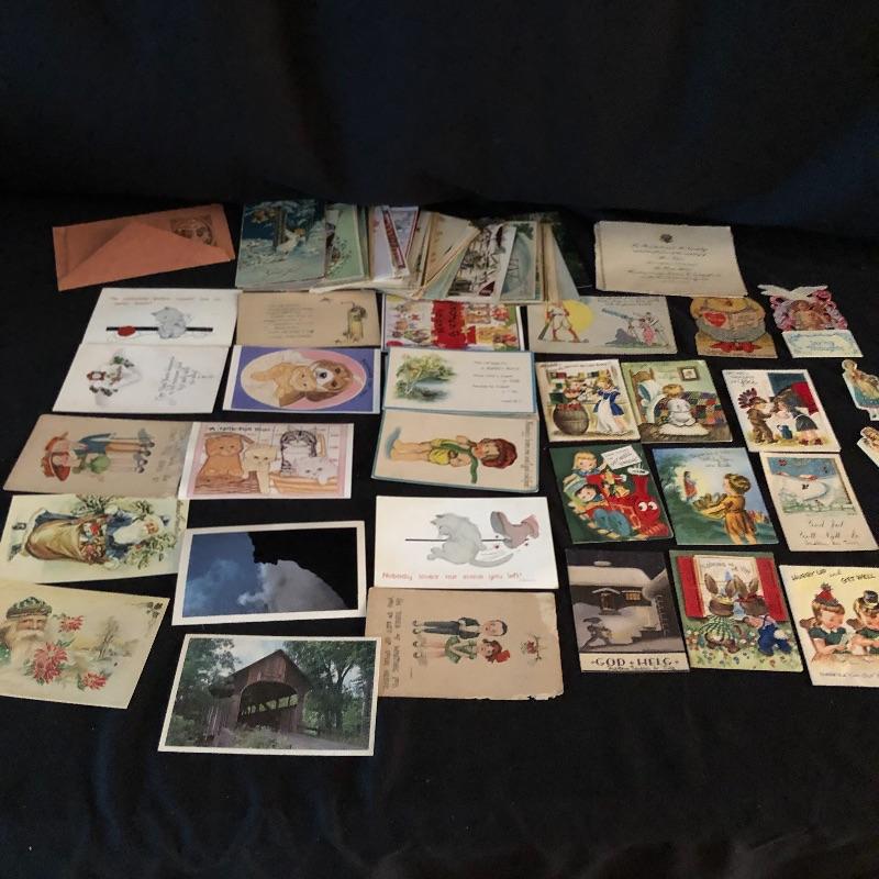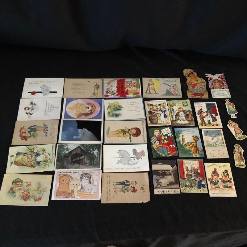 Go back in time with this collection of vintage pictures postcards. Lot includes a variety of postcards for many occasions, a White House invitation from President Coolidge and some small cards. Some cards are used.