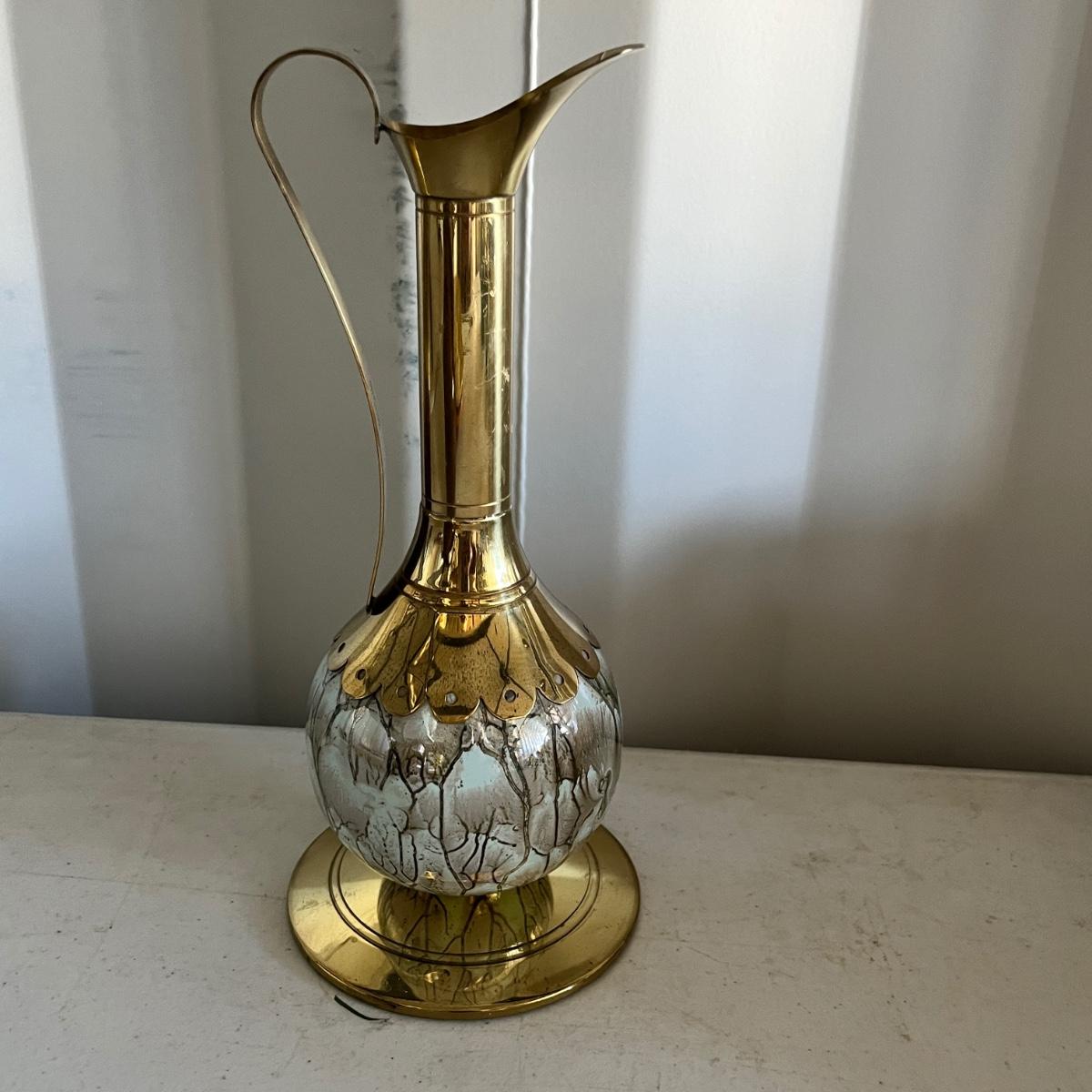 Lot 166 Italian Brass & China Ewer