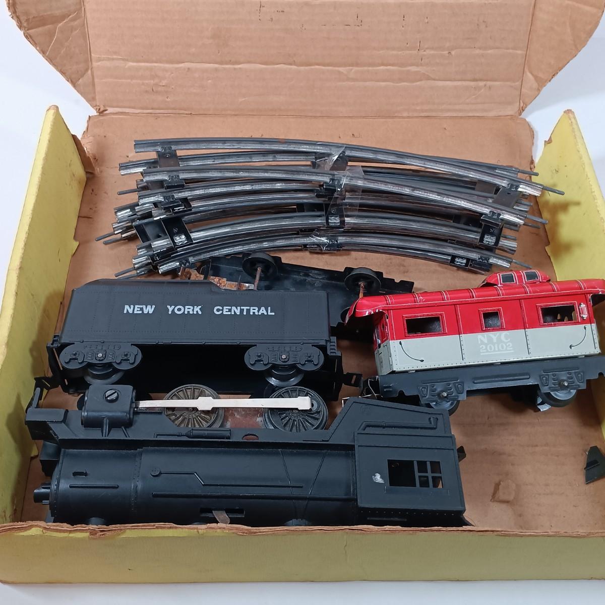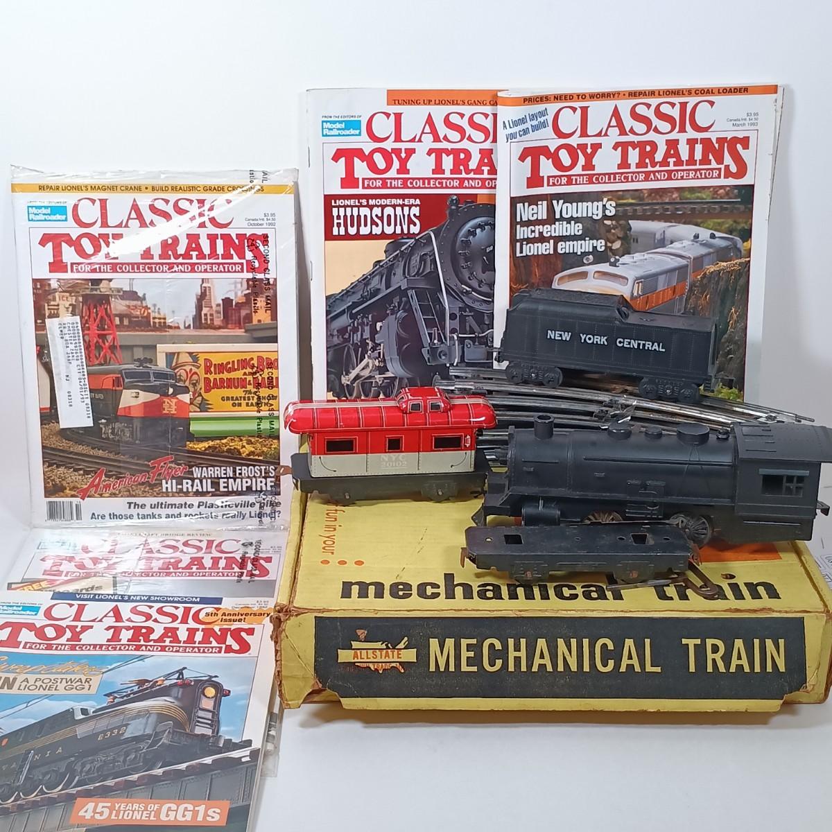 LOT 166: Vintage Marx Coal Tender and NYC Caboose with Other Metal O Gauge Train Cars, Metal Track & Train Magazines