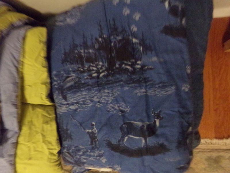 BLANKET WITH OUTDOOR THEME IS IN GOOD CONDITION.