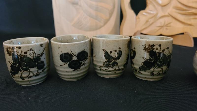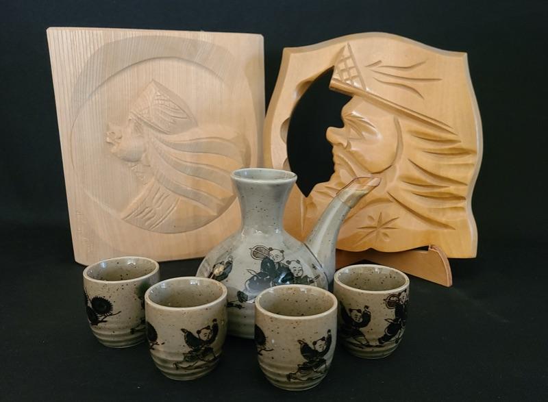 Lot 166: Vintage Ainu Carved Wood Panels and Toyo Tea Set